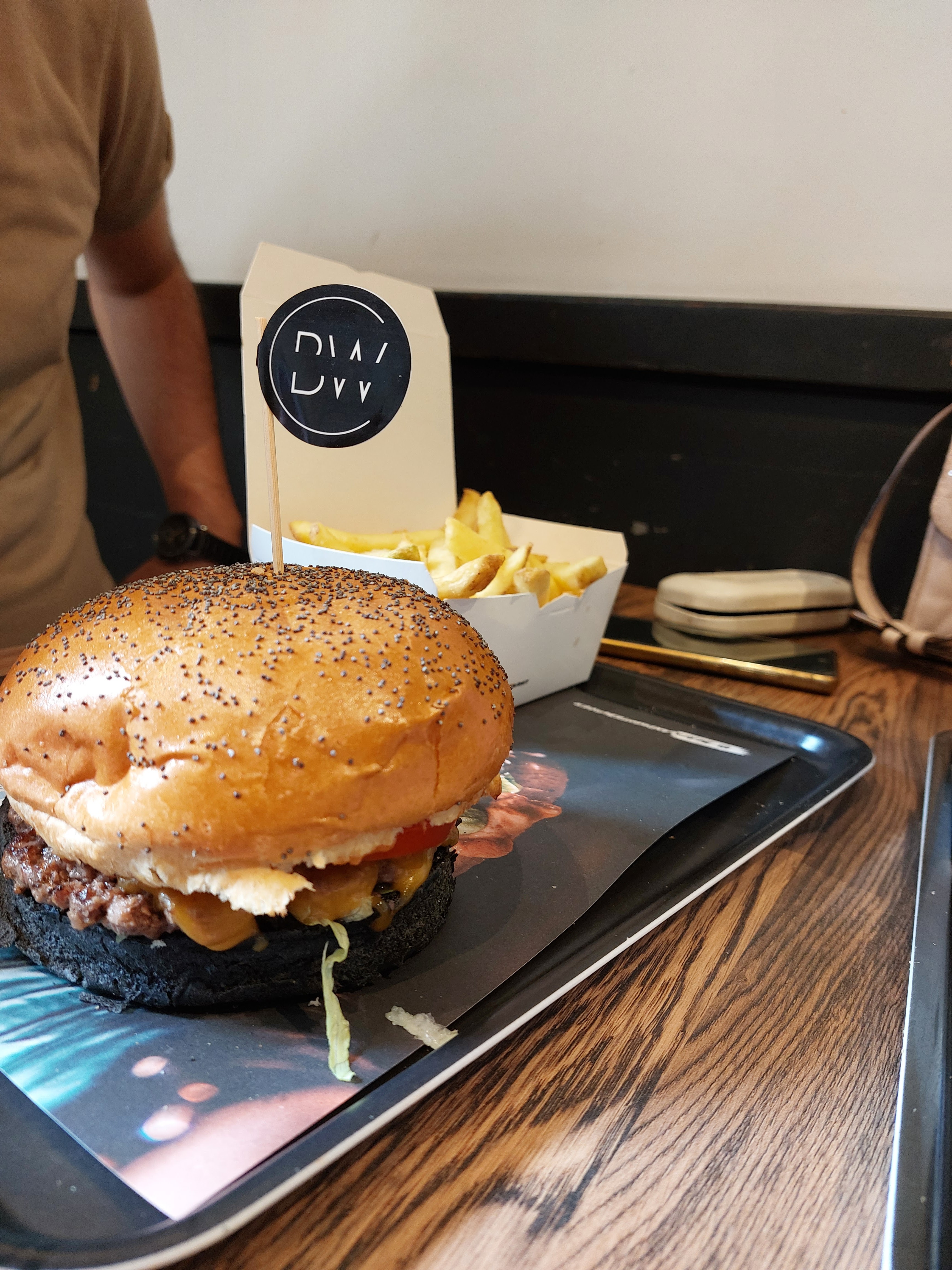 J'ai enfin mangé au B&W. Des burgers à base de charbon végétal.. pour changer du buger classique, la viande est cuite différemment ce qui donne un goût de feu de bois. J'ai pris le Menu Burger Classic. Ce que j'ai aimé sont la viande et la sauce épicée juste comme il faut . Plus des patates douces. Très bonnes . Les burgers sont généreux .. Rapport qualité prix convenable. Le seevie est rapide. Même si le restaurant est petit. Les clients circulent plutôt bien du coup les places sont libérées. A expérimenter !!!