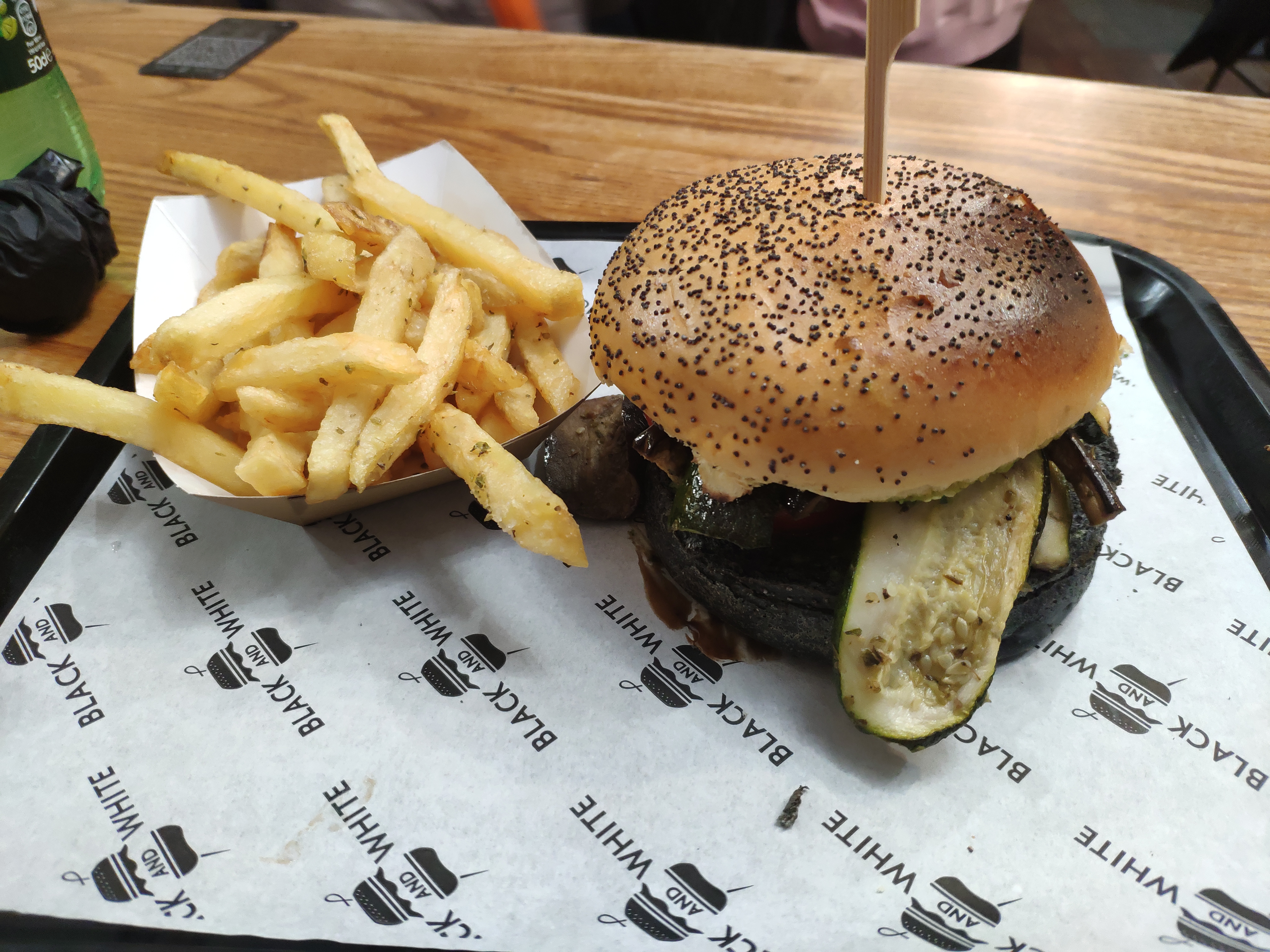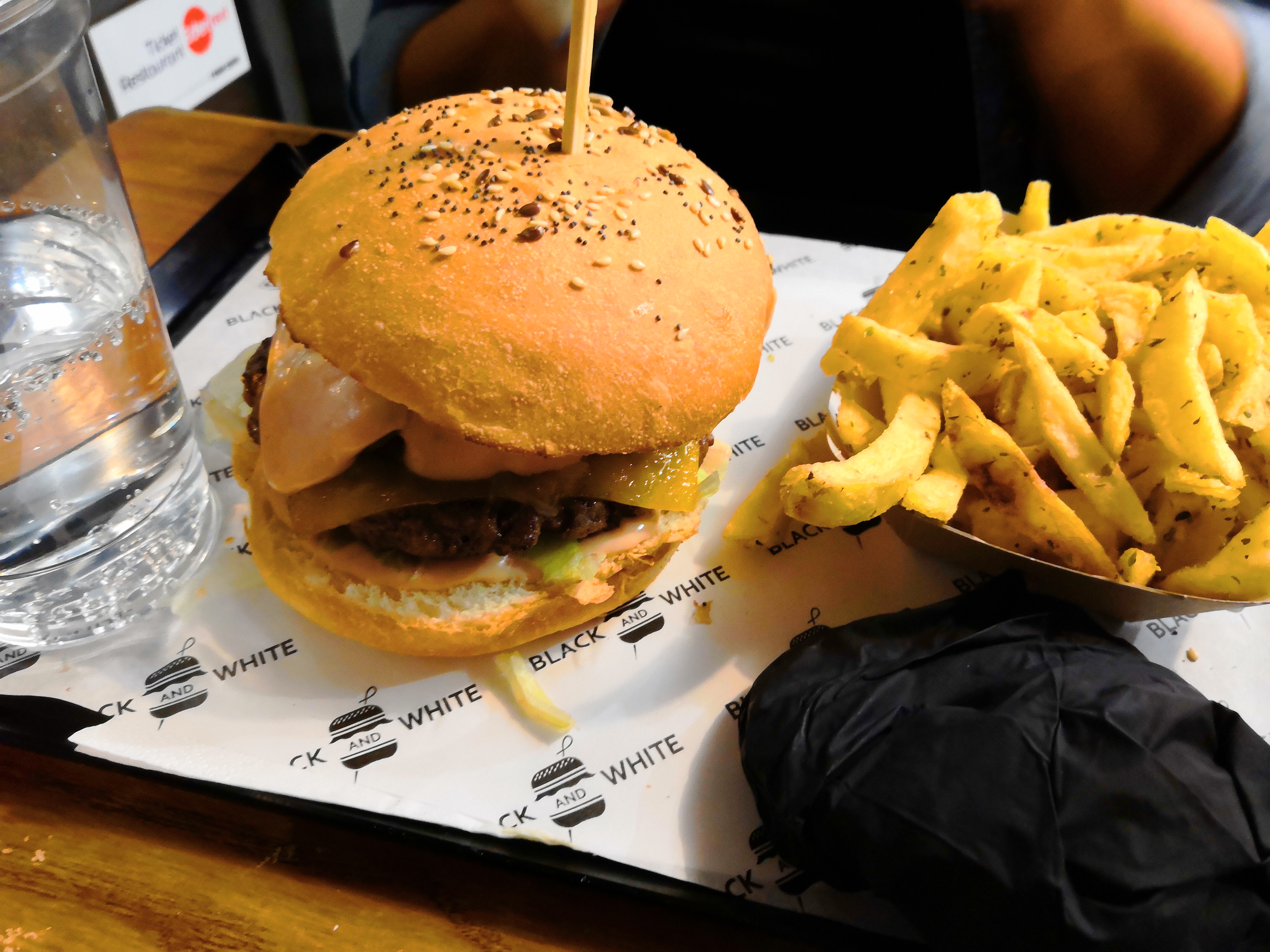 On peut manger de bons burgers dans une ambiance assez sympathique et pour un prix très raisonnable C est avec black and white qu'on a trouvé le bon plan 💚 Merci pour l'équipe .