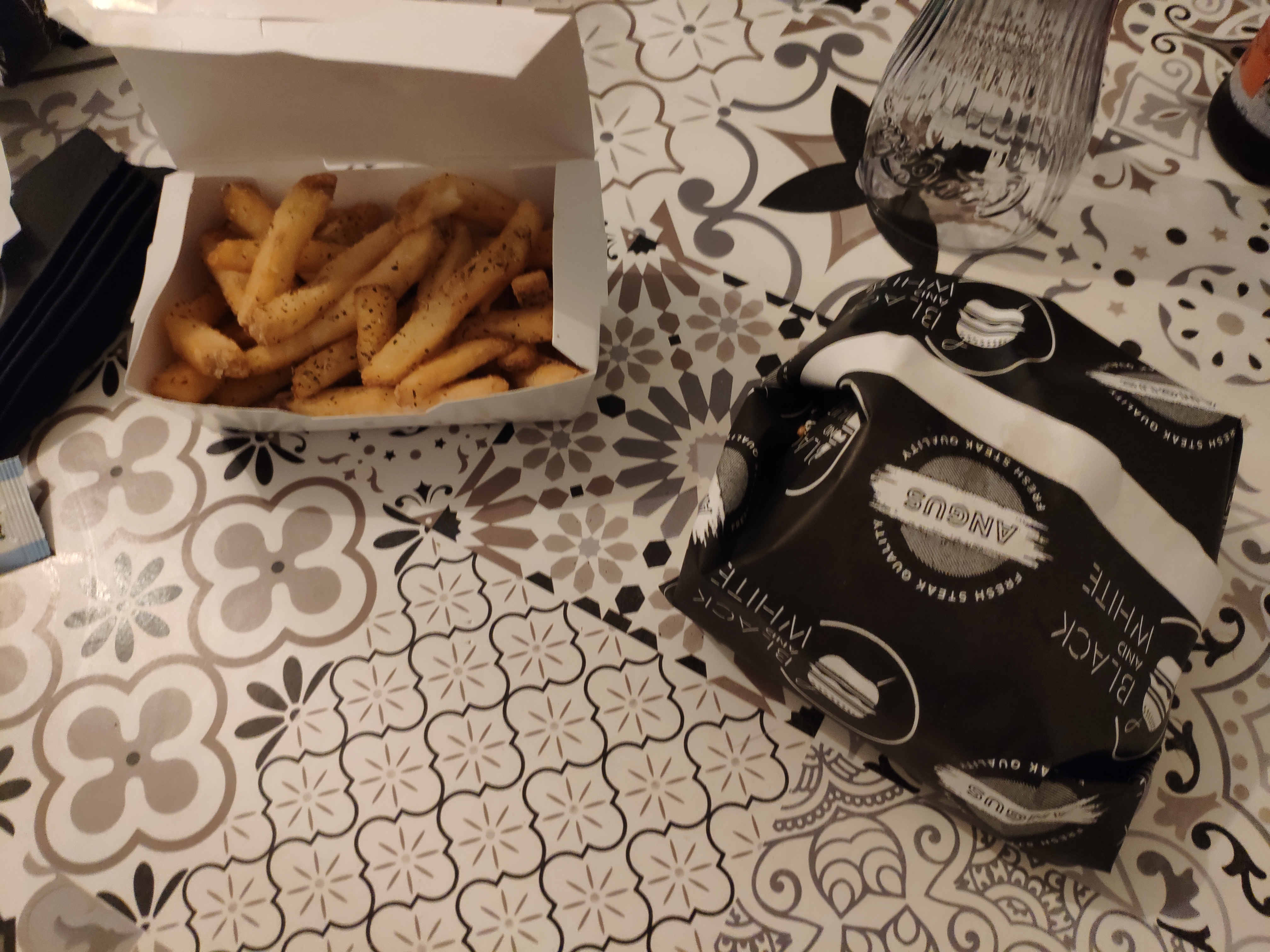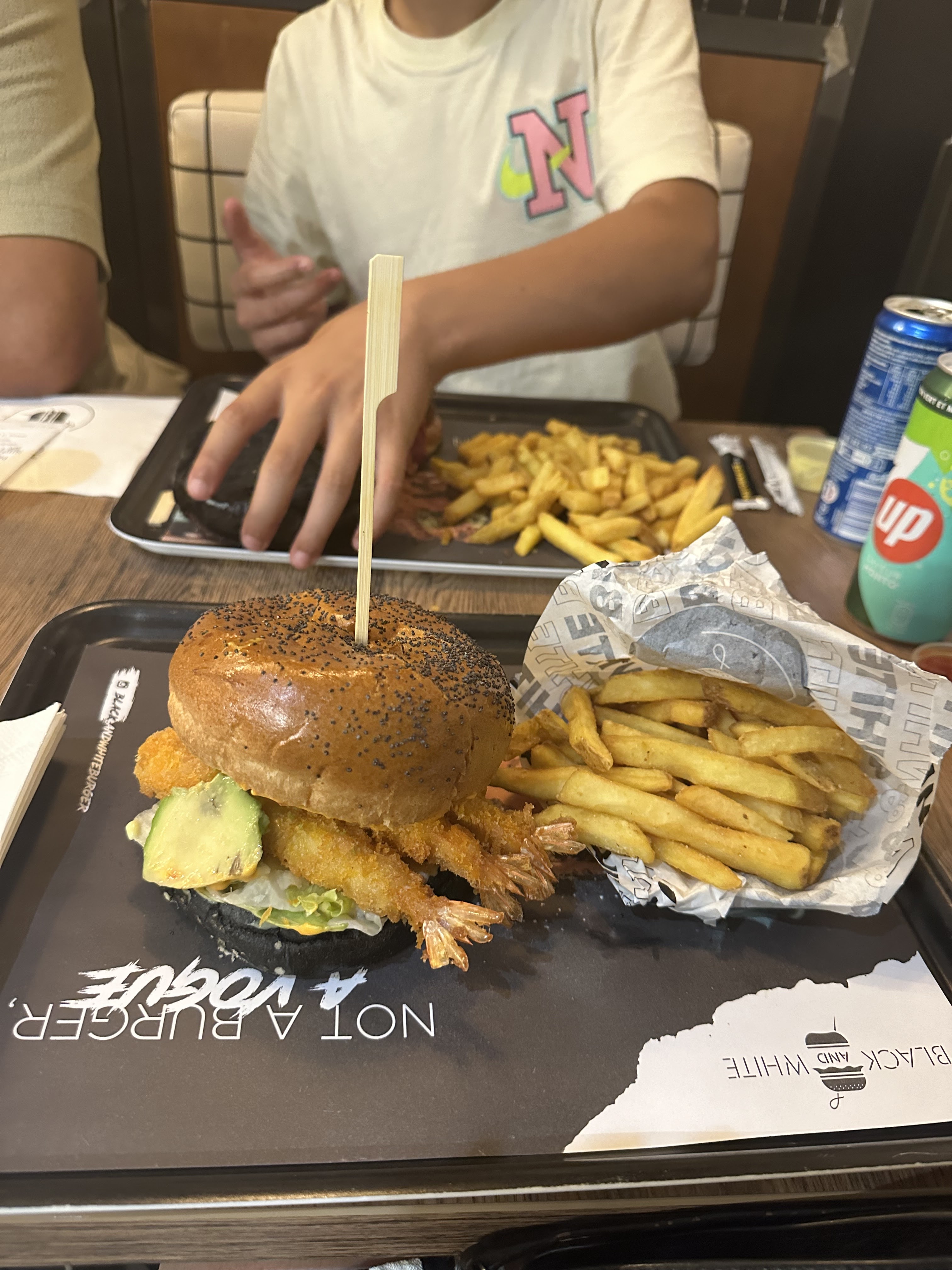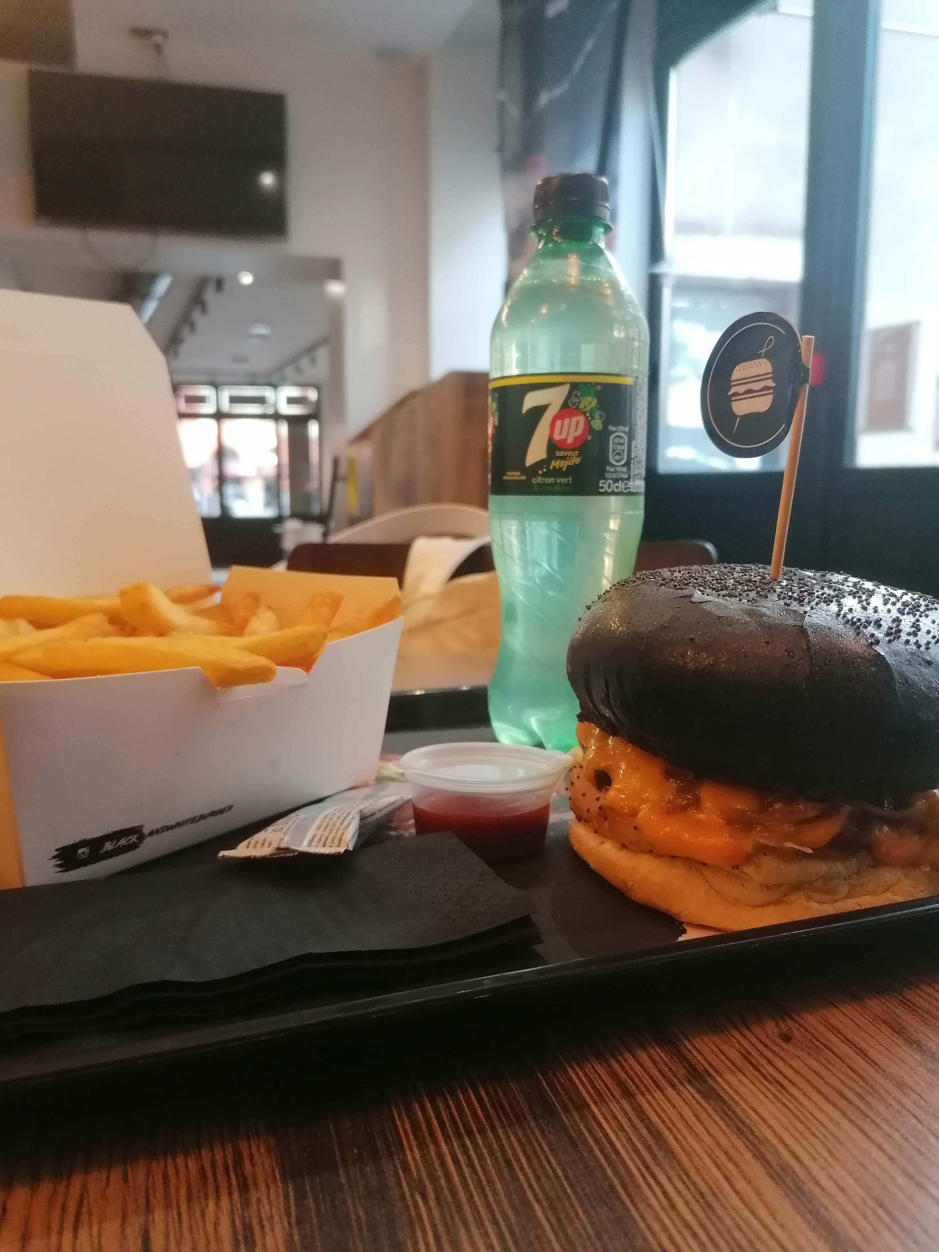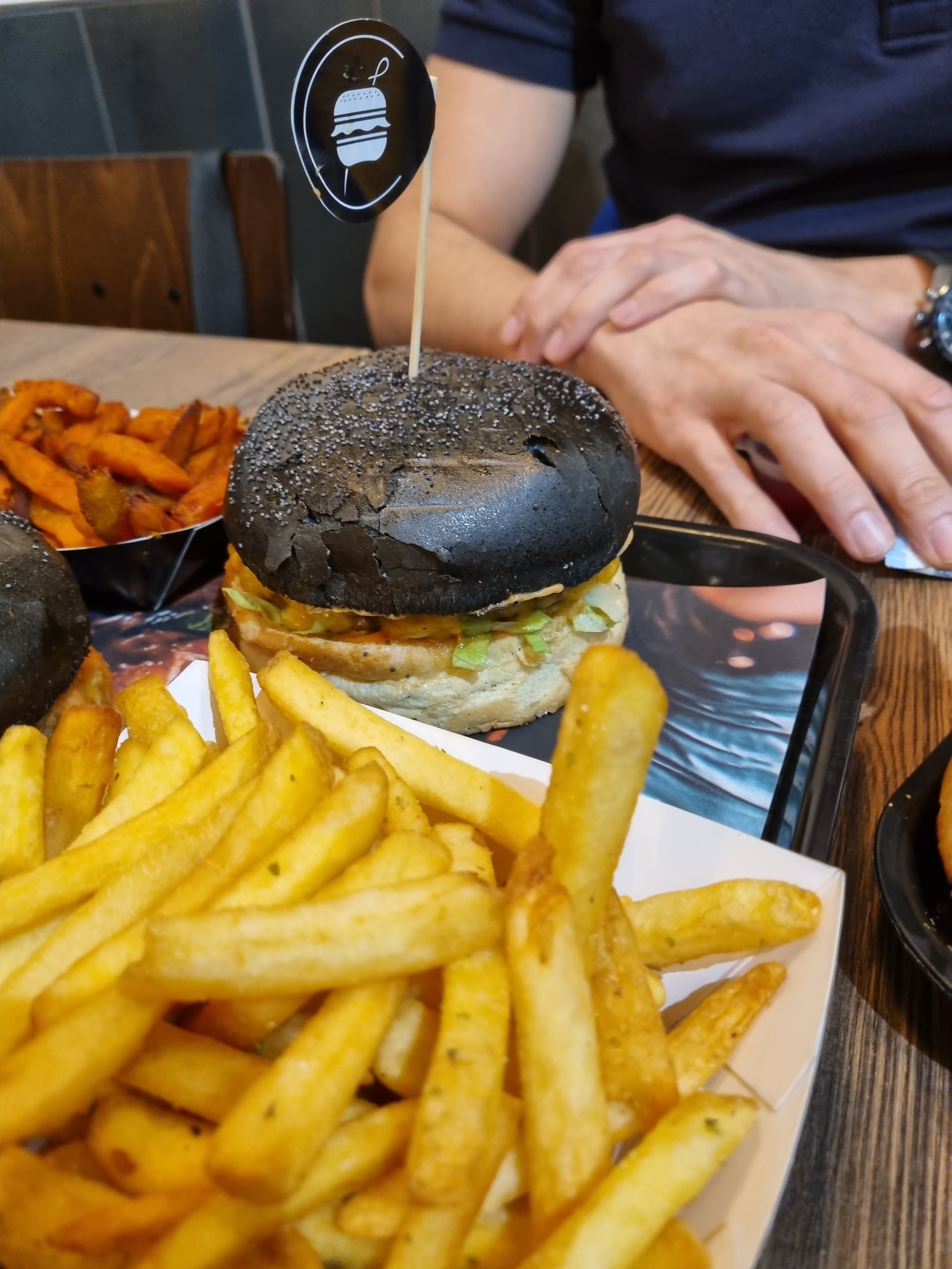 Agréablement surpris, je m'attendais juste à un jeu de couleur, noir et blanc, mais au final la qualité est là ! Excellent burger et très bonne frites de patates douces 👍