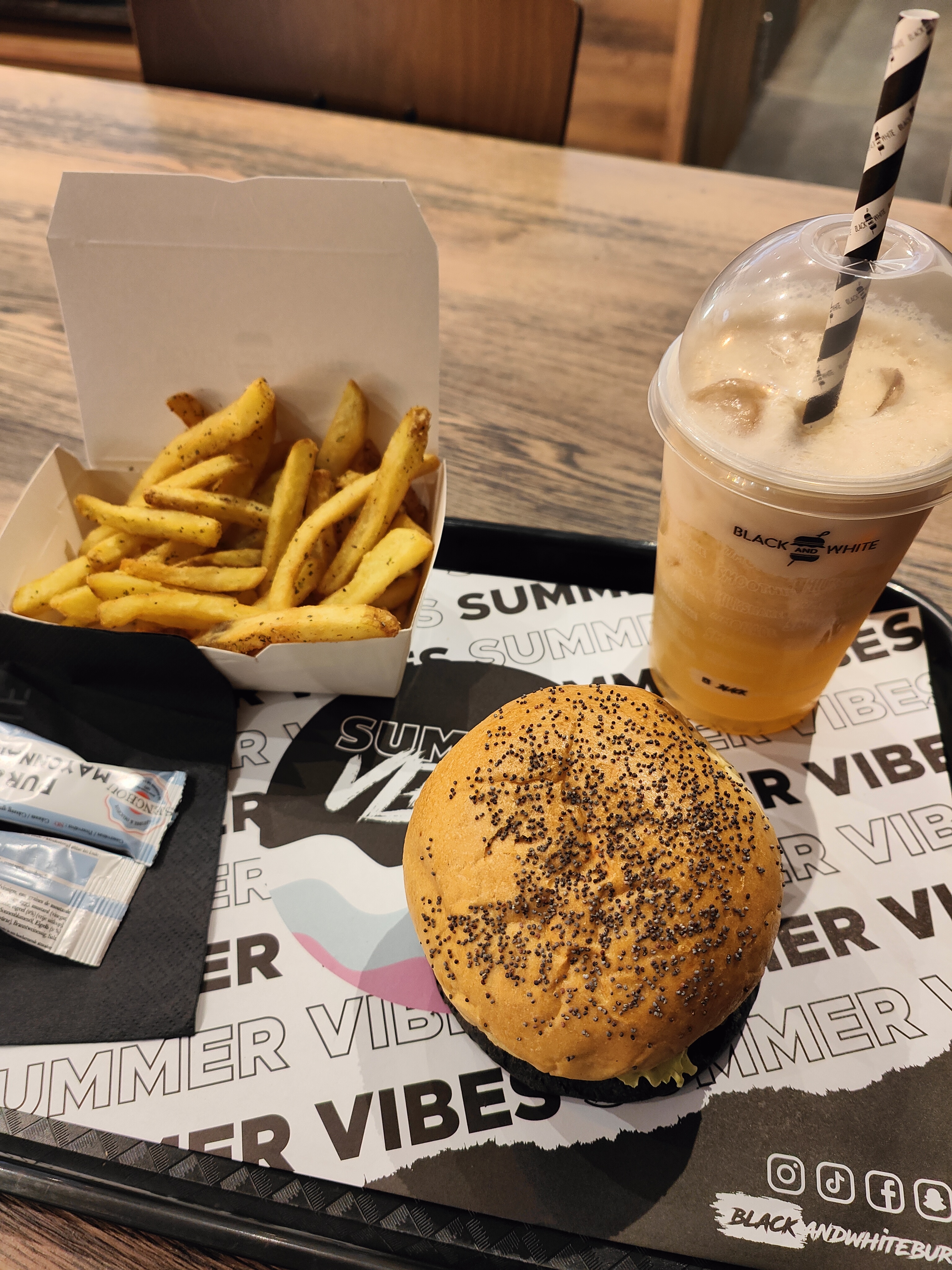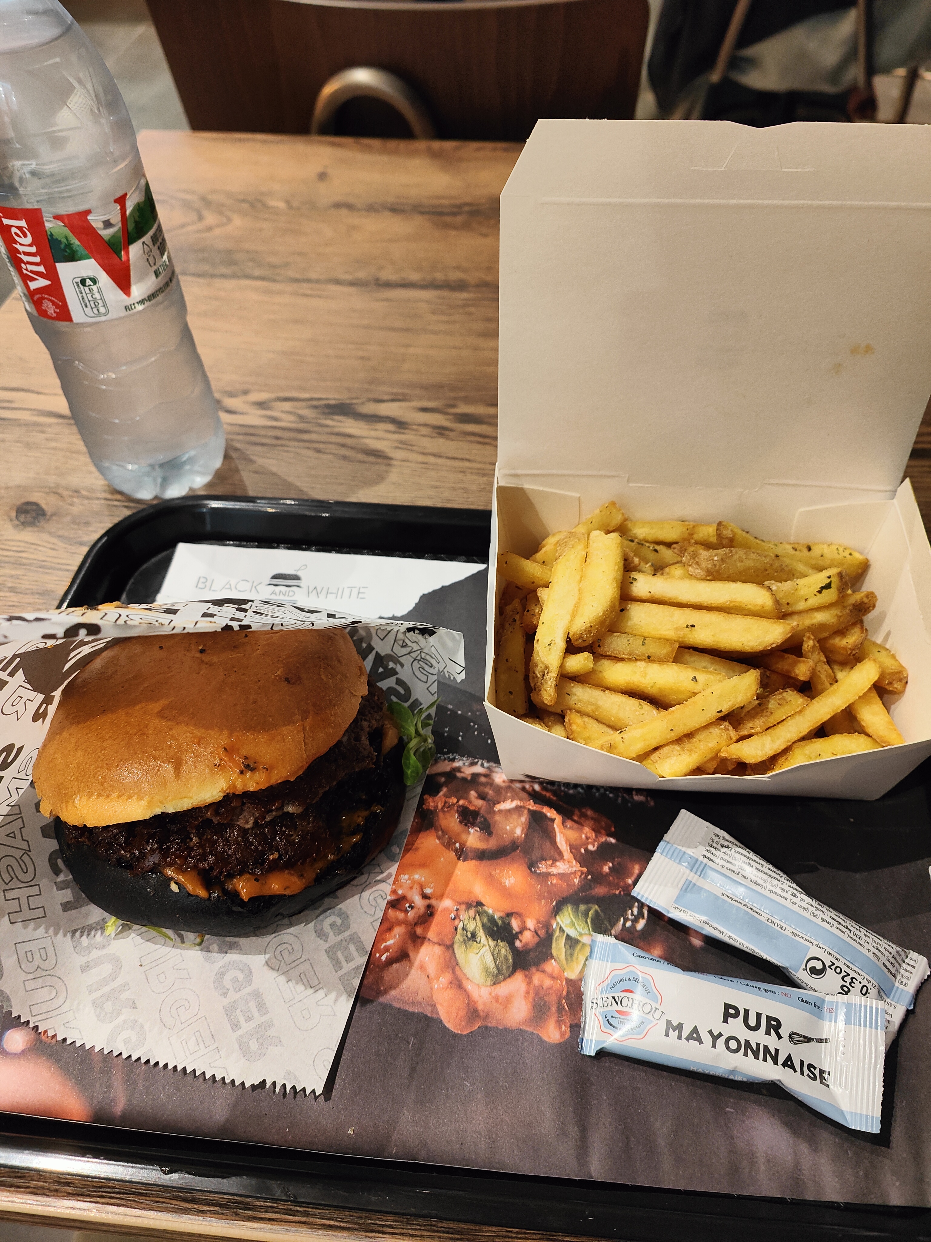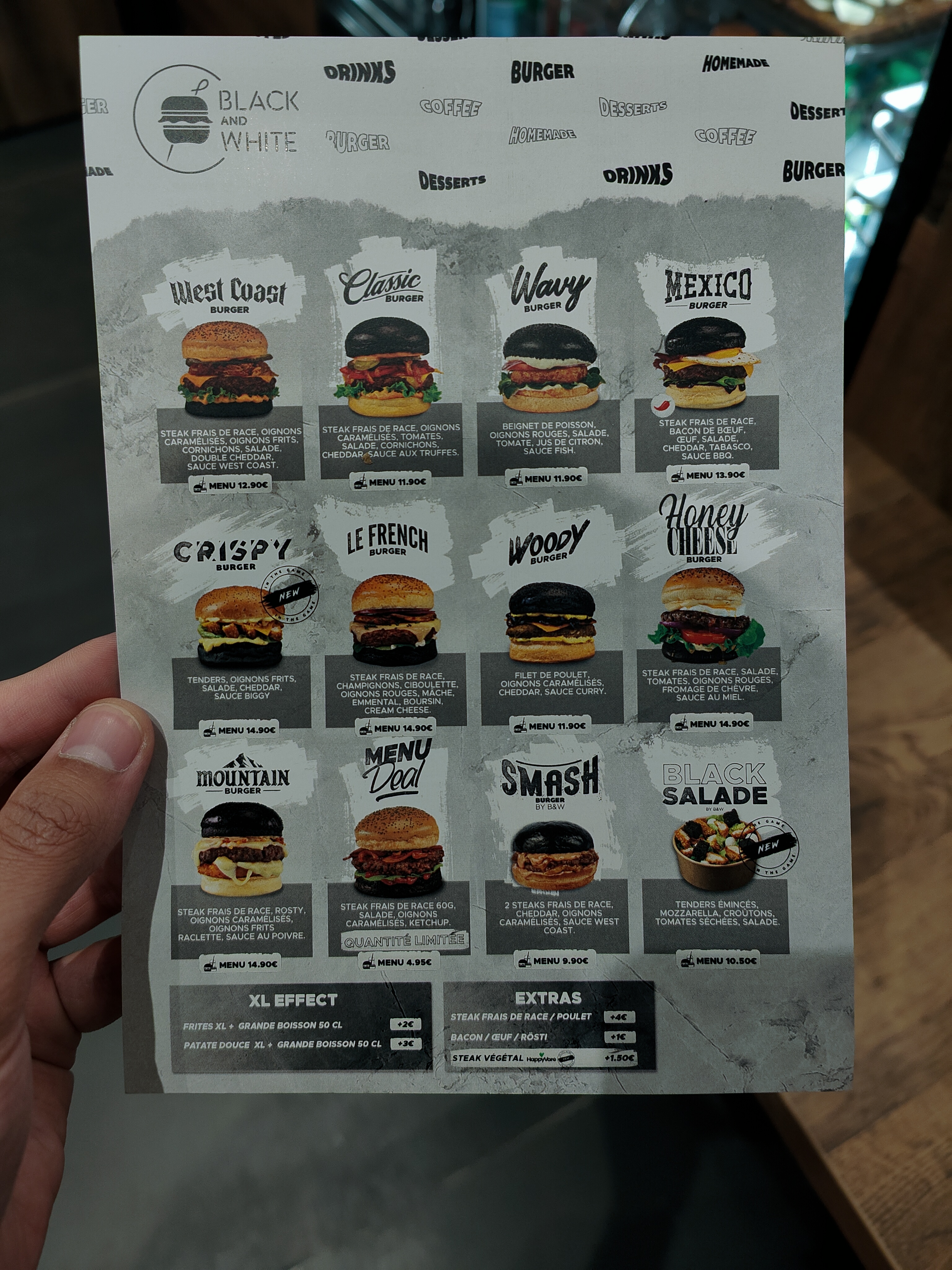 Très bonne surprise, nous allions vers un autre restaurant à côté, et avons voulu tester black and white burger. Le prix est très intéressant, les burgers très bons, et il y a du choix :)