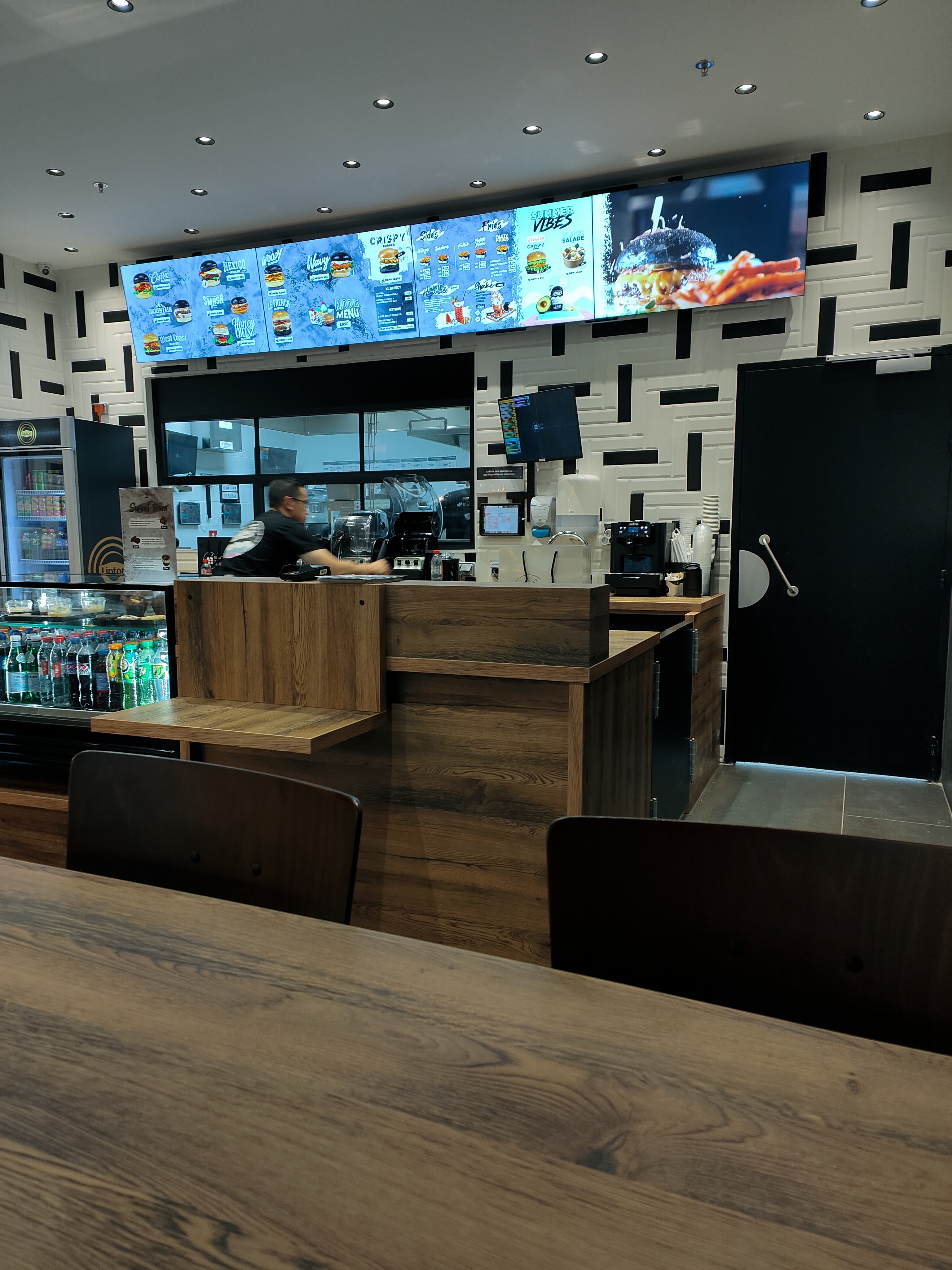 Excellent ! Très bon Burger, tout est frais et ça se sent, viande black angus, service aimable et rapide, pour un prix correct pour cette qualité, très bonnes frites, petit bémol sur le ketchup pas à mon goût ! Quelques places assises, bornes pour commander, lieu très propre. Merci encore de vous être installé dans ce coin qui manque d'offre de restauration!