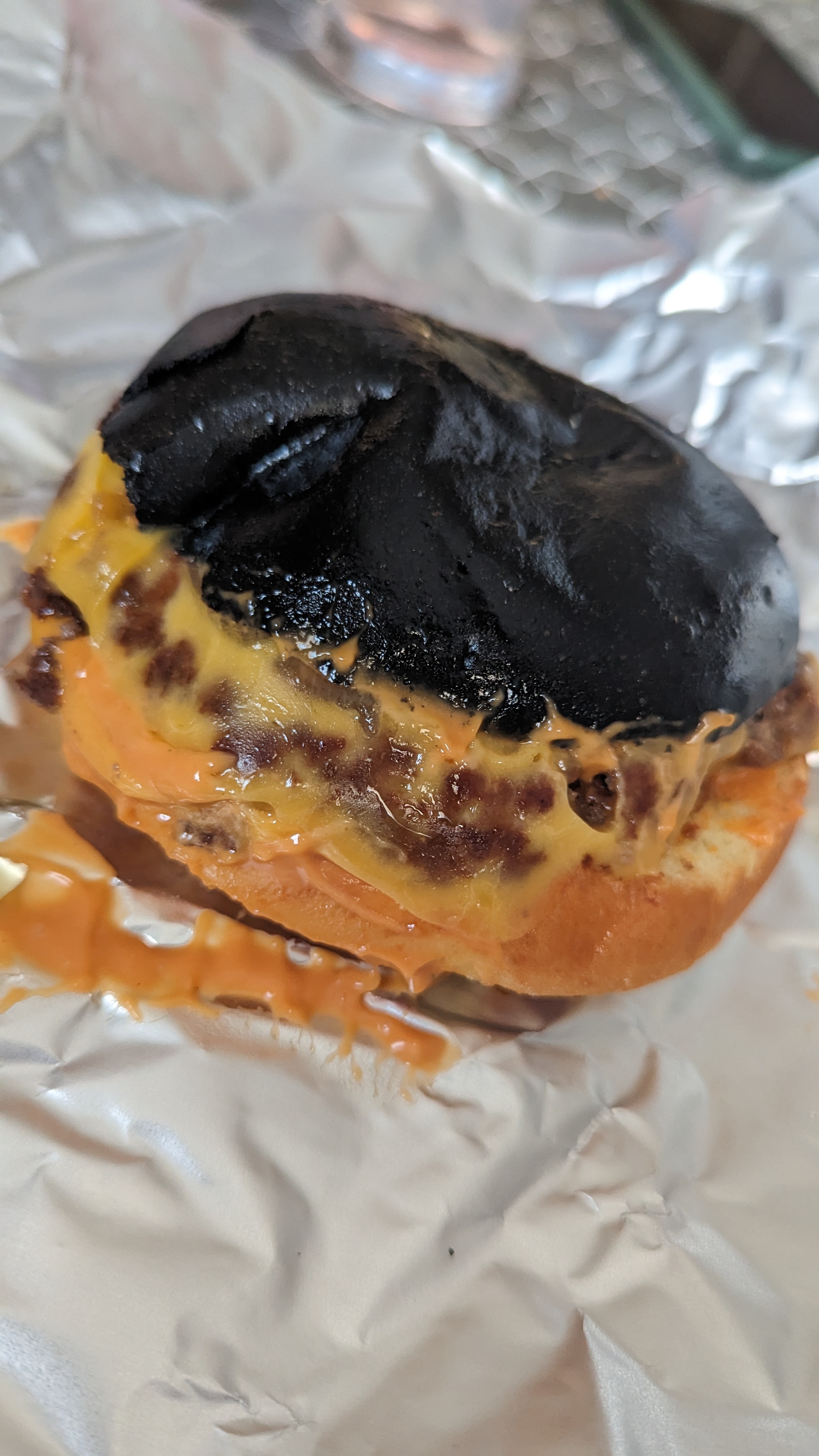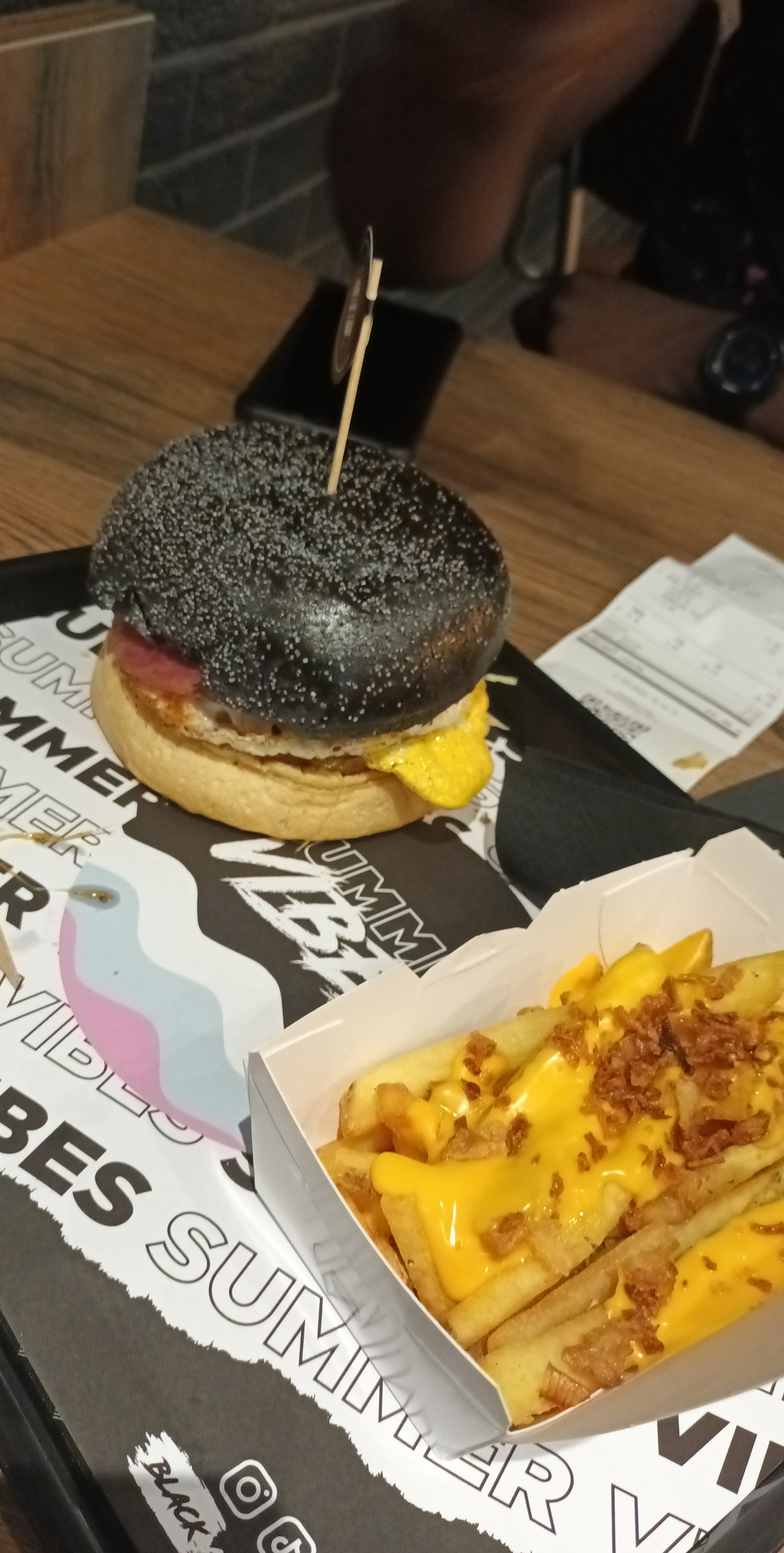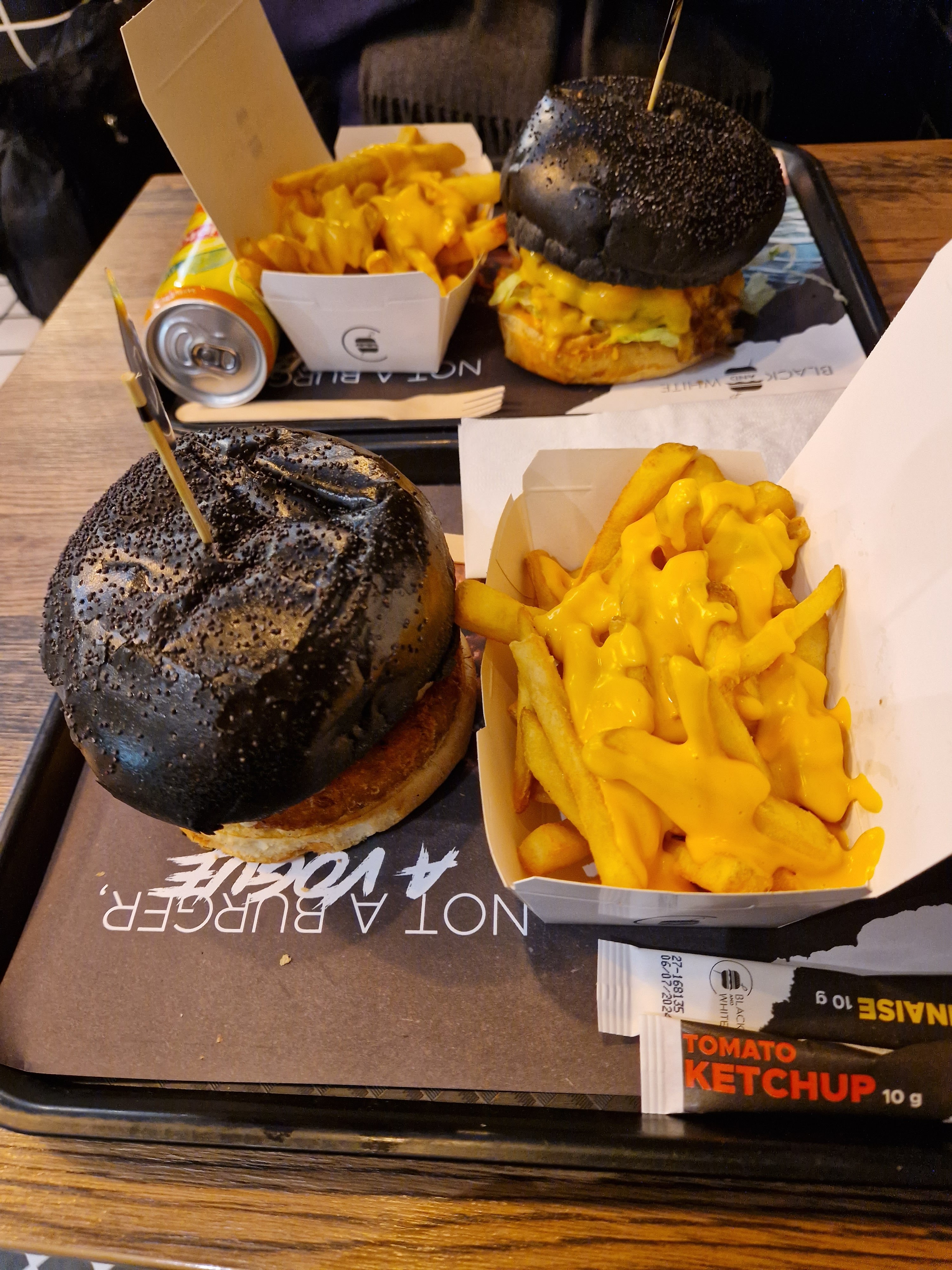Un burger comme un autre sauf la couleur qui change lol 😂. Les cartes resto ne passent pas aux bornes, mauvaise organisation la commande d’une collègue a été oubliée. Le steak du burger était bon mais sans plus pour le reste. Le prix reste quand même assez élevé pour un burger comme celui-ci
