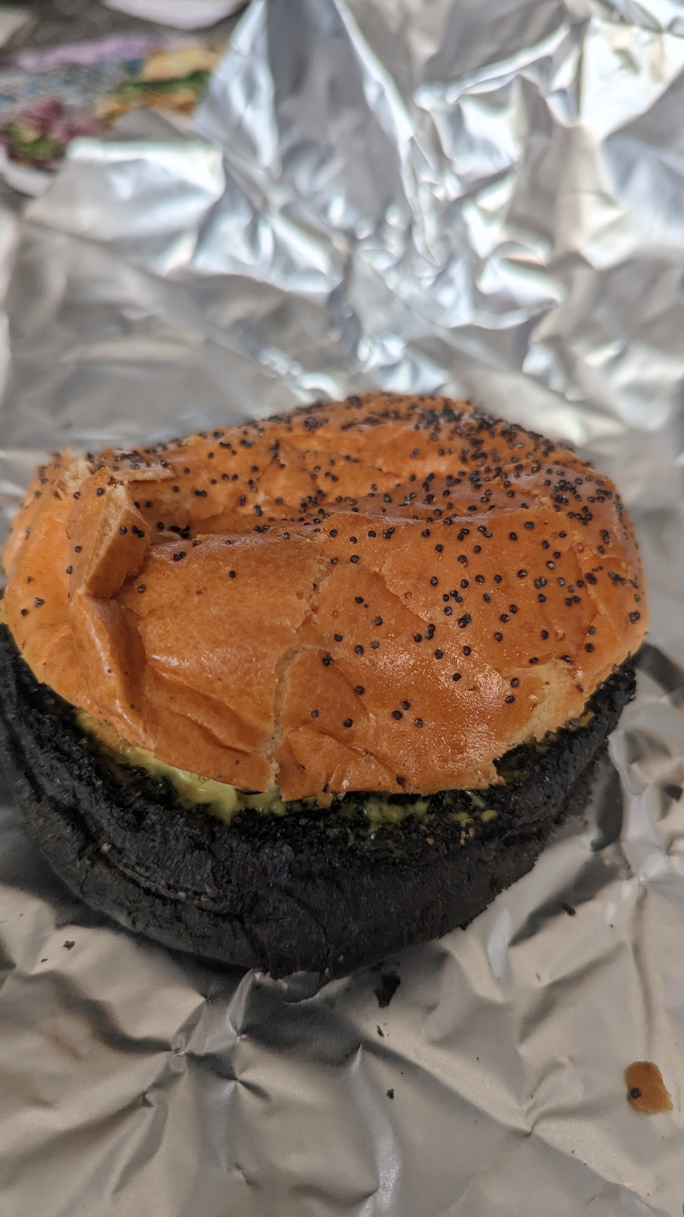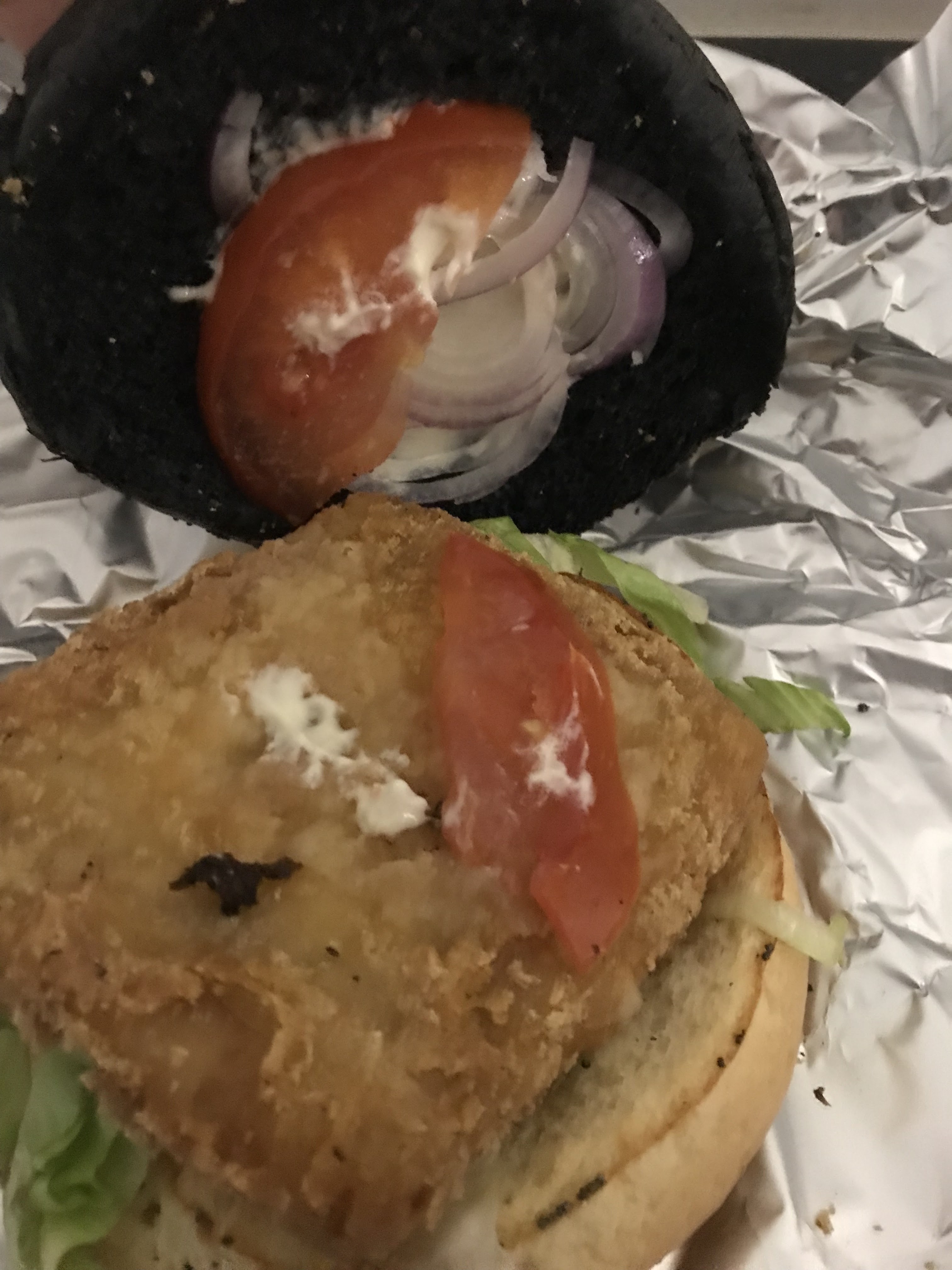 BURGER NOIR ET BLANC 🍔❤️ Ce hamburger est différent des autres hamburgers et son goût est également différent 😋 toute la nourriture est de cette haute qualité et très délicieuse. Merci 😊
