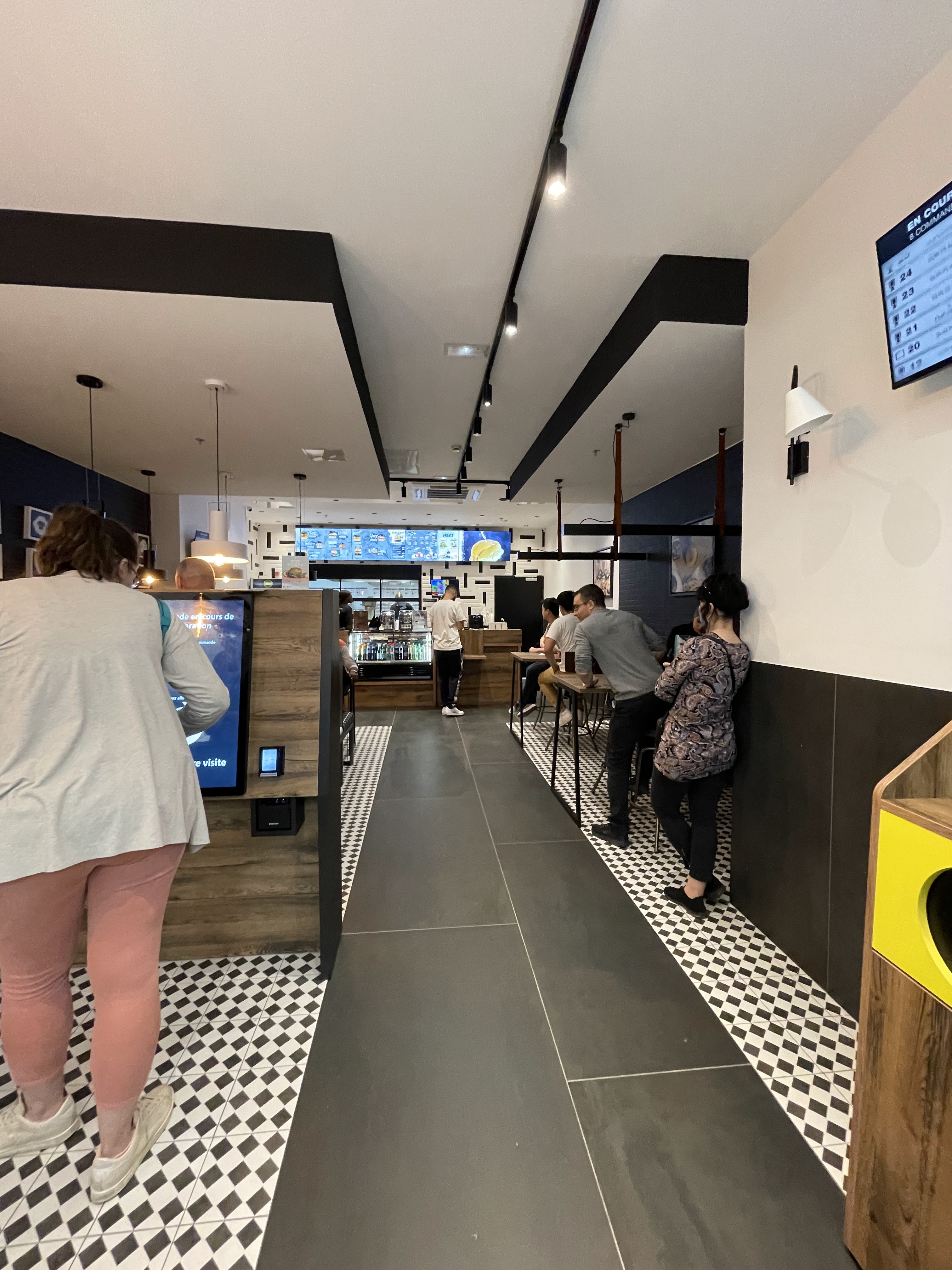 Bonjour, Beaucoup de choses à dire sur cette adresse. Déjà, c'était plutôt bon, ça se mange très facilement. Les quantités sont suffisantes. Les frites étaient parfaites :) Très bonne cuisson et pas trop gras. Il y a beaucoup de choix sur la carte. La borne est quali, comme l'endroit, la décoration est simple et efficace et il y a même des prises murales USB J'ai bien aimé l'eau plate avec pastèque (il y a plein d'autres fruits) c'est original et on ne trouve nul part ce genre de services et ça c'est cool Petite remarque pour la personne à la caisse : L'endroit est très petit et... forcément, il y a de l'écho. Essayez d'être un peu plus patient avec votre équipe et d'être moins stressé, on le ressent à des kilomètres, ça gâche vraiment l'expérience client et personnellement ça ne me donne pas du tout envie de revenir. J'ai entendu les mots allez et c'est prêt ? beaucoup trop souvent. Ne gâchez pas tout, soit vous formez mieux vos managers, soit vous accompagnez mieux vos employés en cuisine, mais dans tous les cas, évitez que les clients le voient. À bientôt :)
