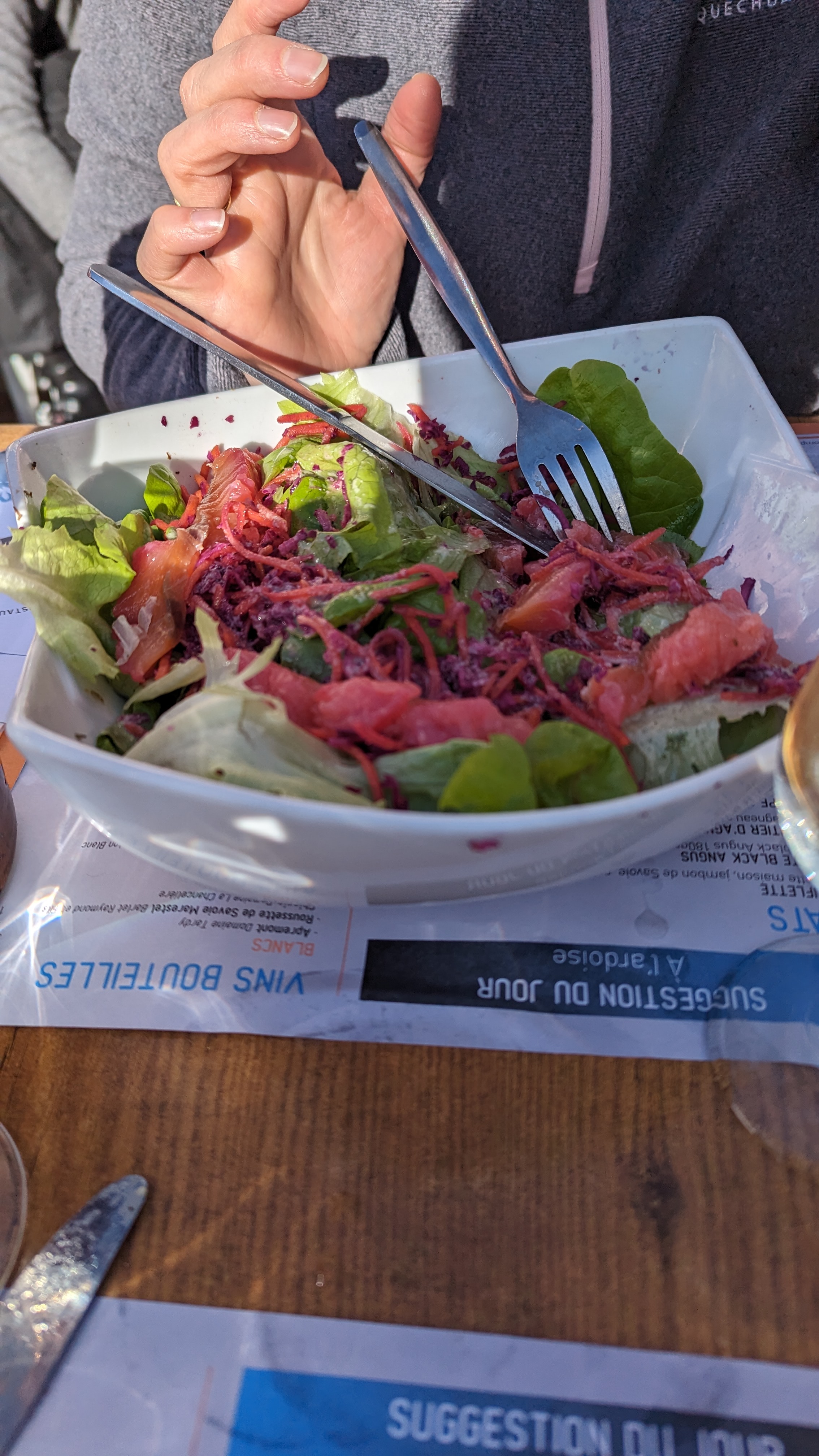 Un bon endroit pour détendre les jambes après une matinée de ski. Terrasse à l'abri du vent et en plein soleil. Plats originaux et bien garnis (la verdure aide à faire glisser les plats lourds). Equipe aux petits soins et disponible.