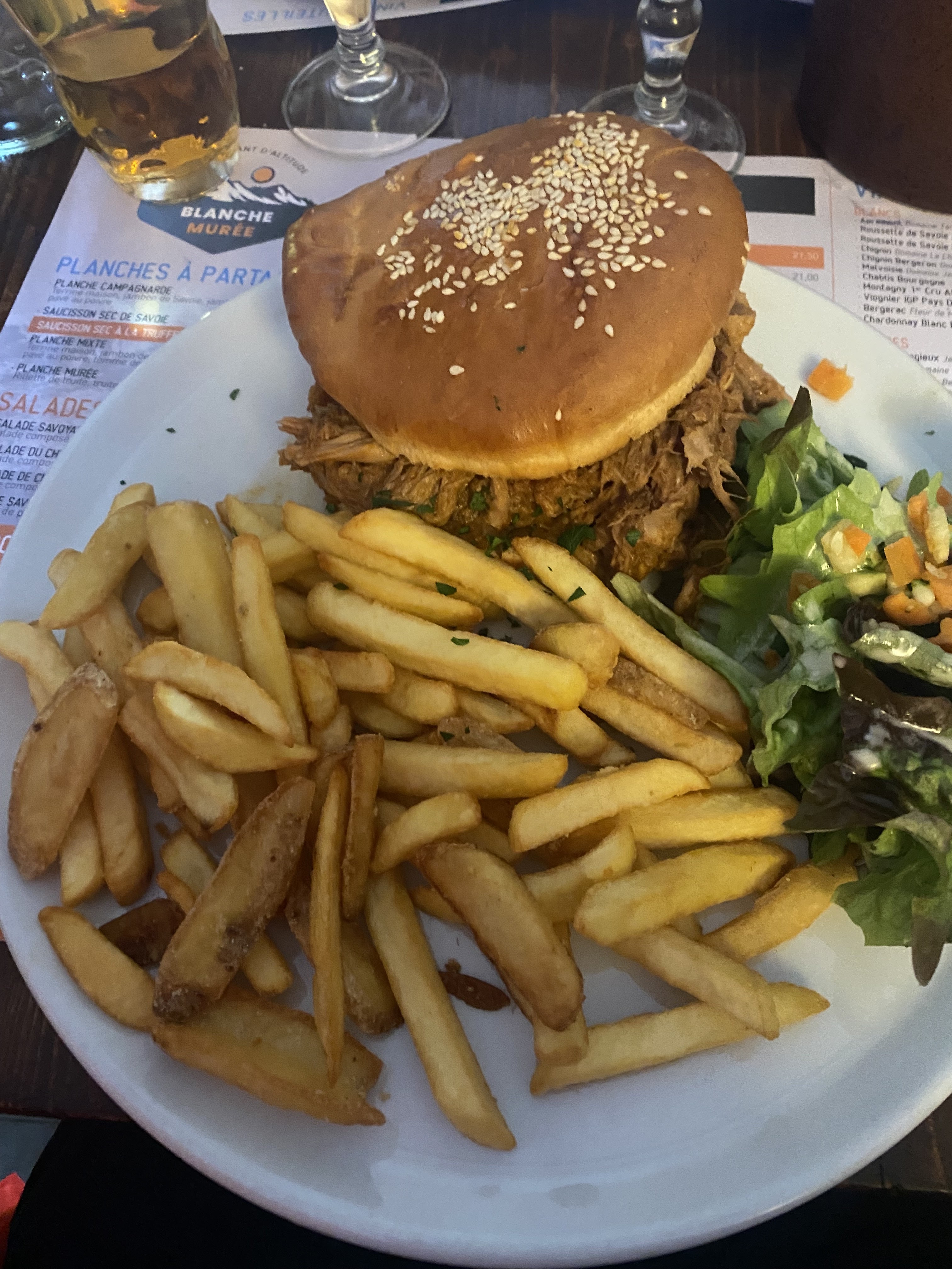 On m'avait recommandé le lieu en me disant que j'y trouverai une nourriture sans prétention. Oui, c'est le cas. J'ai pris une tratiflette : servie un peu façon plâtrée dans assiette comme si le cuistot avait coupé dans le plat à gratin...service ultra rapide, moins de 5 minutes après la commande, bien que le resto fût ce jour là, plein à craquer du fait d'une météo exécrable ...bon point mais qui me conforte sur le fait que c'est du tout prêt réchauffé. Le cadre n'a rien d'exceptionnel , les tables sont collées les unes aux autres. Un point positif, les chainettes le long des murs pour prendre gants et bonnets pour qu'ils sèchent. Une adresse pratique mais qui ne restera pas mes tablettes pour ses qualités gastronomiques.