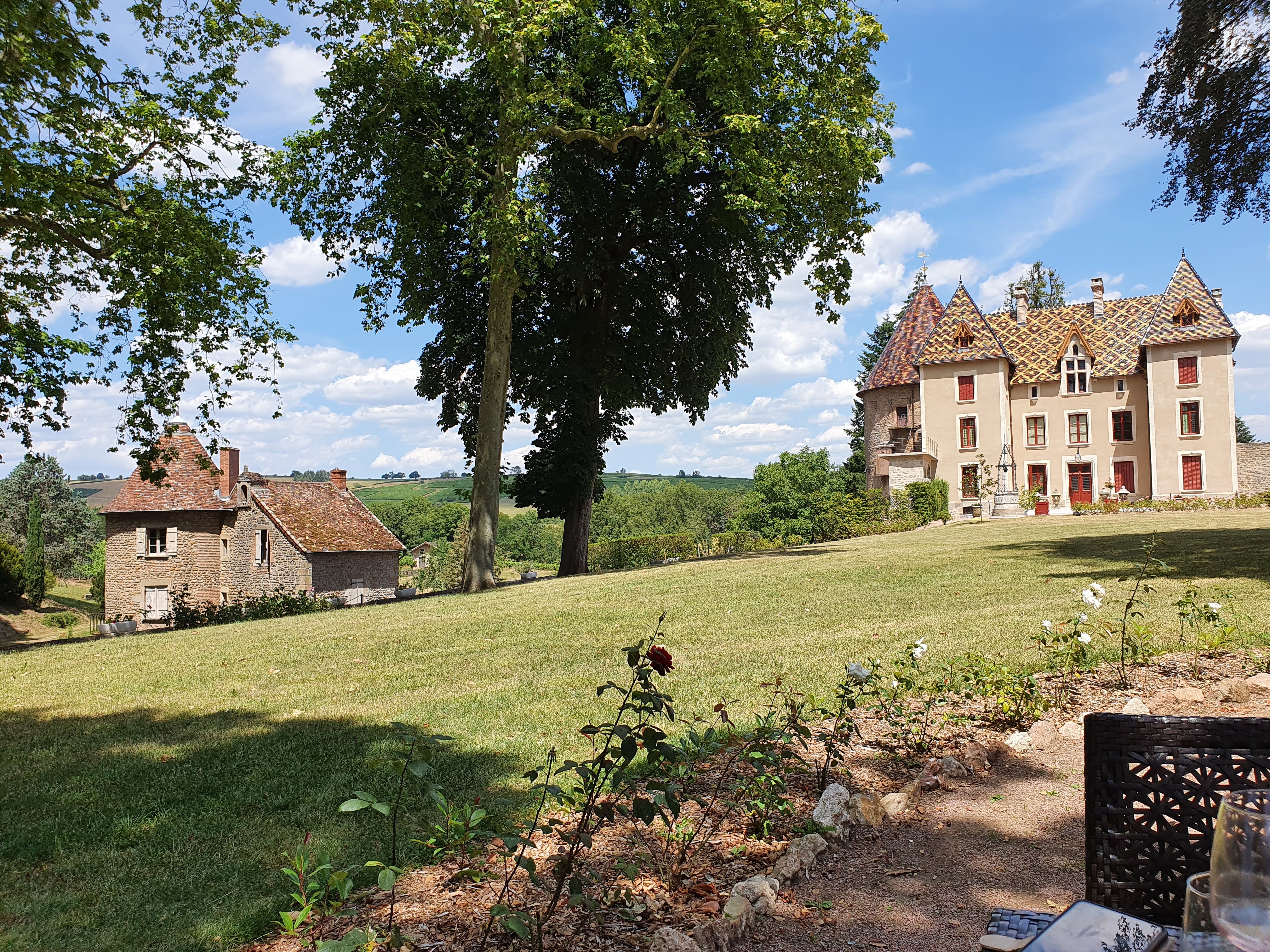 Il faisait très beau l’environnement magnifique le château restaurant quelques remarques pas de nappe pas de coussins sur les chaises en fer pas de sceaux à glace pour mettre le blanc au frais le beurre d’écrevisses trop dur le bœuf excellent et desserts moyen Pour le prix c’est moyen peu mieux faire Les serveuses pas très pro mes sympathique