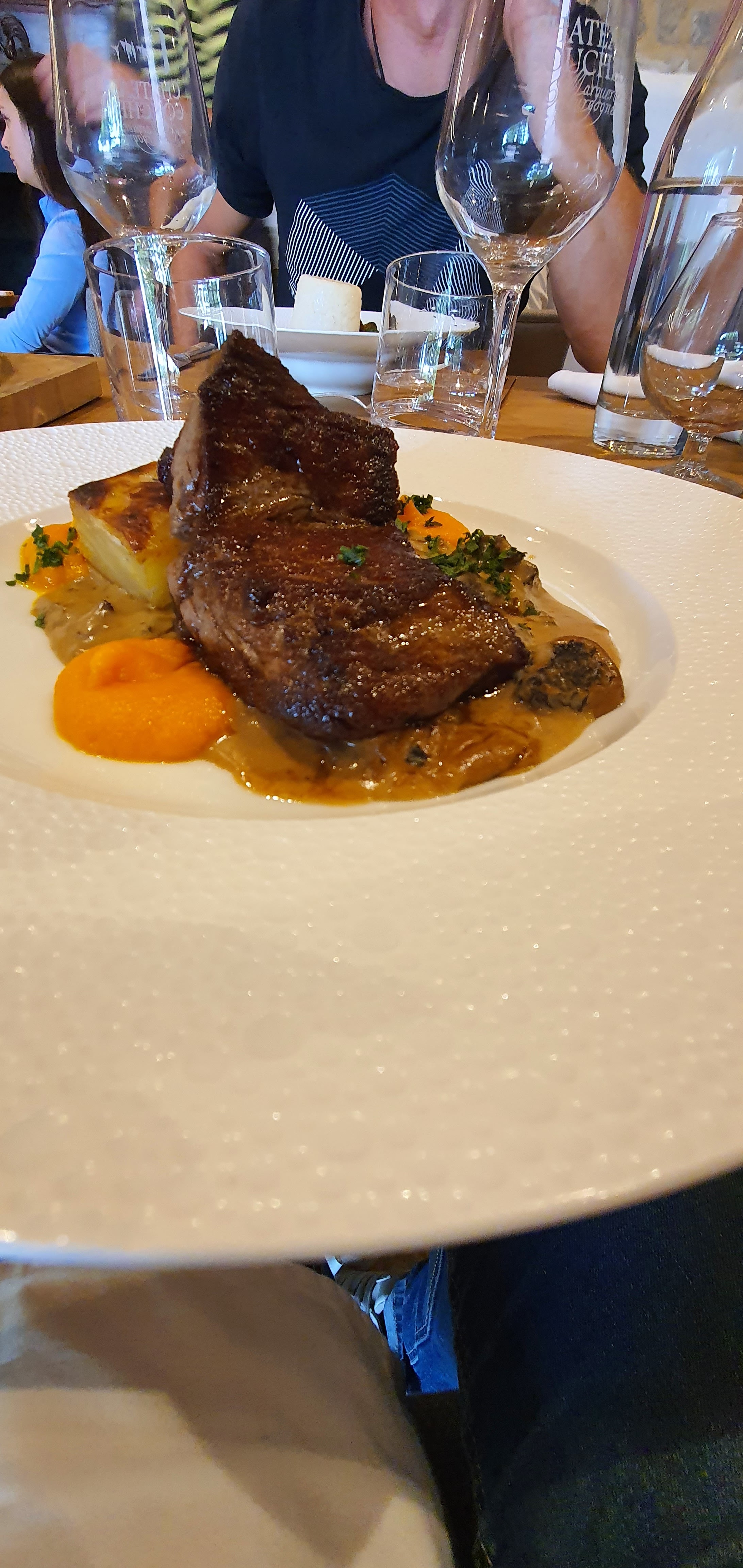Soirée parfaite. Cadre magnifique. Accueil impeccable. Serveuse très agréable. Un régal du début à la fin, assiettes bien présentées, délicieuses et copieuses. Le vin blanc du domaine est très bon. Je conseille à 100% ce bon restaurant.