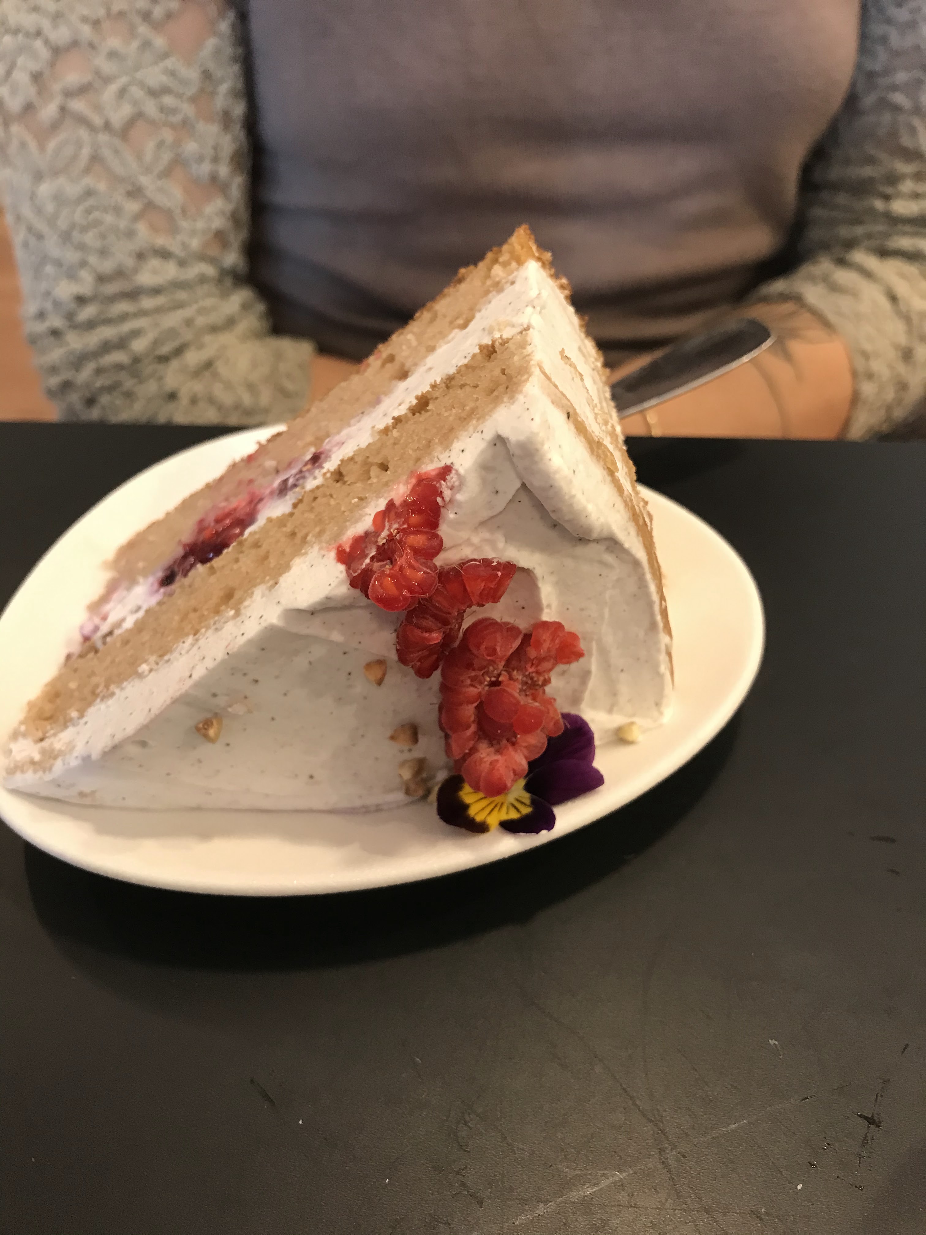 Accueil et service très sympathique et rapide. Joli déco. Choix de pâtisseries végétaliennes : cheesecake (cru) ou carrot cake (cuit). Il faut demander car ce n’est pas indiqué dans la vitrine des desserts. On peut aussi y manger salé végétalien en demandant d’enlever le fromage d’un des plats végétariens mais dommage qu’il n’y est pas du vegan à la carte directement.