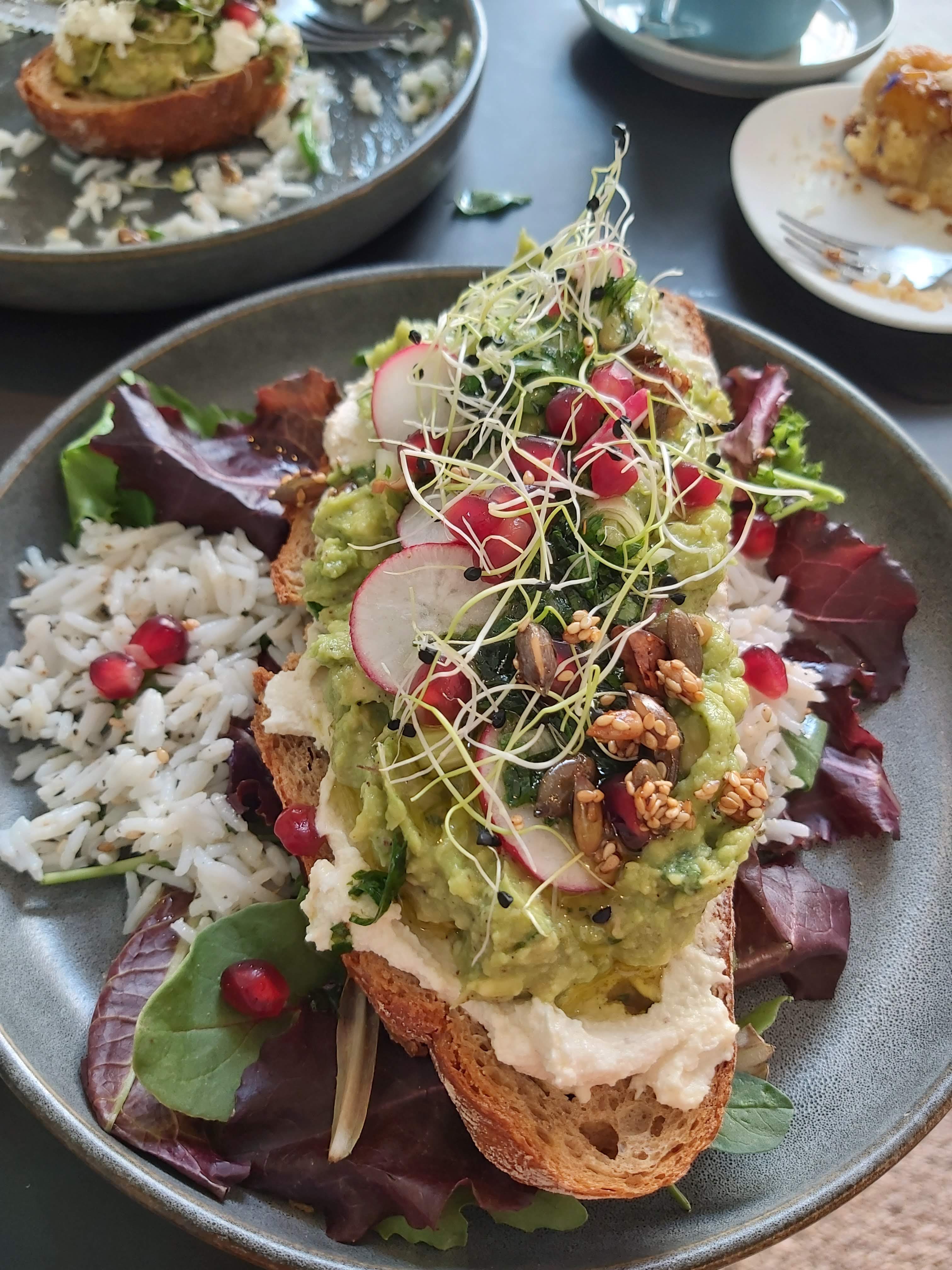 Je rentre avec et suis accueillis avec le sourire, je vois le prix du brunch et commence à m'inquiéter, deux clients d'affiler se font tutoyer je me dis que c'est un restaurant pour les bobos, trop cher pour ce que c'est avec une équipe irrespectueuse. Mais en fait pas du tout, la nourriture est excellente, le toast avocat jambon est une tuerie, le fromage blanc aux graines de chia est à se rouler par terre et le cookies était très bon quoi que un peu bouratif, mais c'est in cookies donc normal! Équipe géniale et déco super, un petit style vintage avec de la bonne musique et une bonne ambiance, j'y retourne dès mon retour à Pau.