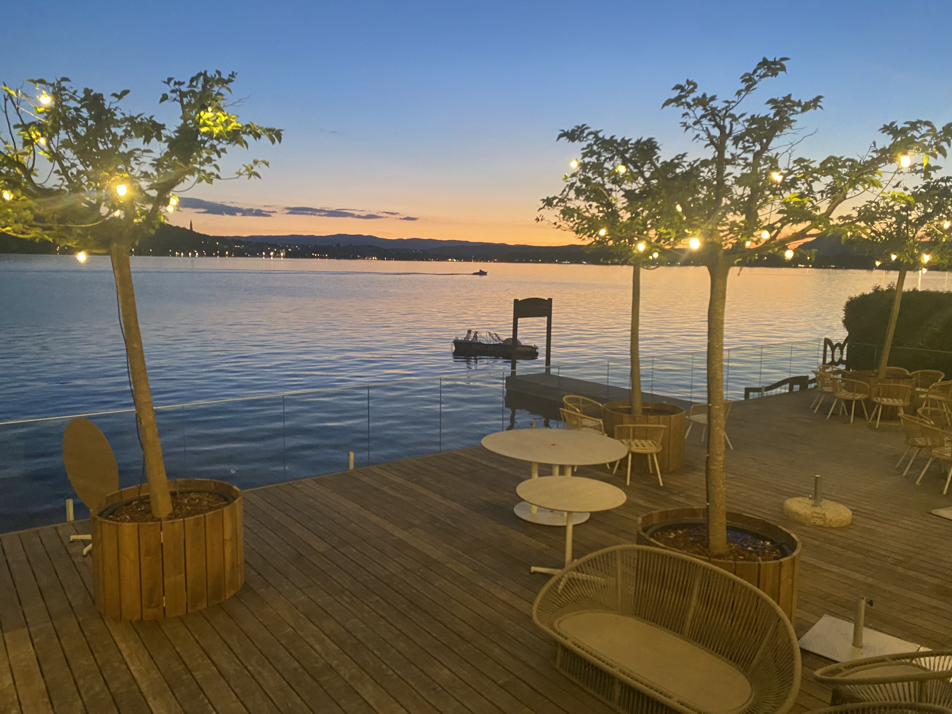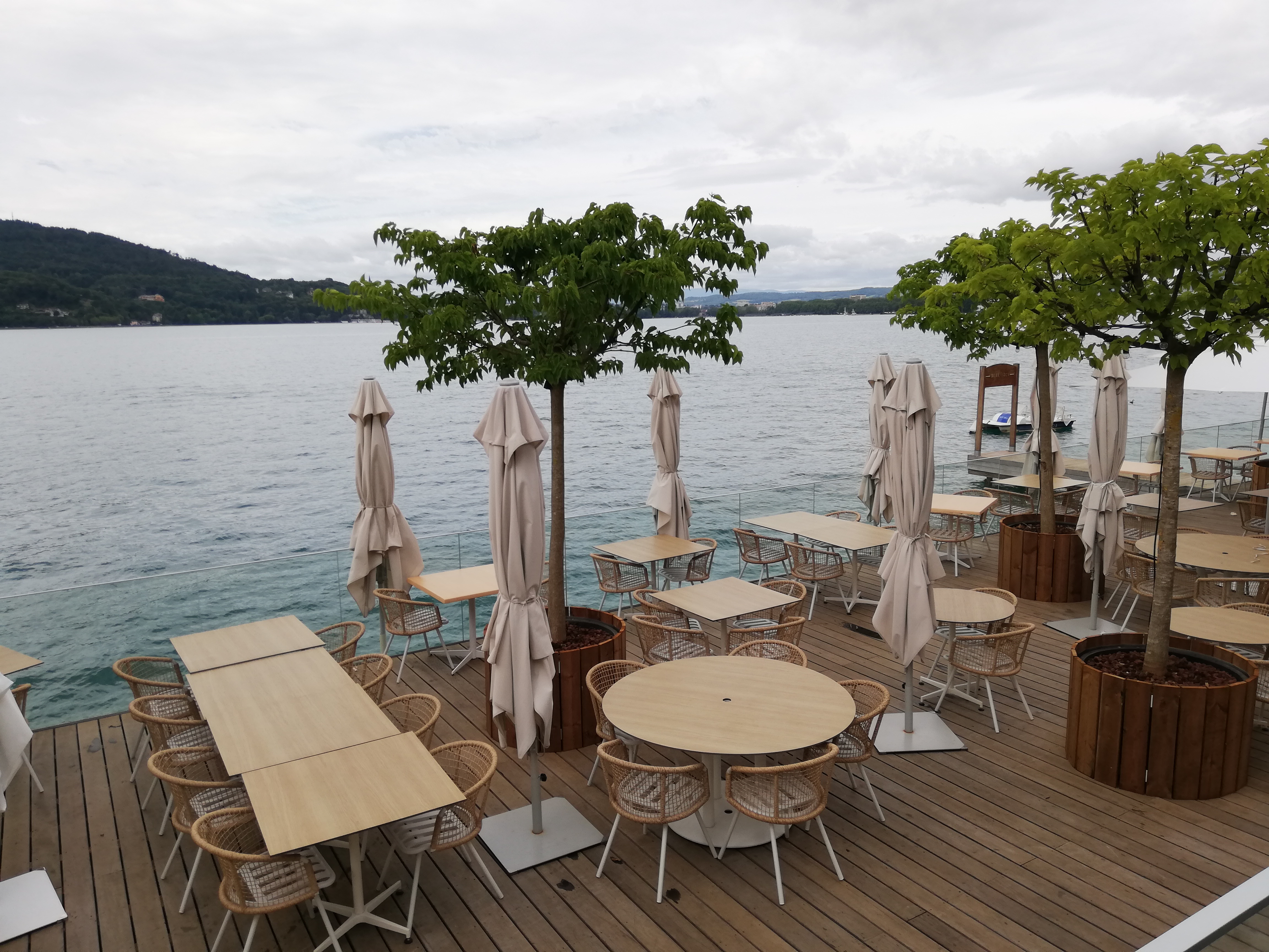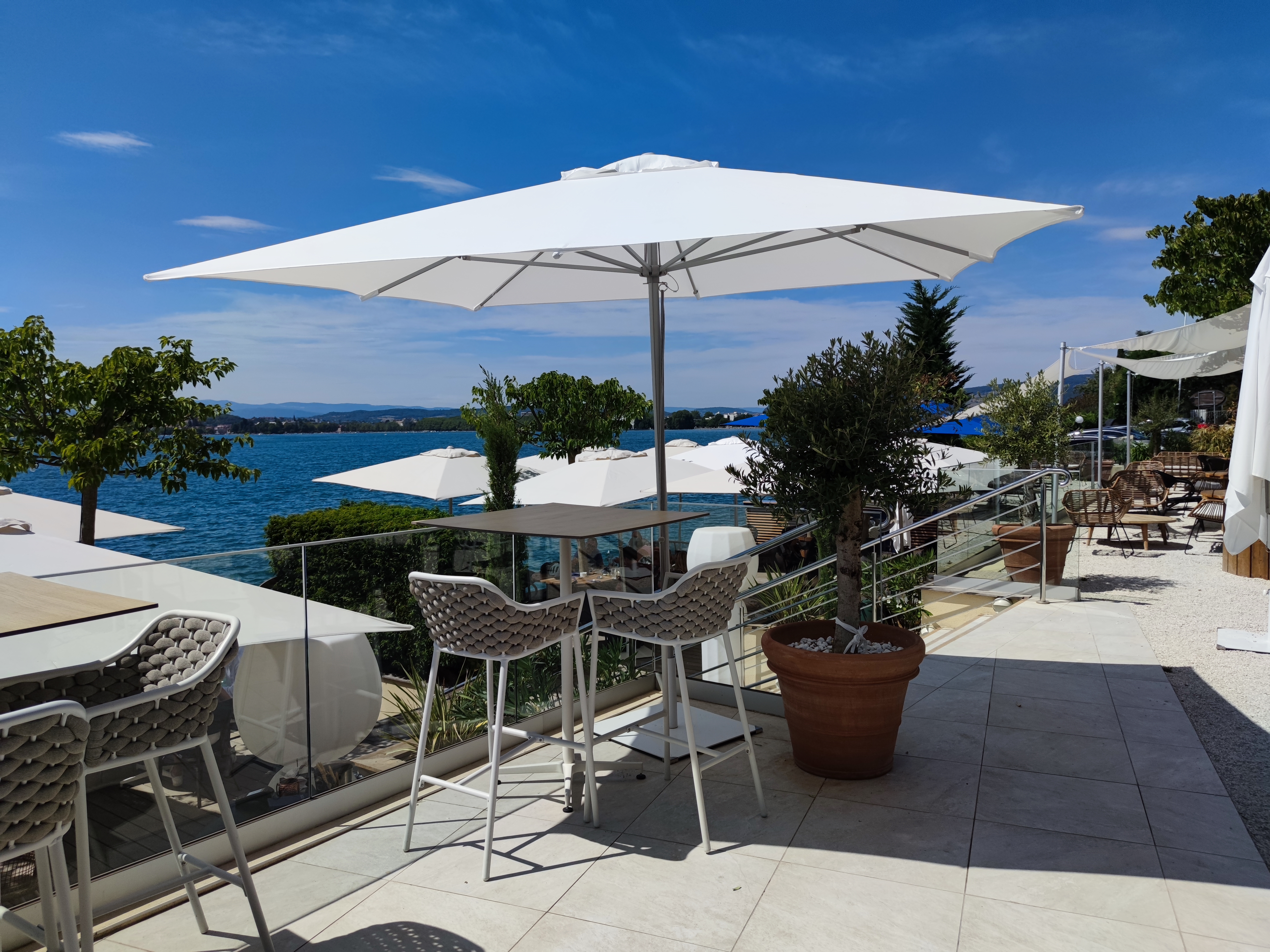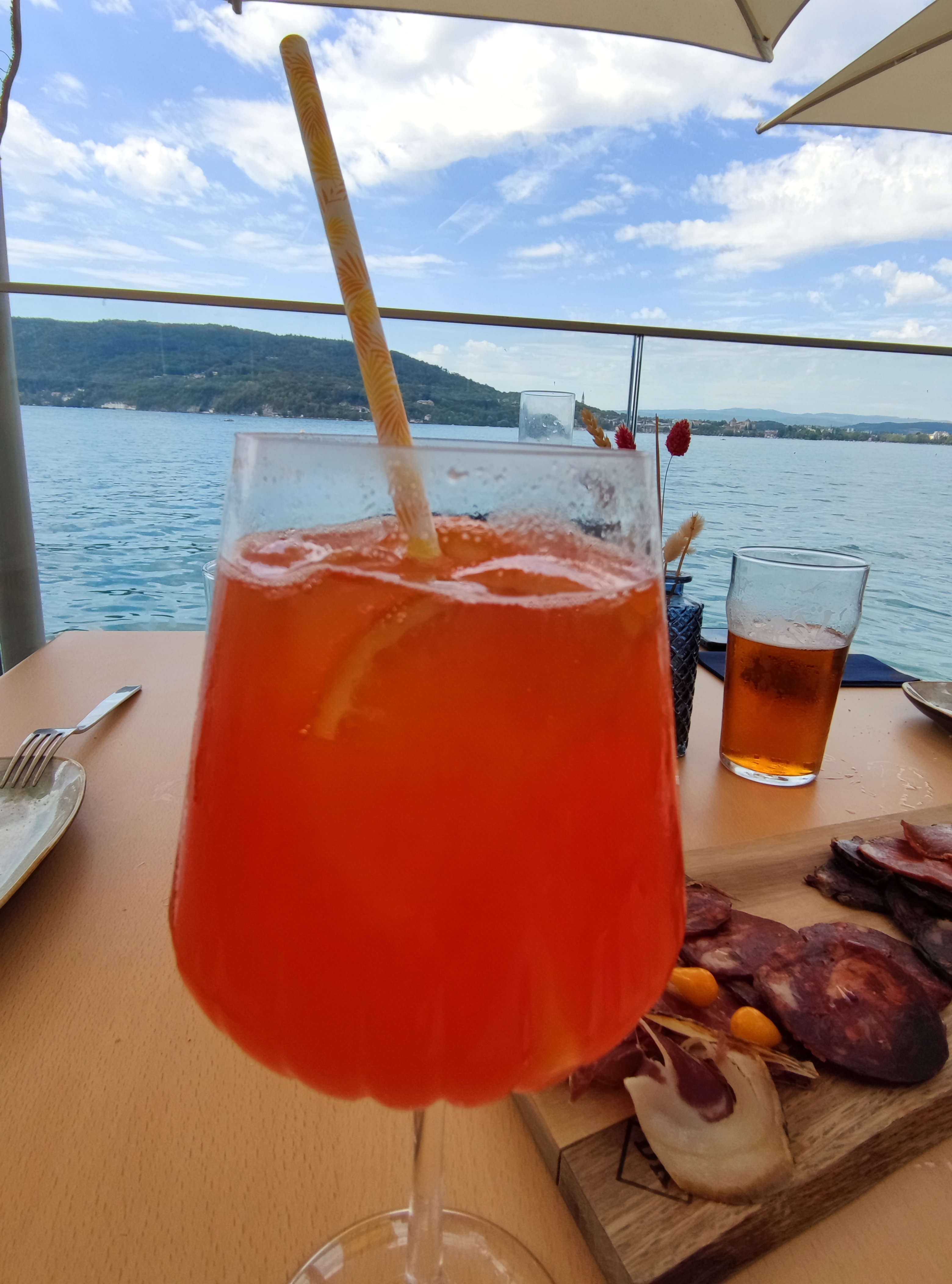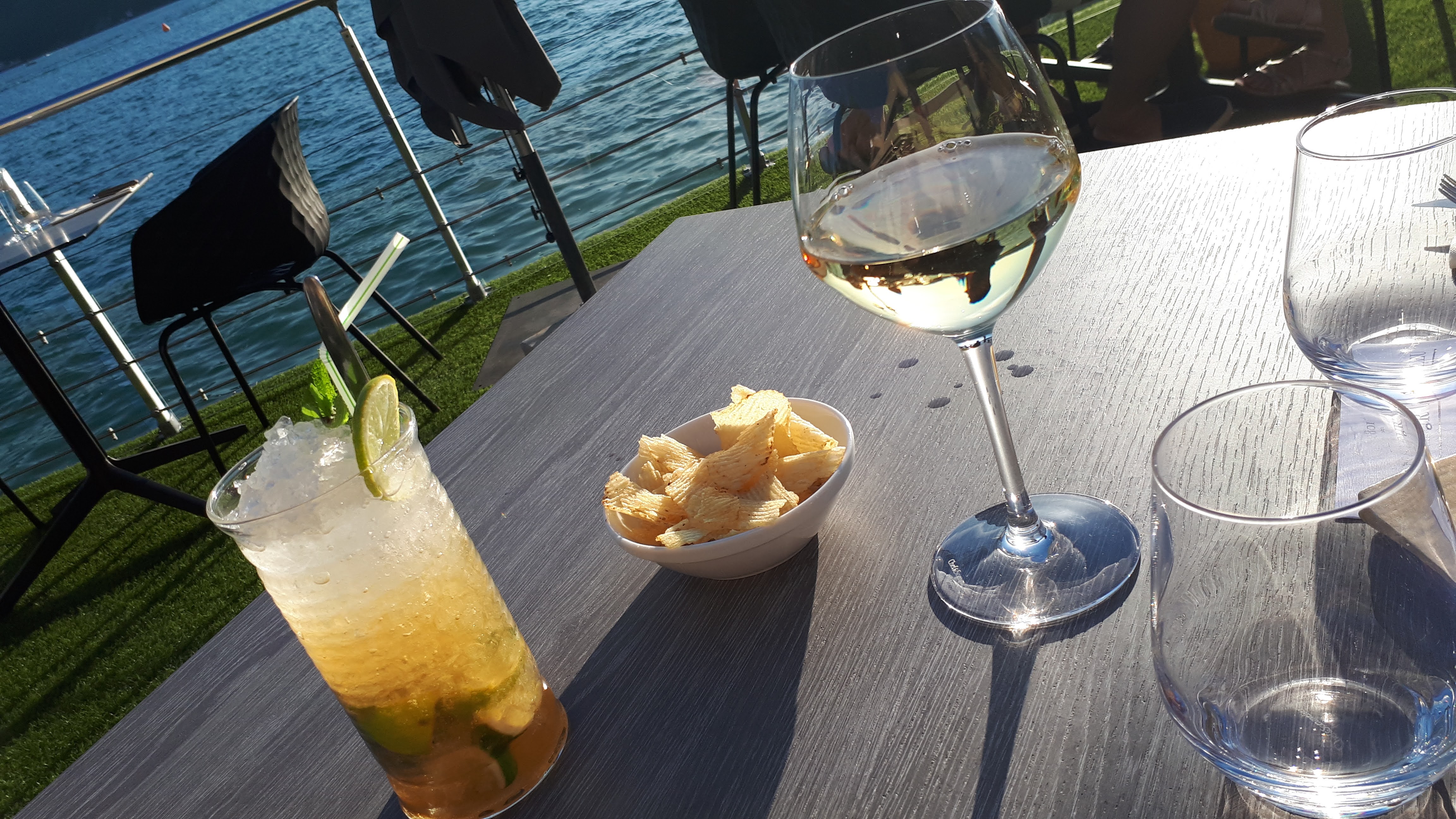 Lieu idéal pour boire un verre ou manger, en profitant de la vue sur le lac. Accueil et service impeccable ! Et les cocktails sont très bons !!