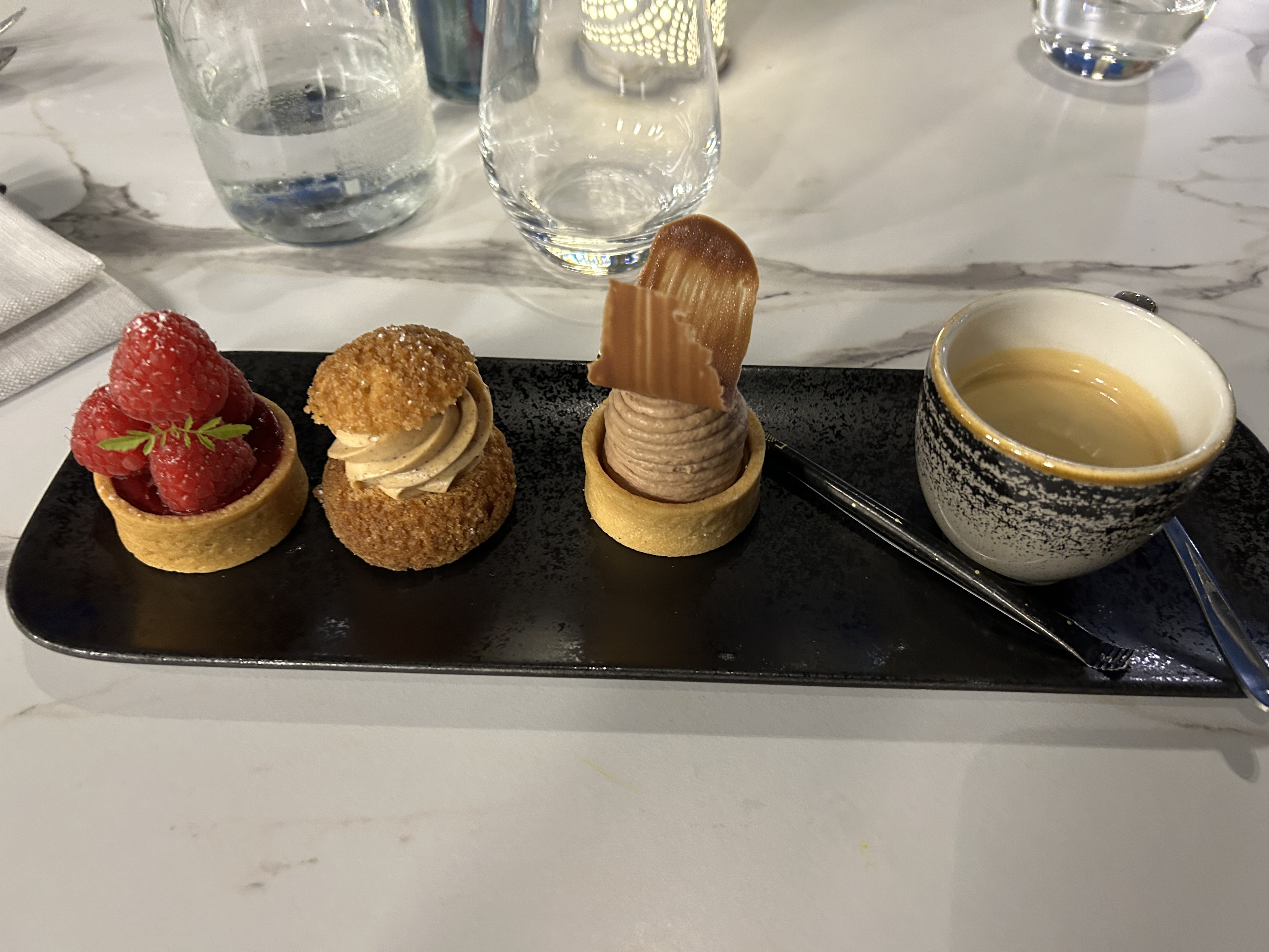 Joli et belle cuisine mais manque vraiment de personnel en salle (attente, personnel qui court, café gourmand dont le café arrive 10 min plus tard etc.)