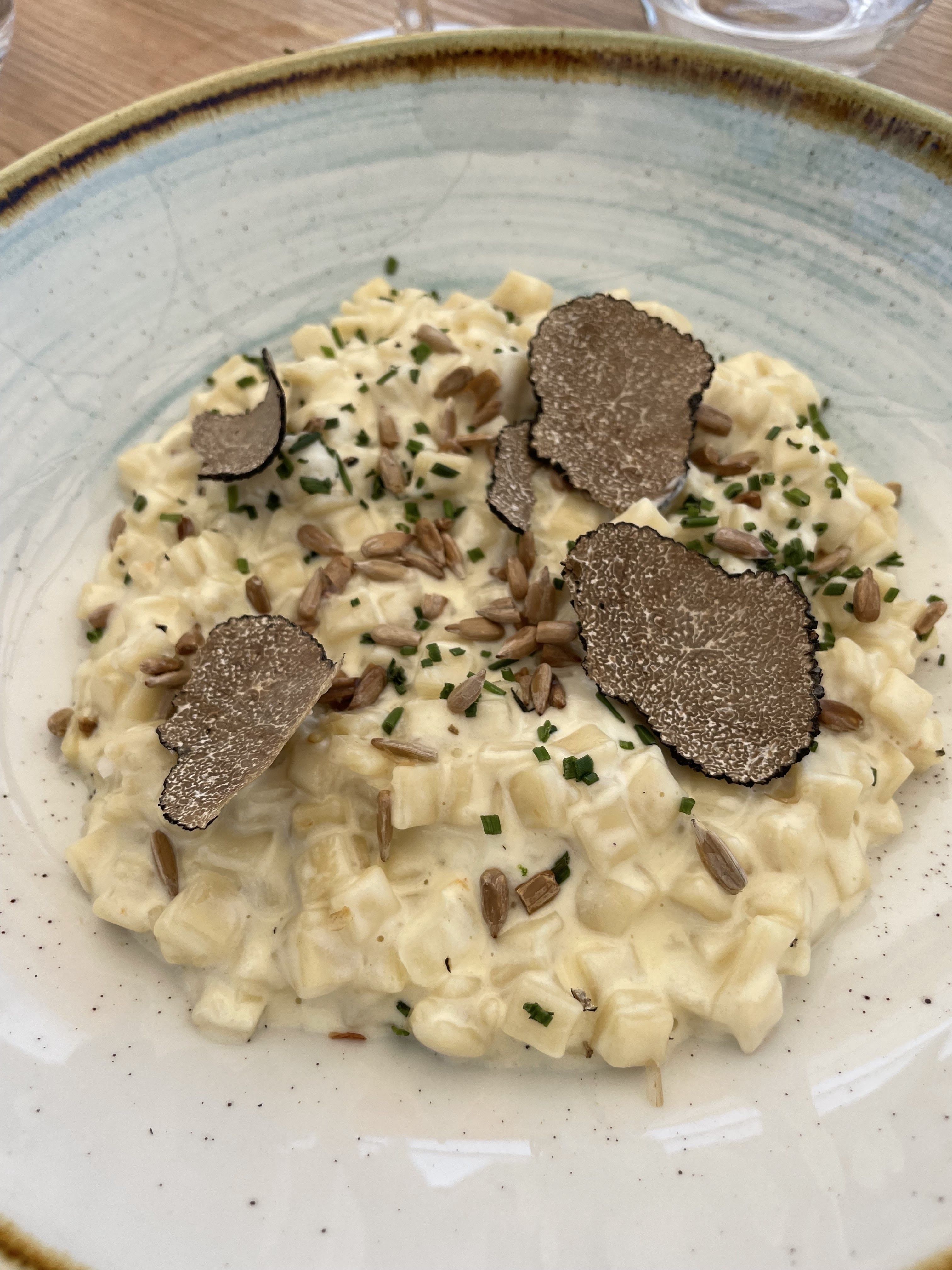 Lieu exceptionnel, cadre idyllique. Service à la hauteur. Plats de niveau très respectable, risotto moyen. Desserts aussi bons que beaux.