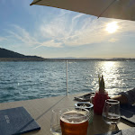 Le gros point fort du restaurant est clairement la vue, à ras de l'eau au bord du lac cela vaut vraiment le détour au coucher du soleil. Les cocktails ainsi que la nourriture étaient bons, et la quantité suffisante pour moi. Les tarifs sont assez élevés. Le personnel est sympathique, mais pourrait être un peu plus professionnel : verres d'apéro pas débarrassés, longue attente pour les entrées puis on nous amène les plats alors que les entrées ne sont pas terminées. Ensuite attente encore assez longue pour le dessert. Globalement une bonne expérience tout de même !