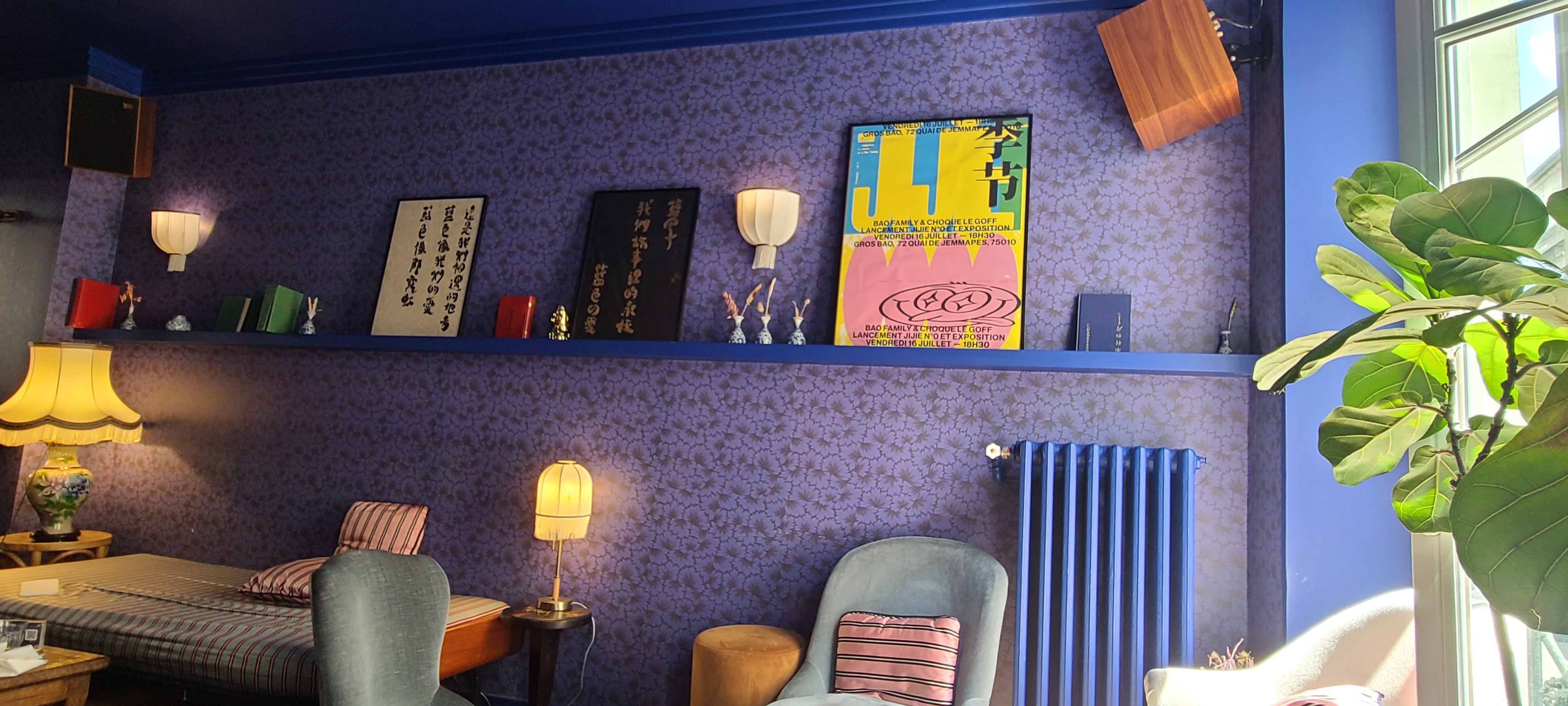 ❝ Pains bao, dimsums, spécialités chinoises en petites portions et cocktails servis dans un espace branché décoré dans des tons bleus. ❞