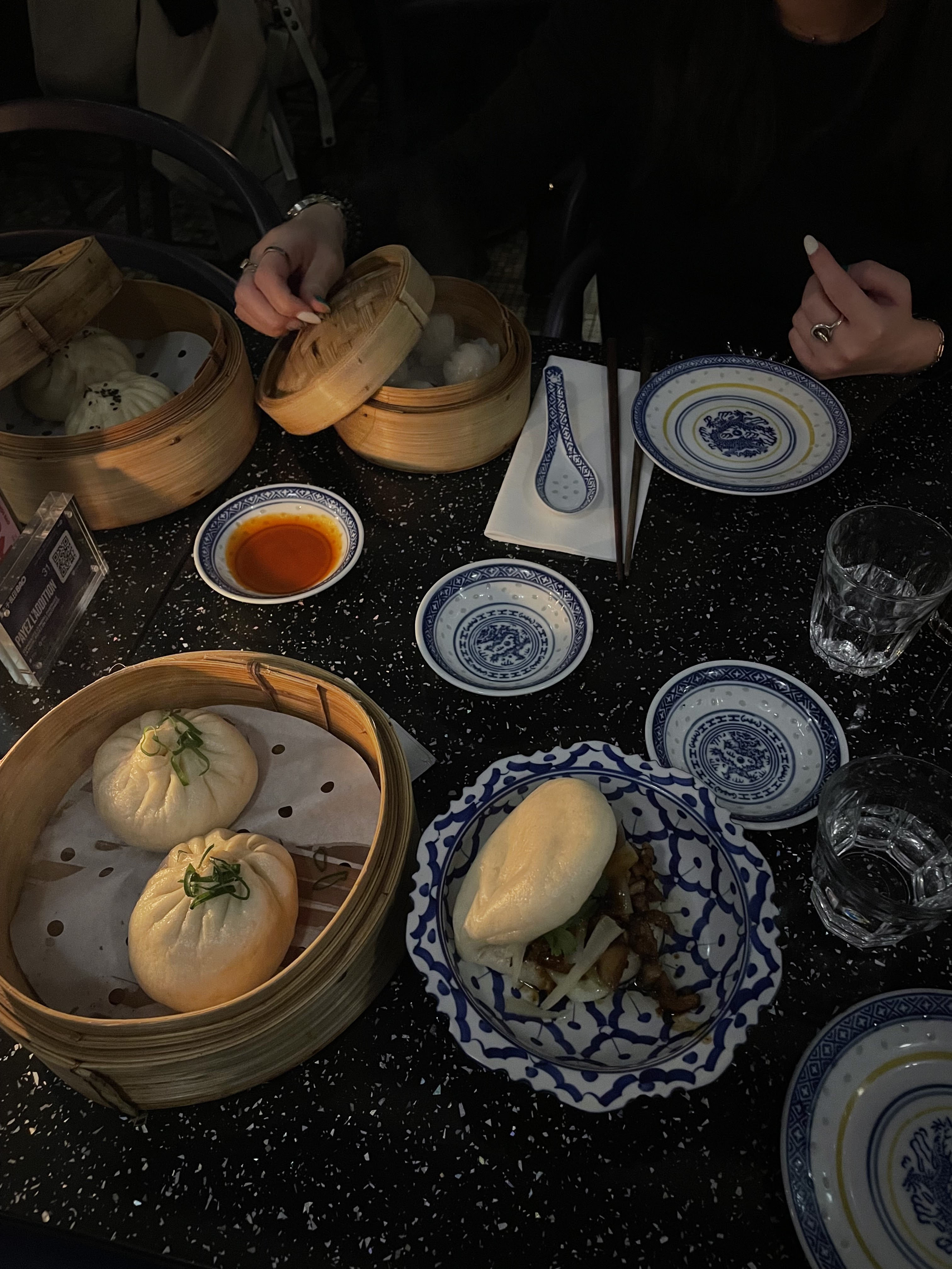 Des baos délicieux, bcp d'options végétariennes c'est top, pendant le dîner la salle un peu trop bruyante, difficile de bavarder, mais en même temps c'est tellement bon 😅