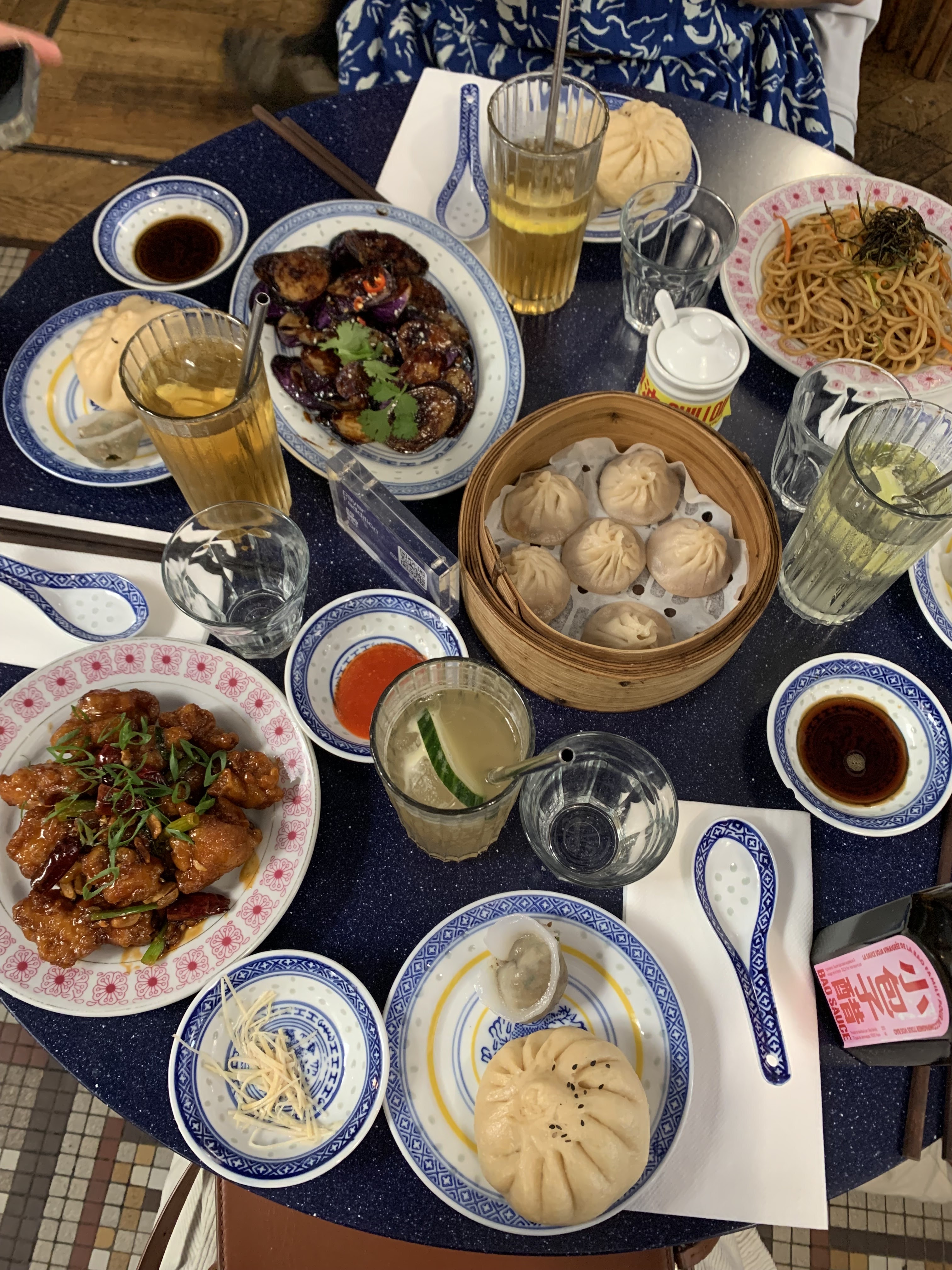 Repas d’équipe à l’étage, assez calme, on a pu discuter et on a partagé certains plats. Le service était rapide. Nos collègues végé ont pu trouver leur bonheur. les aubergines ont fait l’unanimité. J’ai aussi adoré le thé glacé au jasmin, sucré juste ce qu’il faut. La salade poulet concombre amenait de la fraîcheur et du croquant. Nous avons super bien été conseillés sur le nombre de plats à prendre. Pour 6 personnes, nous avons commandé : poulet concombre, siu mai, bao végé, dumpling shiitake pleurotes x2, bao poulet, poulet, porc x2, nouilles légumes sautés, aubergines archi fondantes x4, riz blanc x2. Bref, on s’est régalés et avons passé un très bon moment.