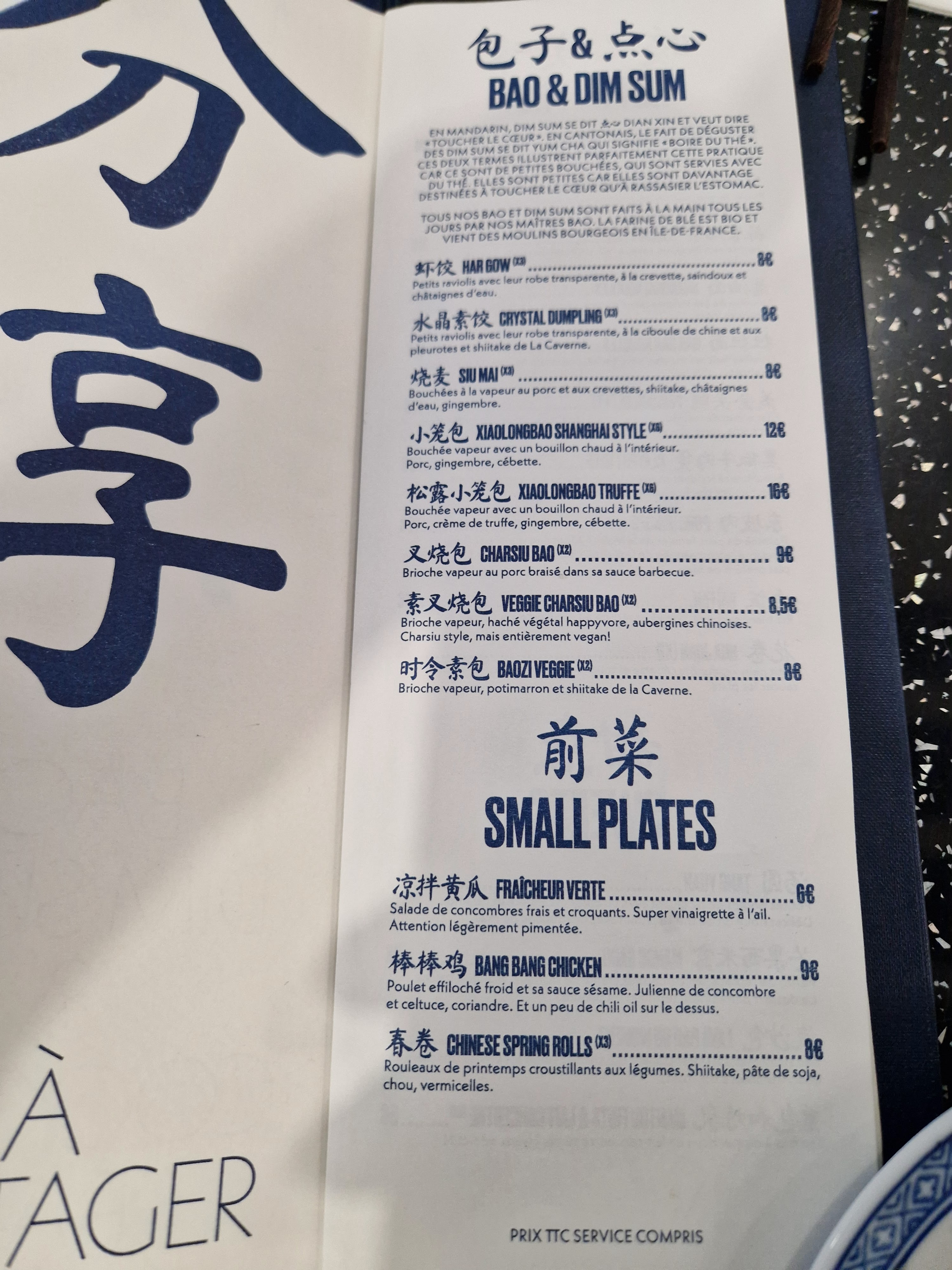 Une belle découverte ! Une super adresse pour manger des bao, dim sum excellents en plein Paris. Les plats sont très bons également et la serveuse qui nous a servi était très sympa. Un point en plus pour la belle déco ! Je vous conseille de réserver pour être sûr d avoir une table