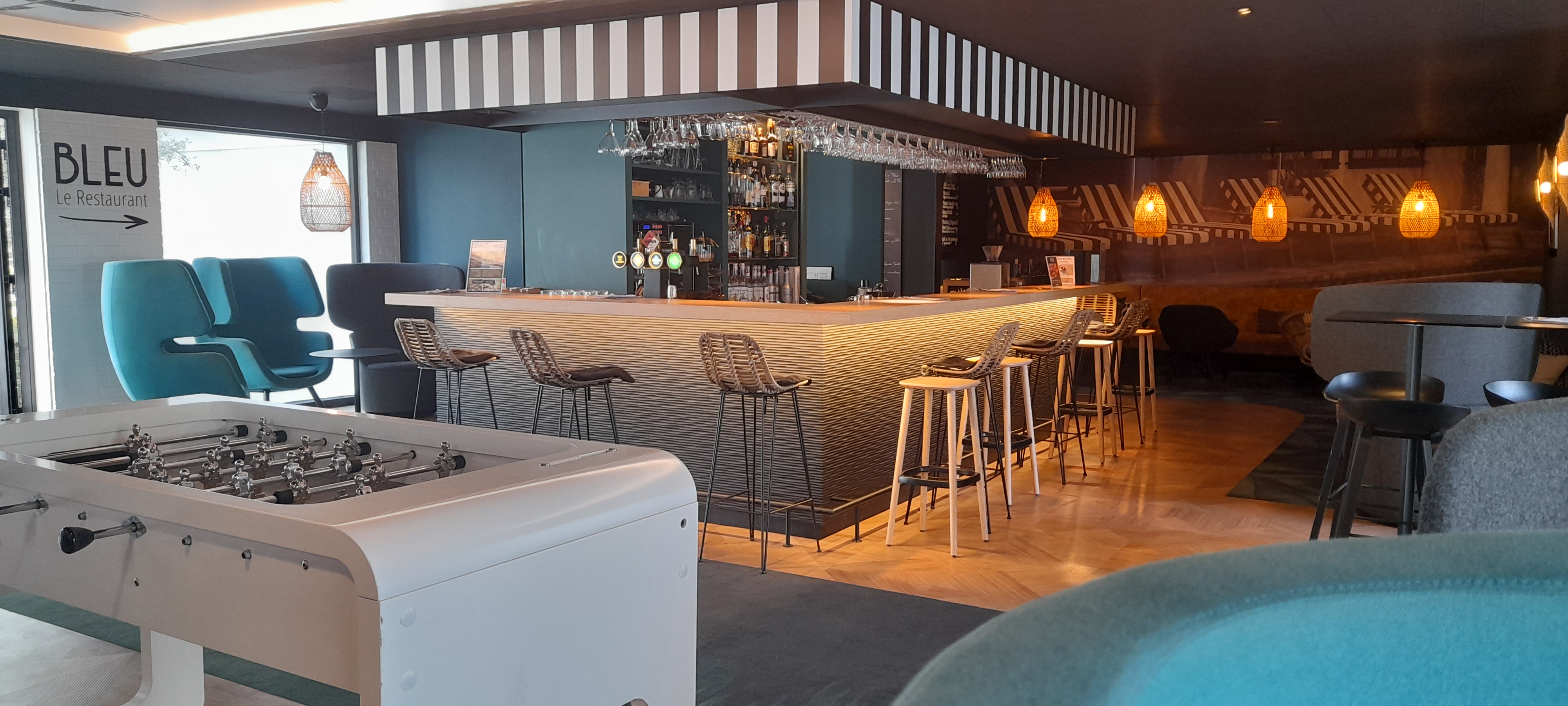 Dans un cadre ravissant et une ambiance feutrée, à l'intérieur comme à l'extérieur, une petite carte des menus nous est proposé. L'établissement Bleu Restaurant est intégré au sein du Novotel. Ici l'on mange des plats goûteux et raffinés et faits maison. Un bon rapport qualité/prix : je recommande👍