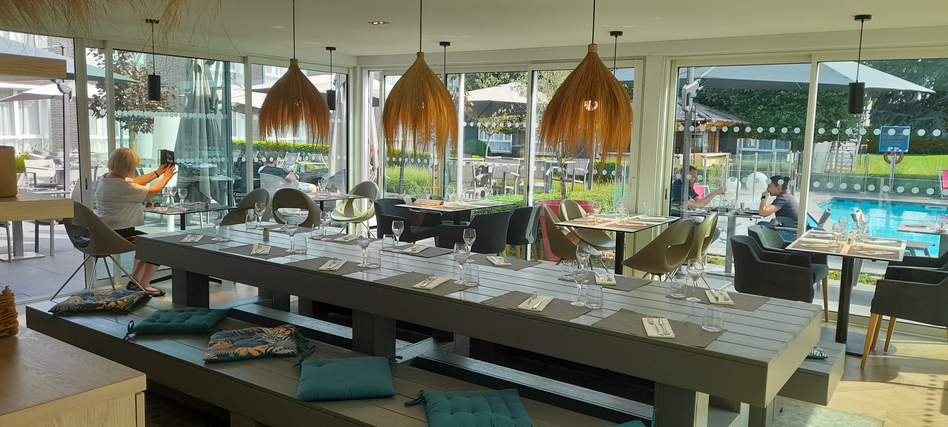 Restaurant dans l'enceinte de l'hôtel Novotel. Une jolie véranda vous laisse une vue sur le parc et la piscine. La cuisine est d'une grande qualité avec des présentations d'assiettes très raffinées
