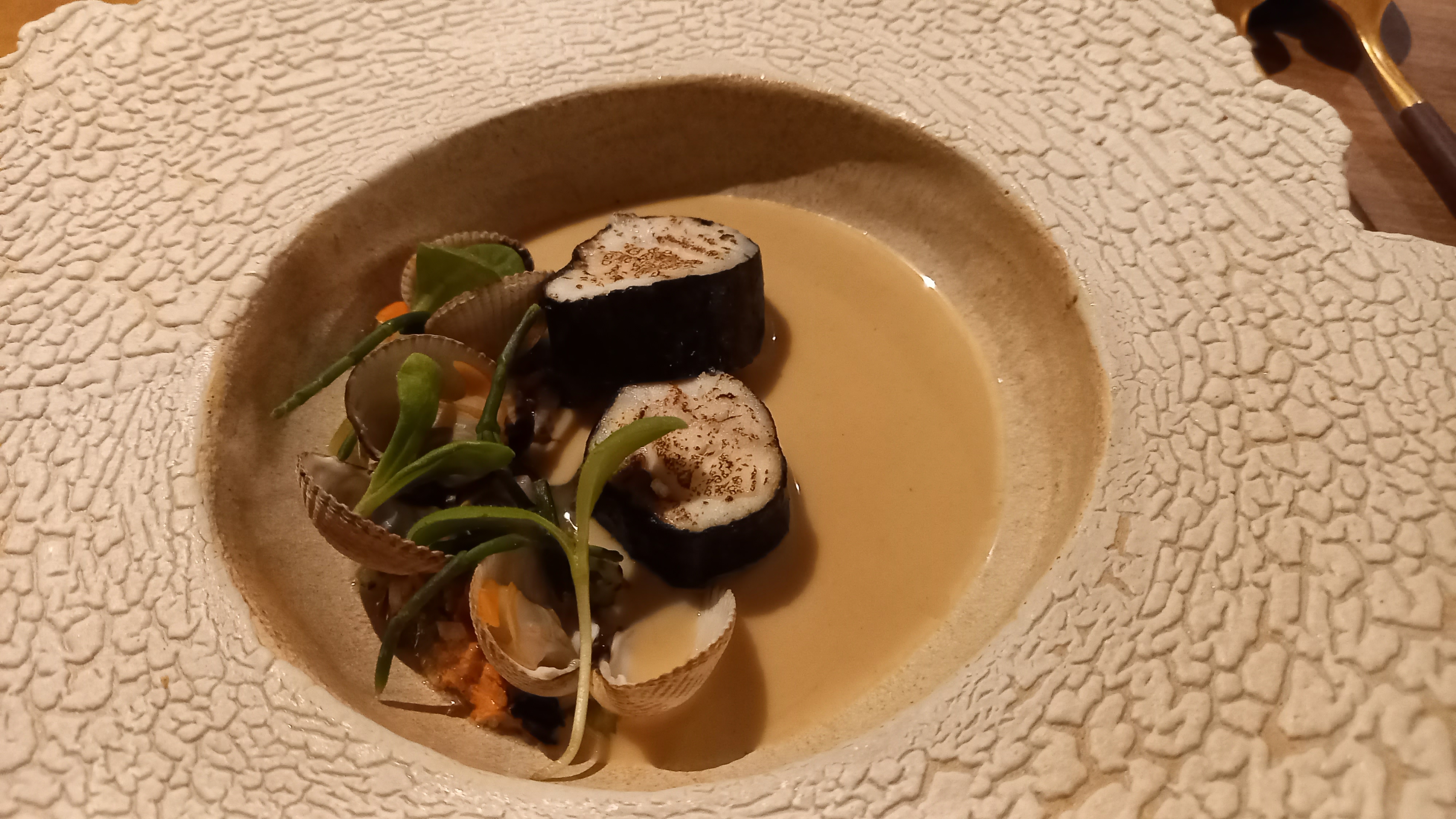 Attiré par la beauté de chaque plat, la recherche des ingrédients provoque une expérience intérieure intense. Je me suis surpris à fermer les yeux et chercher dans mes souvenirs (telle la madeleine de Proust) quelles pouvaient être les connexions. J'y vais en gros tous les deux ans : seul, avec ma fille, avec un collègue proche et cette fois avec mon épouse qui, bien qu'elle soit végétarienne, s'est régalée avec les mélanges de parfums qui masque le fruit de mer ou le poisson. Ses goûts ont été aimablement pris en compte par la maîtresse des lieux, une femme enjouée et pleine d'humour et de vie, qui nous entraine dans l'aventure. Les plats, réalisés avec soin tant par le père que par le fils, sont beaux et goûteux. La famille nous embarque dans ses rêves joyeux et nous communique son bliss.