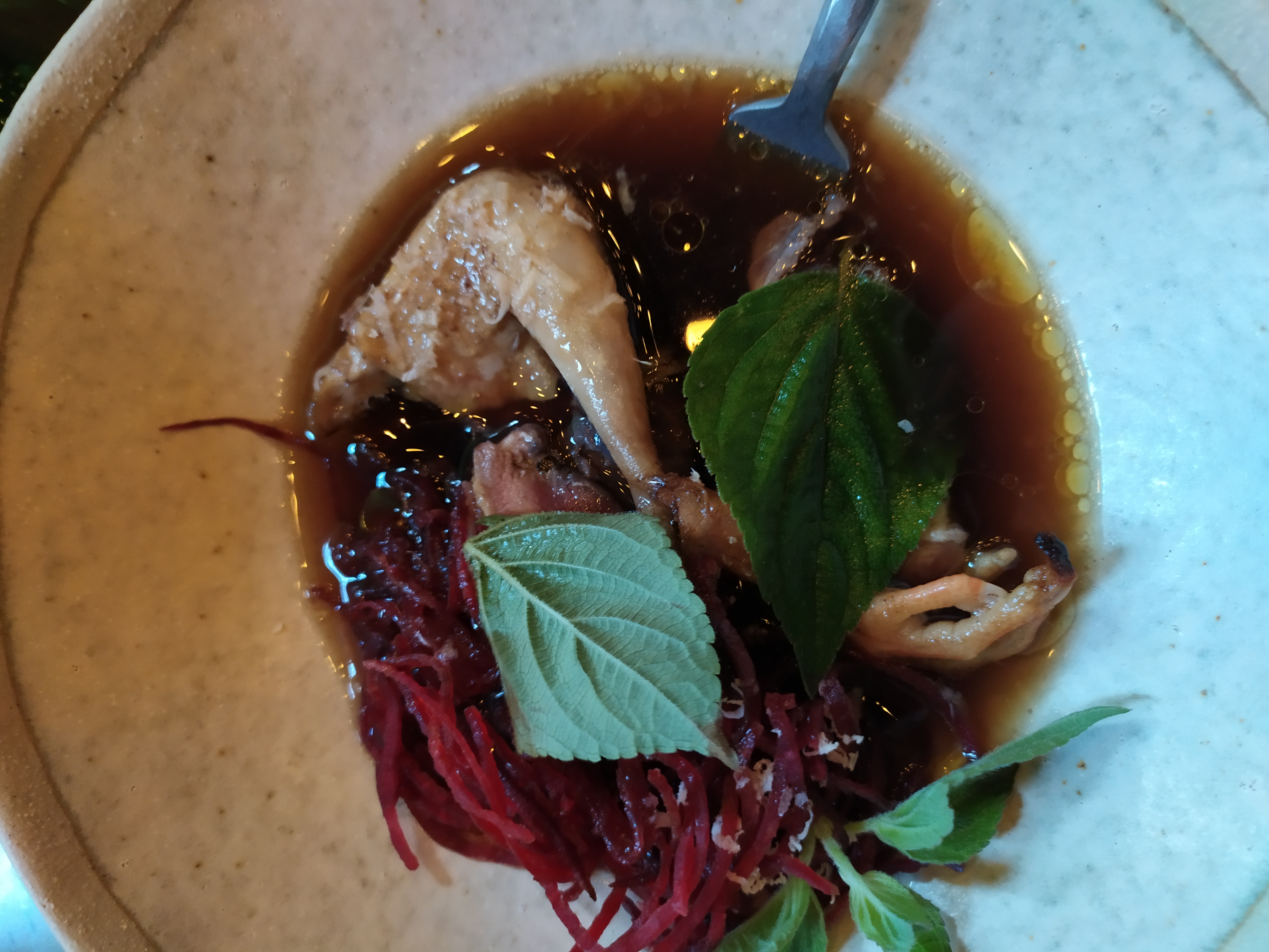 Plats absolument délicieux, boissons (option sans alcool pour nous) très originales, équipe aux petits soins, déco chaleureuse. Seuls petits bémols: musique bruyante et service très très long (nous sommes tombés sur le 1er jour de changement de menu)