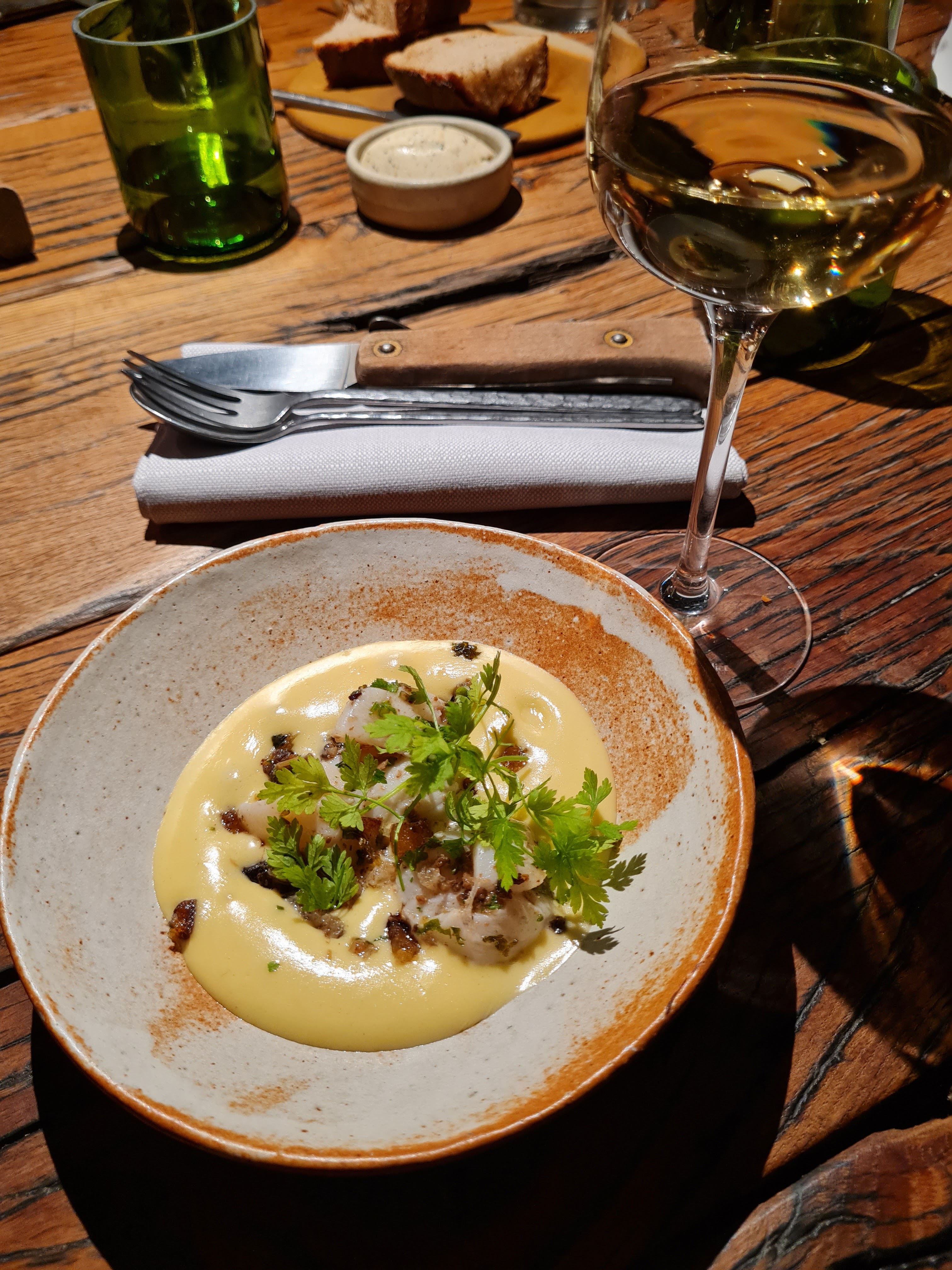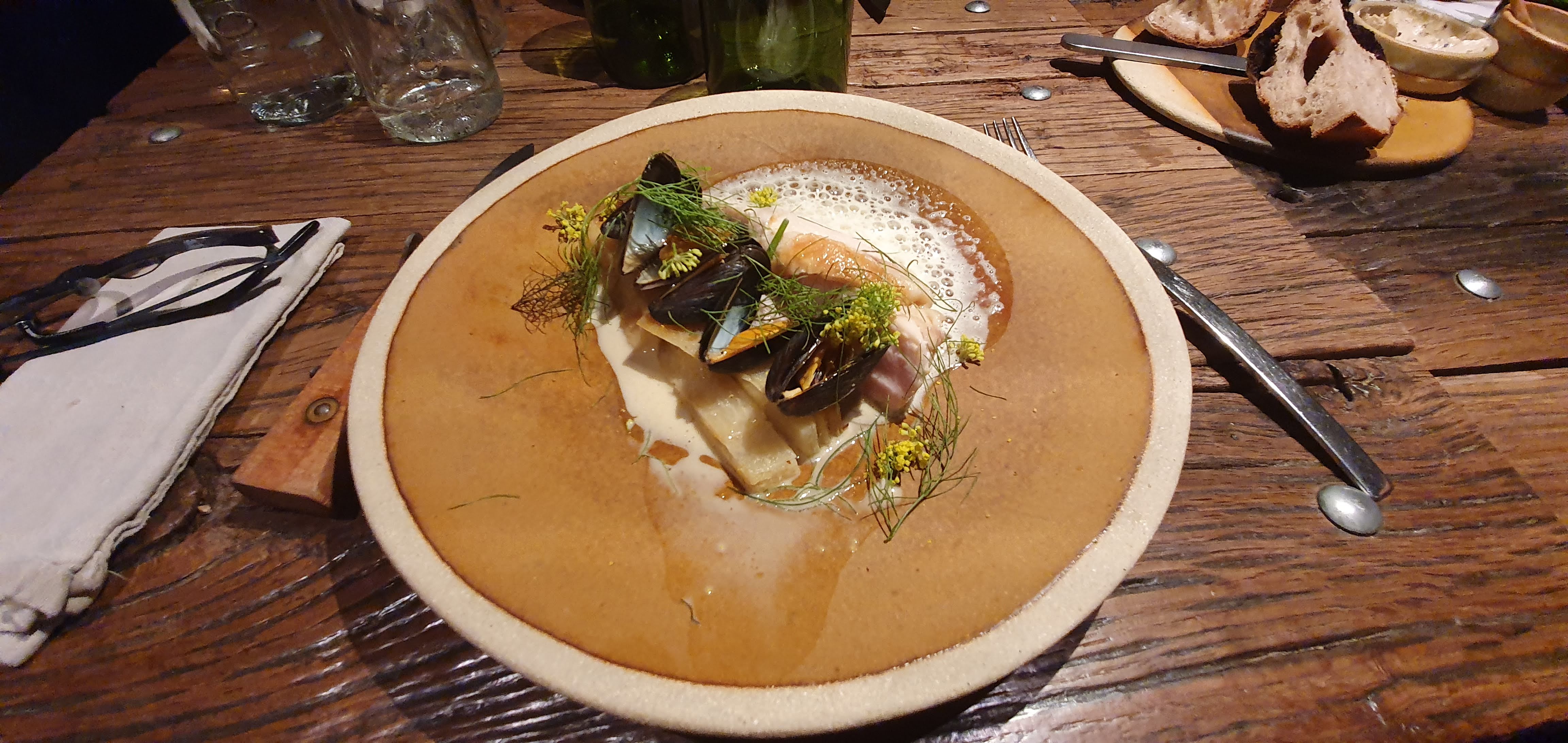 Très bon repas dans un cadre très sympa. Les plats sont originaux et uniquement à base de produits locaux. Seul bémol, la caraffe d’eau payante. Au prix du menu+boisson (90€), c’est un peu mesquin…