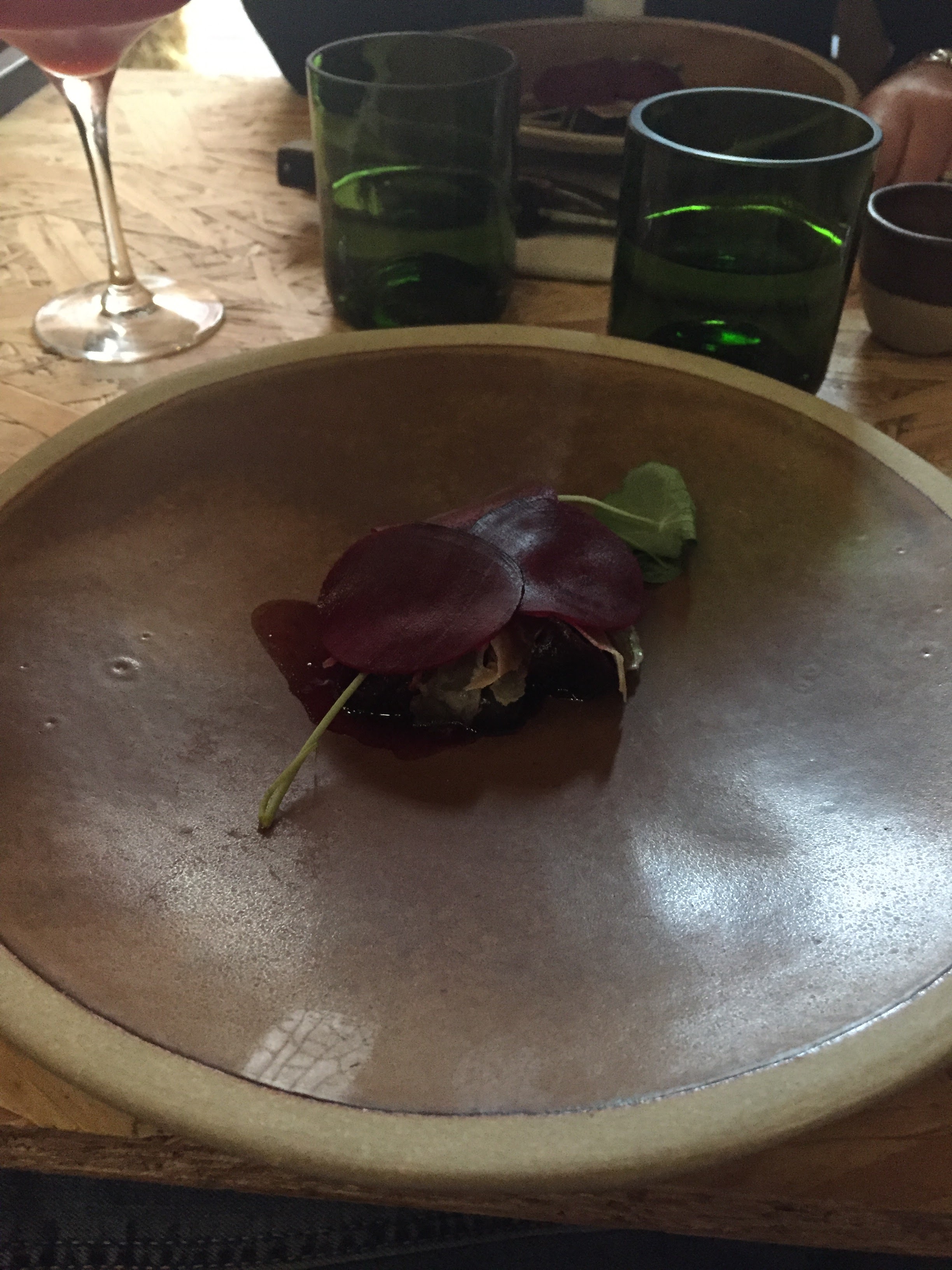 Vous pénétrez dans une petite cour pour y découvrir un lieu mêlant industriel et végétales. Comme pour y montrer que la nature y reprend ses droits. L'atmosphère est cosy. Je ne dévoilerai pas plus sur le repas que je considère comme une véritable expérience gustative. Mais je partage malgré tout quelque photos
