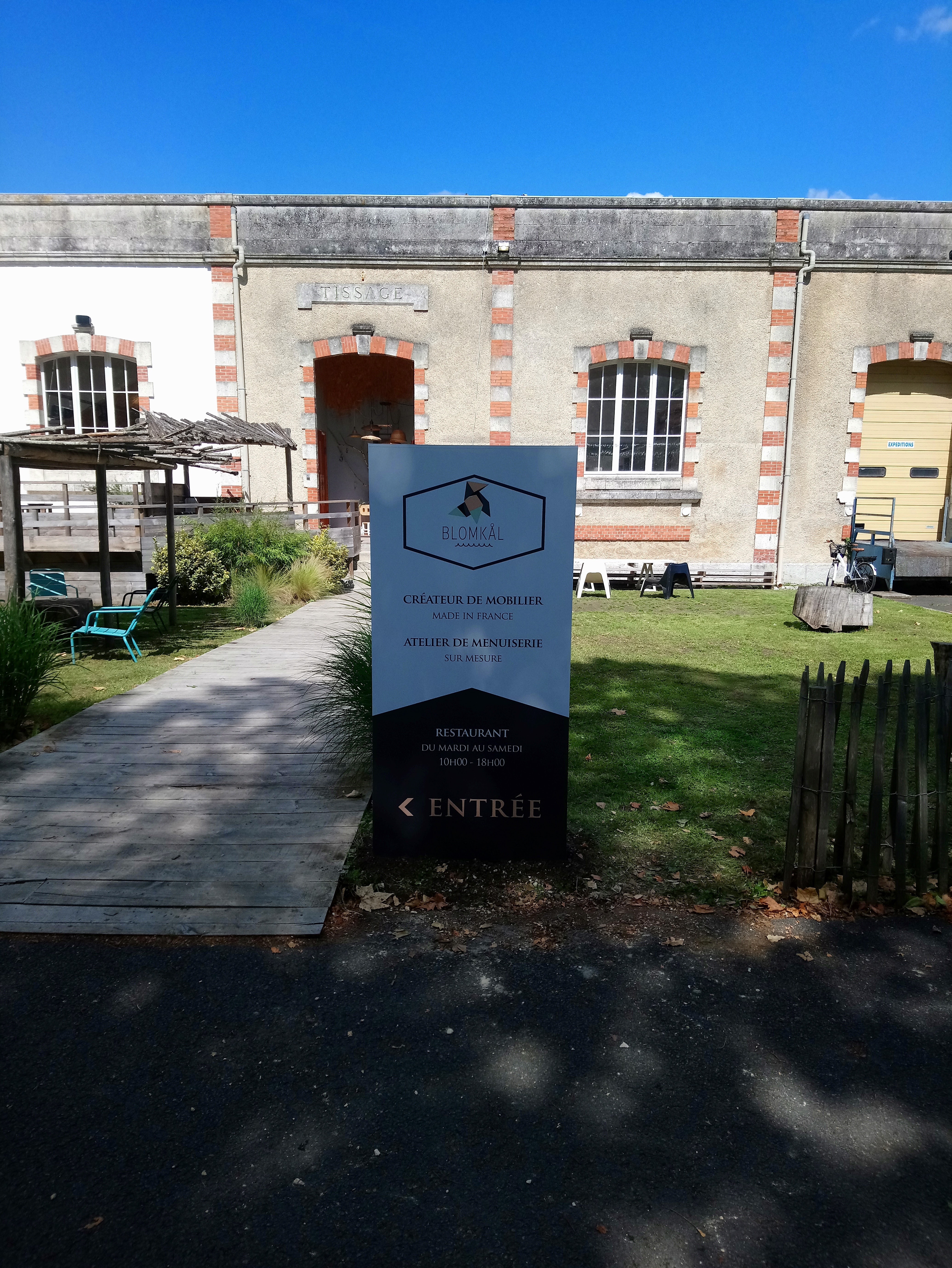 Un lieu atypique, dans une vieille usine de textile en brique, au charme encore présent. L'endroit se divise en plusieurs parties : Un showroom/magasin circulant dans toute la partie visitable aux visiteurs, vous y découvrirez un savoir faire charentais pour la création de meubles de style scandinave, La Cantine de Blomkål, proposant des plats le midi (salades, quiches, ect) d'une réelle fraîcheur, des boissons (alcool également) à sirôter sur la terrasse présente sur la façade du bâtiment, Un atelier en fonctionnement la journée, visible par une baie vitrée située au sein du magasin. Un lieu respirant la beauté et le goût à la française, avec une touche moderne affirmée, où il est très plaisant d'y passer une après-midi ou une fin de journée le long de la Touvre.