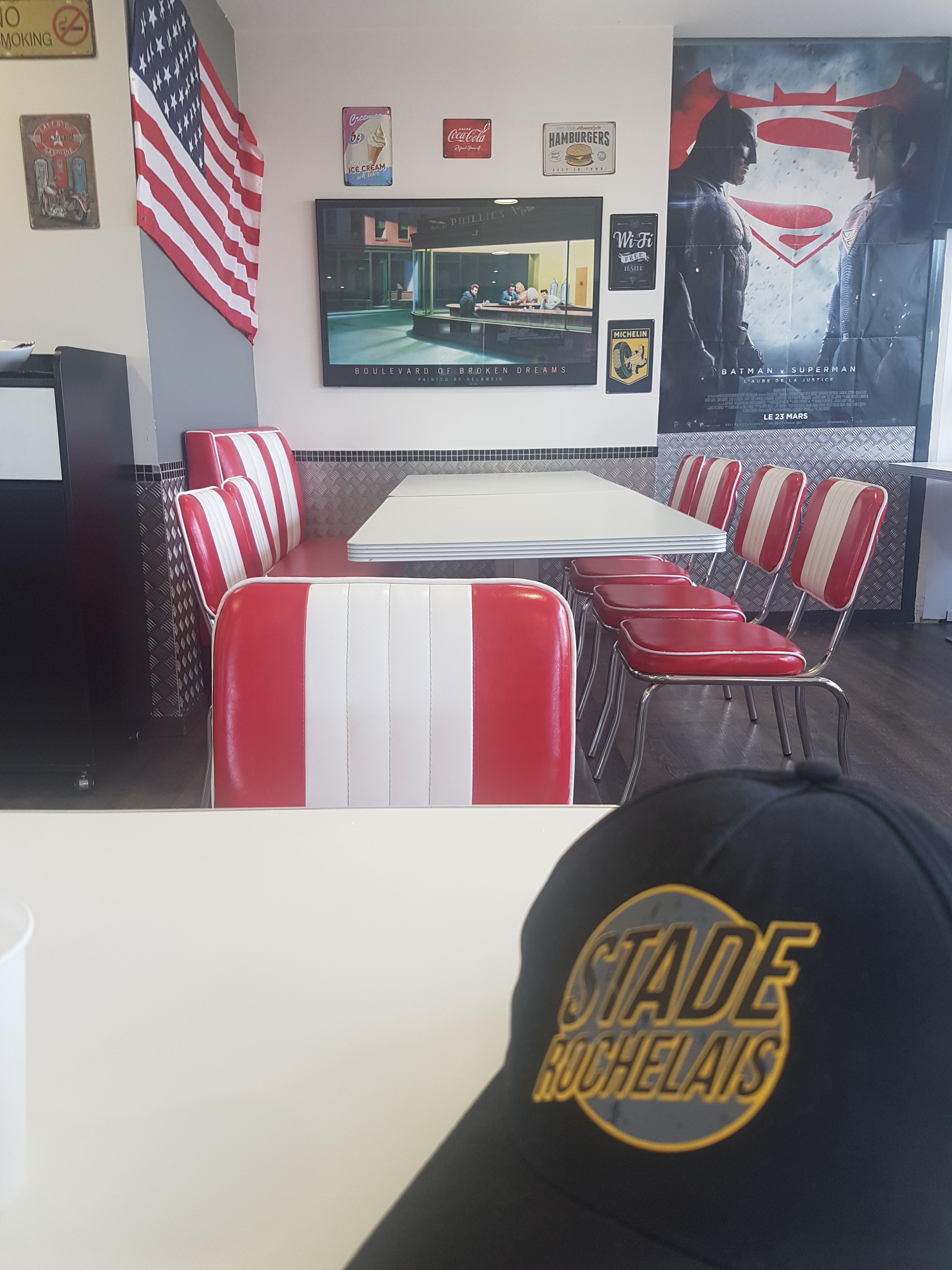 Restauration rapide ,salle intérieur au style 70' 80'.meme avec du monde jusqu'à la porte services ultra rapide !