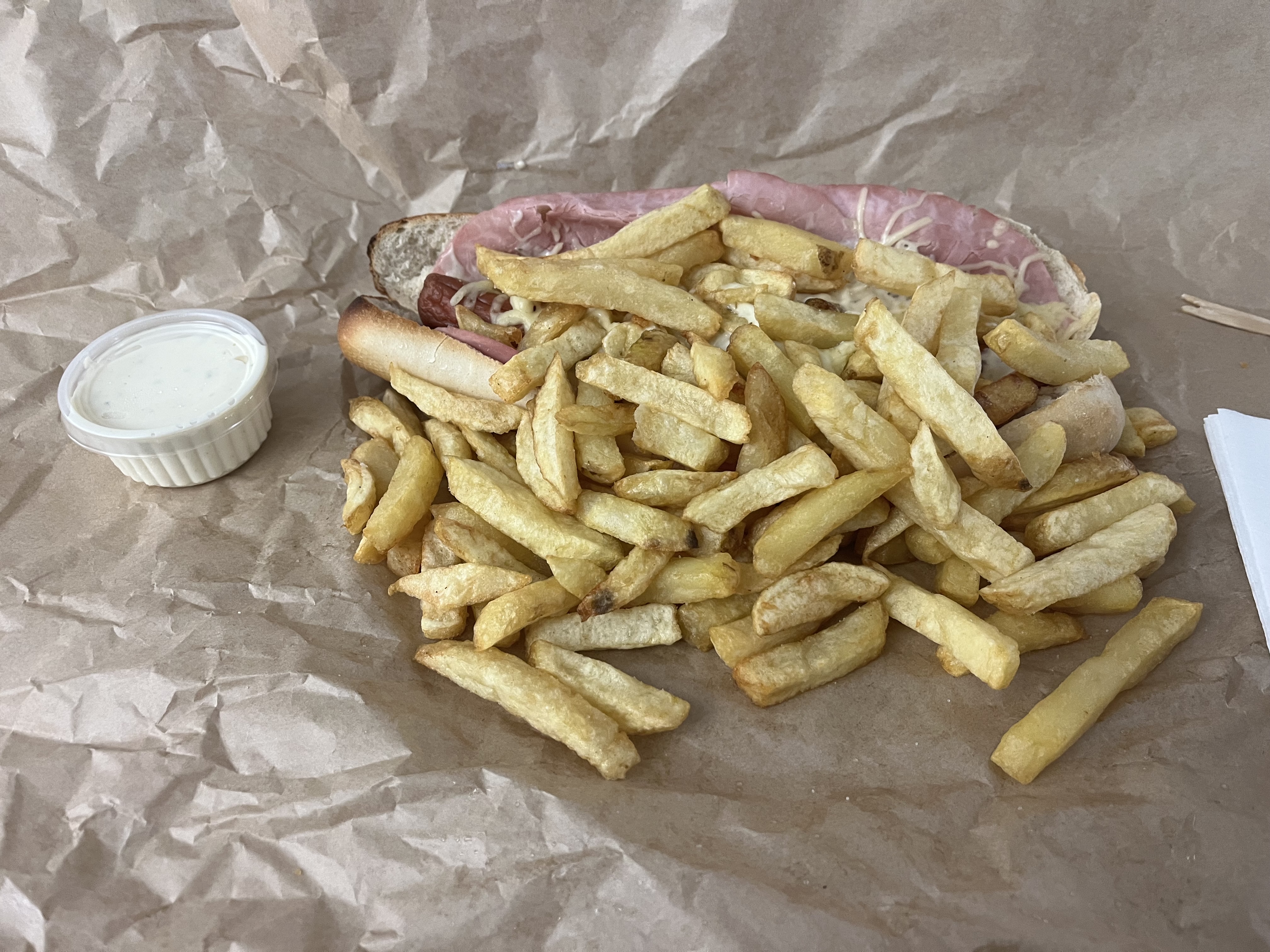 Bonne friterie traditionnelle. Ici le jambonneau (c'est pas léger ... Mais c'est bon !)