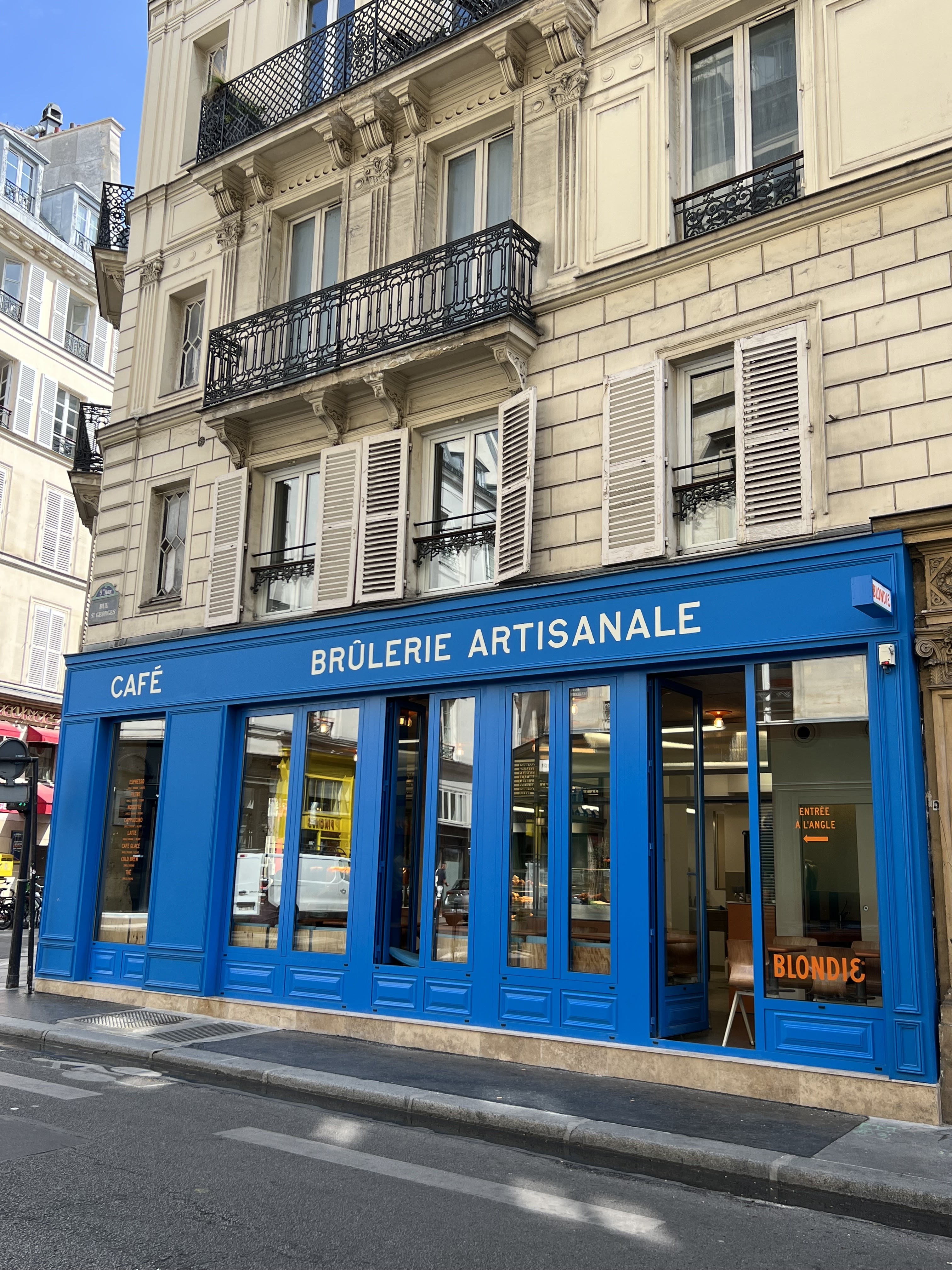 De passage à Paris, j’ai flashé sur une belle devanture bleue en déambulant un matin dans le 9e arrondissement. Et je n’ai pas été déçue, café incroyable, pâtisseries et sandwichs délicieux. L’accueil extra dans un lieu lumineux et coloré. Je reviendrai !