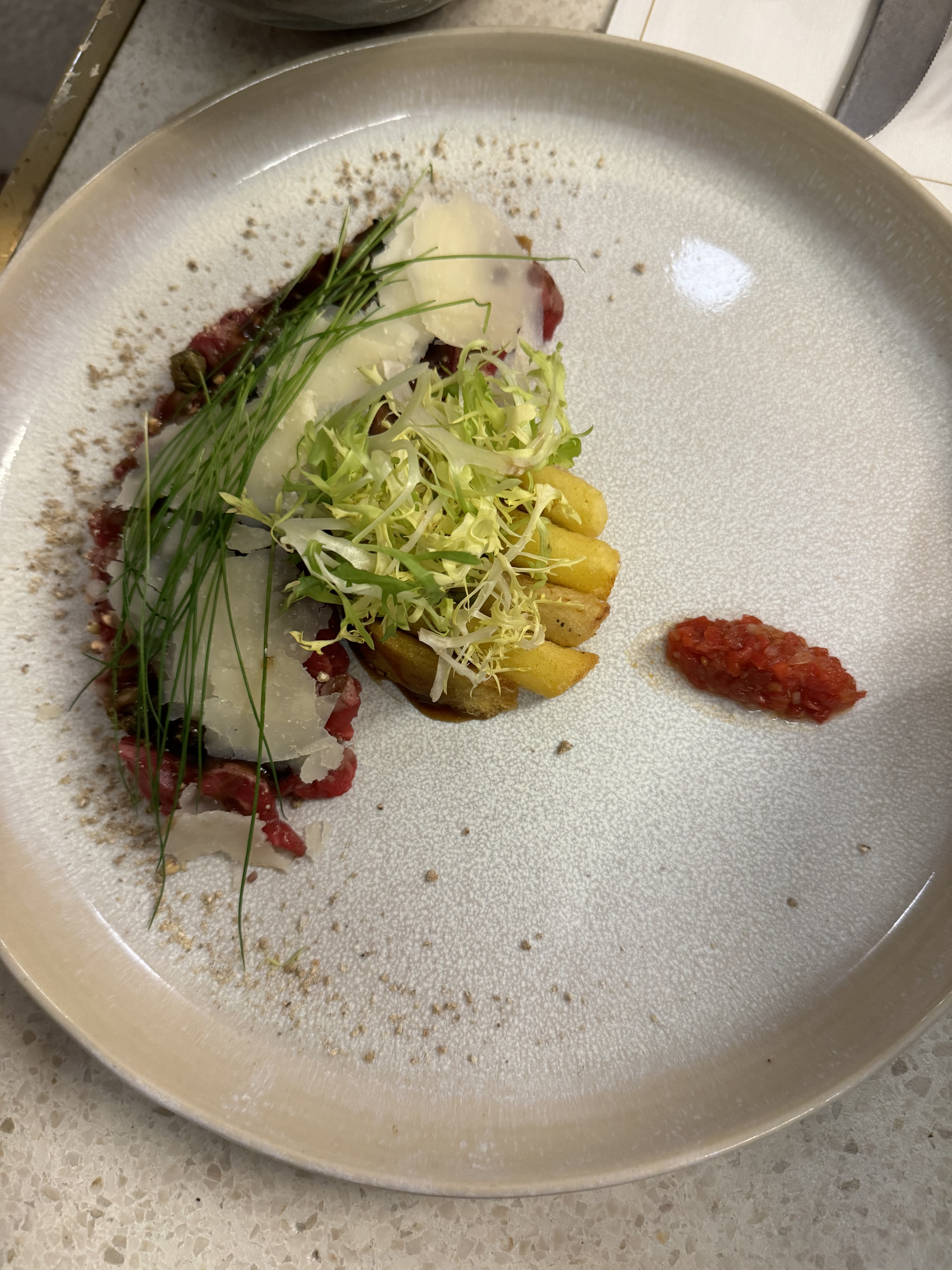Si la qualité du service était au niveau de la qualité de la cuisine et du bar, ce lieu serait incroyable. Malheureusement ce n’est pas le cas. Service long, très long, trop long. 3h pour 1 tapas 1 plat lors d’un dîner à 2. Nous avons abandonné l’idée du dessert de peur de rester 1h de plus. Dommage car les assiettes sont aussi belles que bonnes mais encore faut-il qu’elles arrivent à votre table…
