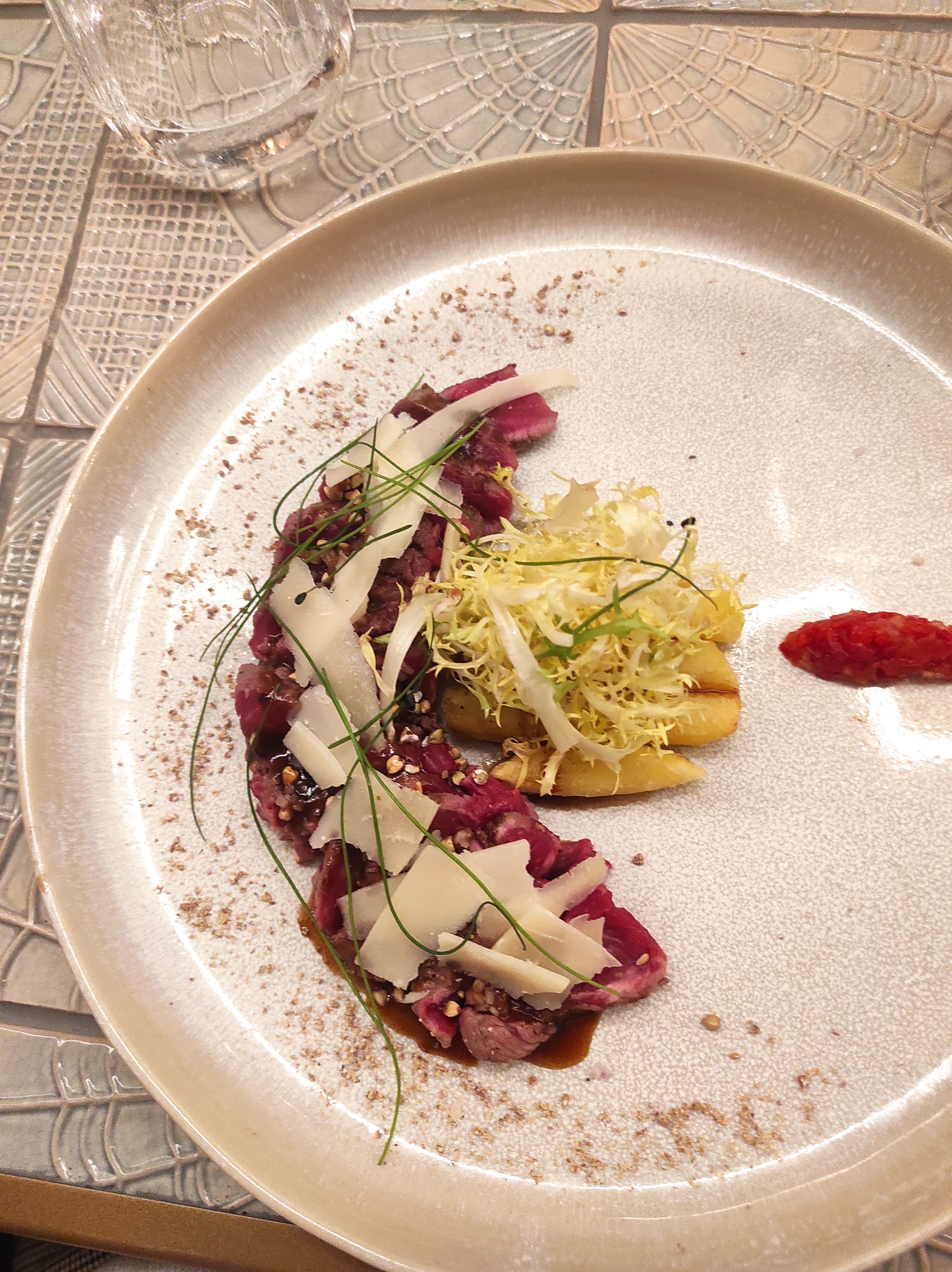 Je vous conseil,un cadre très beau,le service est les serveurs irréprochable,un choix à là carte juste ce qu'il faut pour une qualité des plats très bonne, vous passez une soirée en famille où entre amis au calme dans un très beau restaurant mon conseil tout les plats,moi personnellement je goûte,joue de boeuf, caviar d'aubergine, le tataki de boeuf et risotto girolles truffe délicieux à bientôt