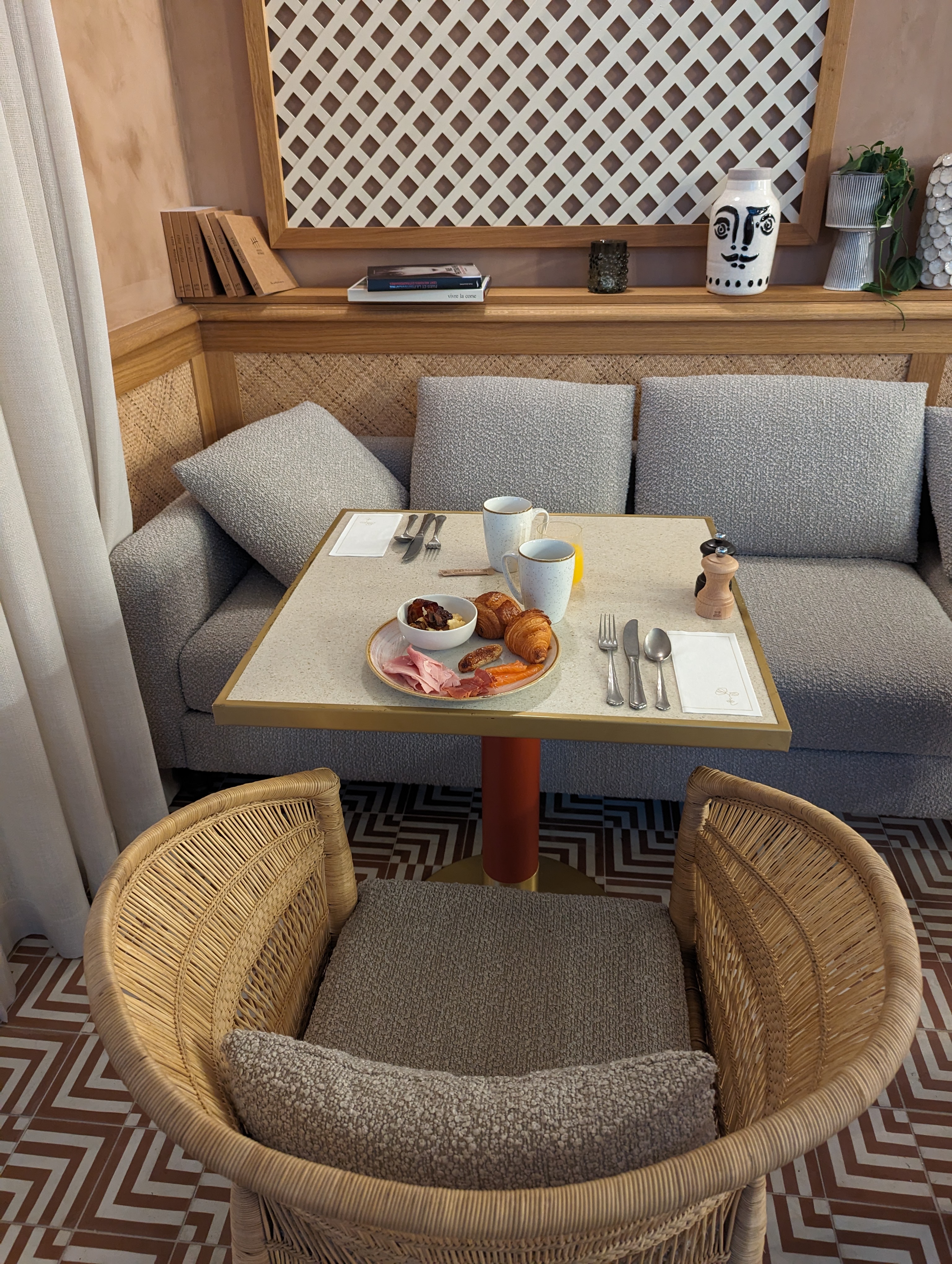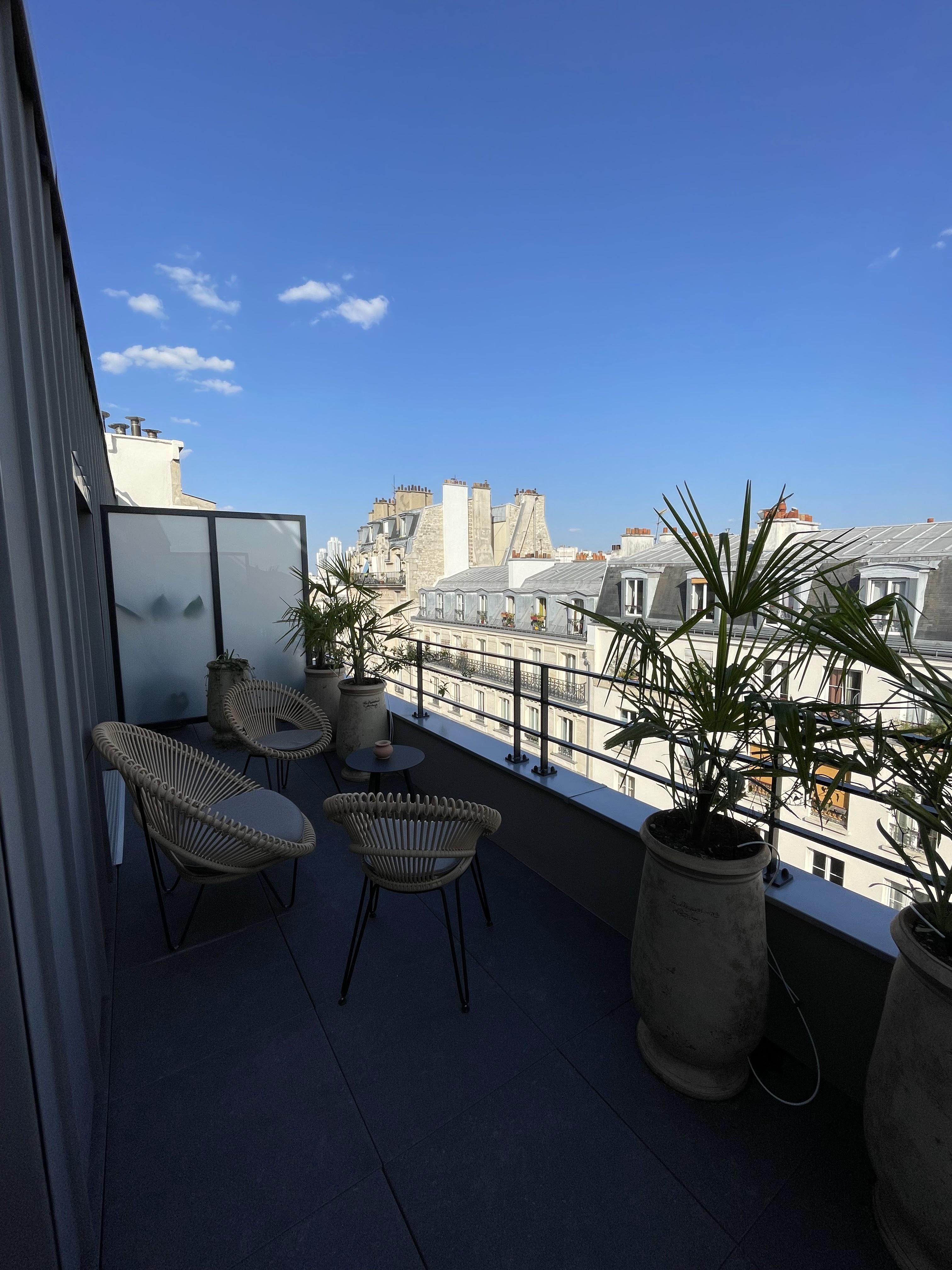 Découverte de ce magnifique hôtel, aux inspirations méditerranéennes, une parenthèse inattendue en plein Paris. Ambiance chaleureuse invitant à la détente avec un espace piscine et spa très agréable. La chambre est tout aussi belle, avec une superbe terrasse avec vue sur les toits de Paris. Et pour terminer le séjour en beauté, un super petit déjeuner pris dans le patio. Je recommande pour un séjour parisien.