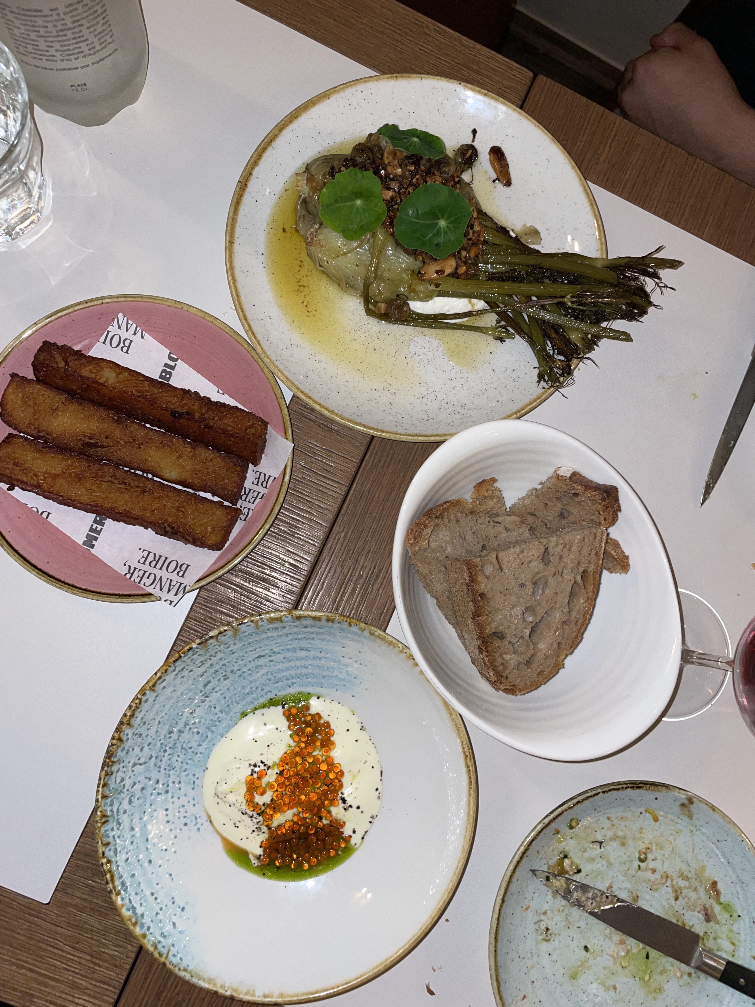 Pleins de magnifiques petits plats à partager avec des classiques superbement revisités (burata abricot, arancini, cervelle de canuts, etc). Des produits sourcés, une très belle carte de boissons, un service très attentionné et un lieu très sympa font que bloomer est une magnifique expérience. On peut difficilement faire mieux...