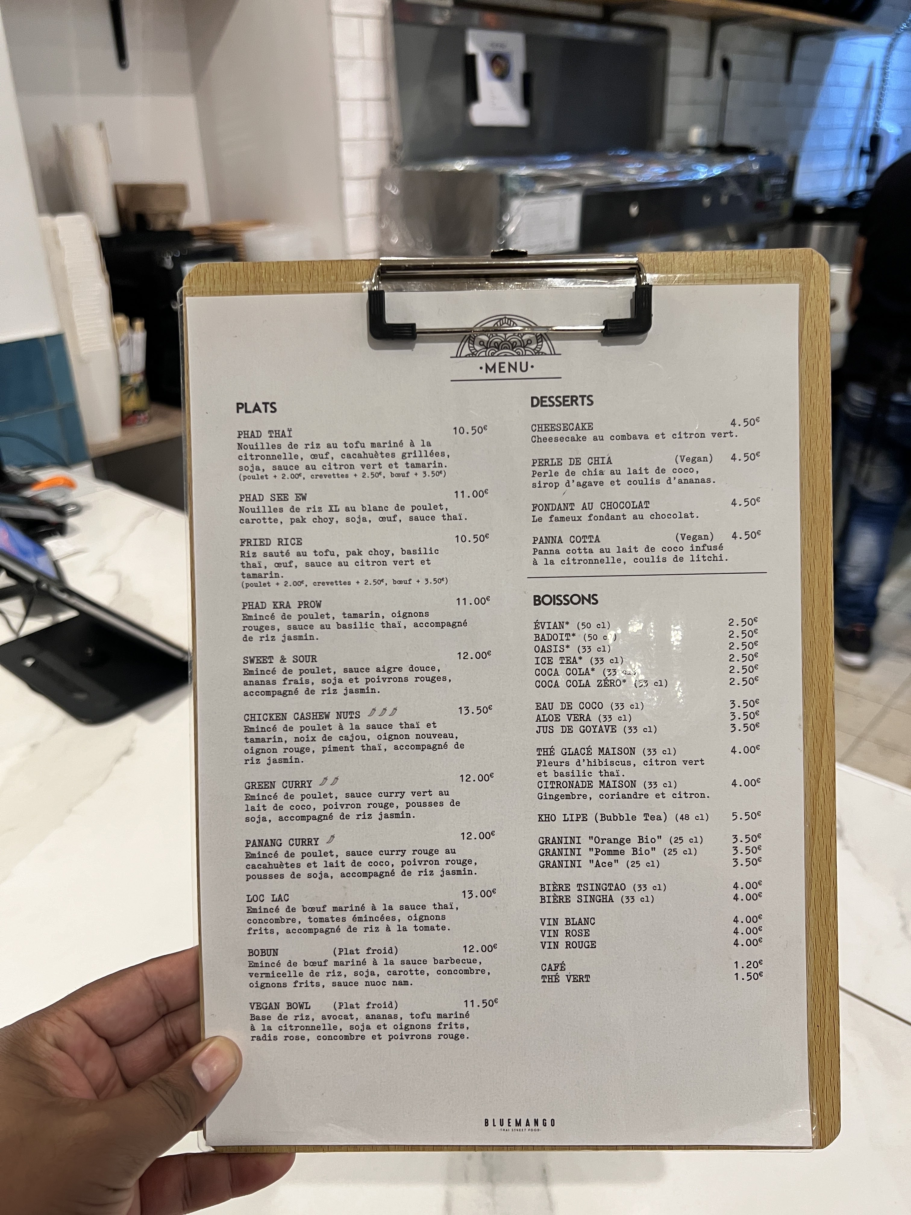 J'ai tout d'abord été séduit par la décoration du lieu. Puis, j'ai décidé de franchir les portes du Blue Mango afin de tester leur carte un midi. Quelle agréable surprise ! j'ai pris le Loc Lac et le cheese cake qui étaient délicieux! Equipe souriante et pro ! Je reviendrai avec plaisir :)