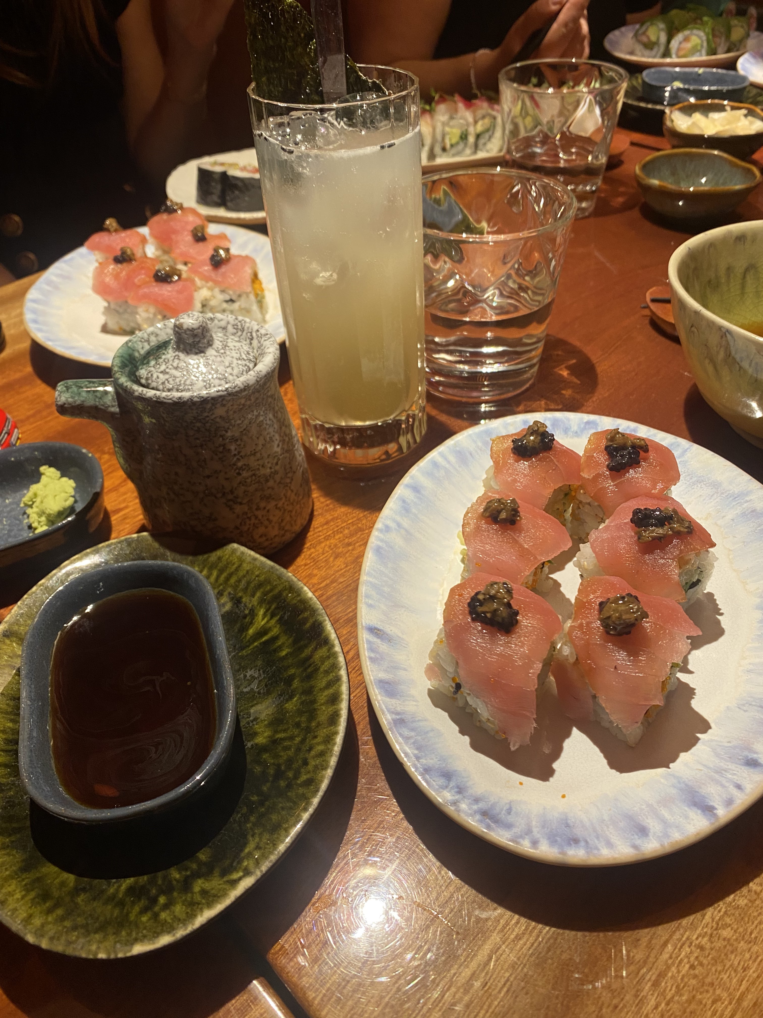 Superbe cadre, des makis très recherchés et de haute qualité. Les cocktails quant à eux sont tout aussi recherchés. En photo le Hong Kong Spritz, que je recommande aux amateurs de cocktails épicés (ici: piment et gingembre) !