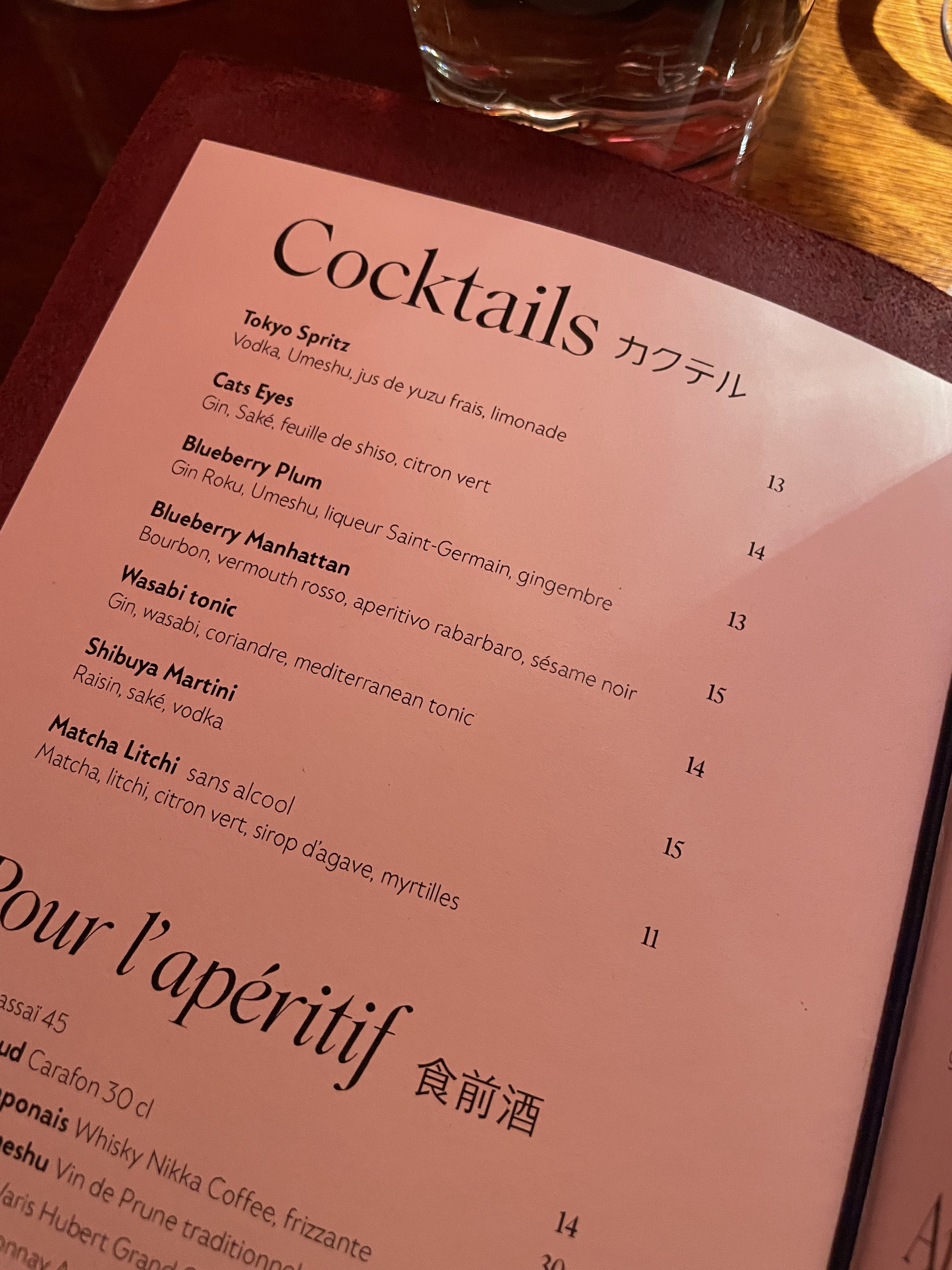 J'ai beaucoup aimé cette expérience. Les makis sont très bon, leur cocktail également (bien dosés, ni trop sucrésni trop chargés). Nous avons passé un très très bon moment. Les serveurs ont le sourire et le sens du service. Le service est rapide ,comptez 2 /5 mn après votre commande. En bref, un accueil très agréable et nous nous sommes régalés. J'ai adoré les mochi glacés, subtils et goûtus, merci beaucoup ! Au total pour deux avec cocktails : 98€, nous nous sommes vraiment fait plaisirs et ça valait le coup