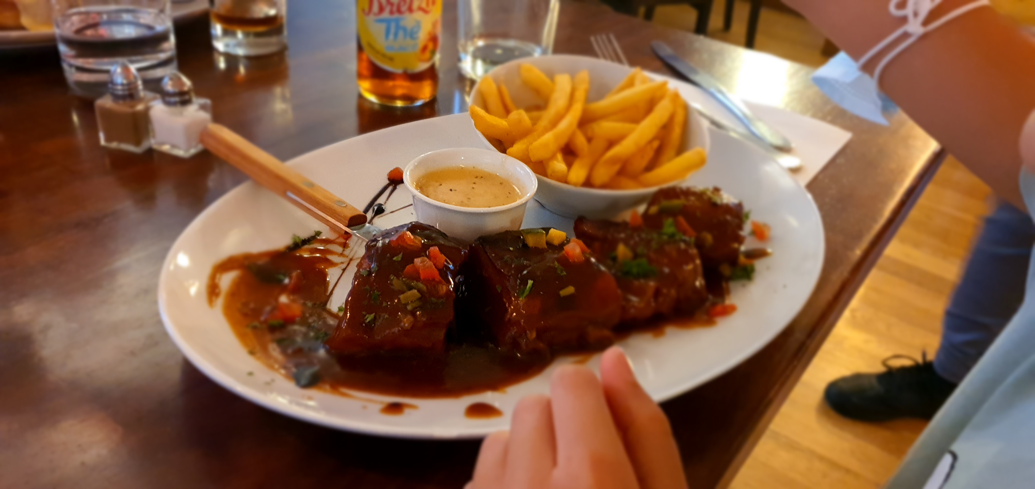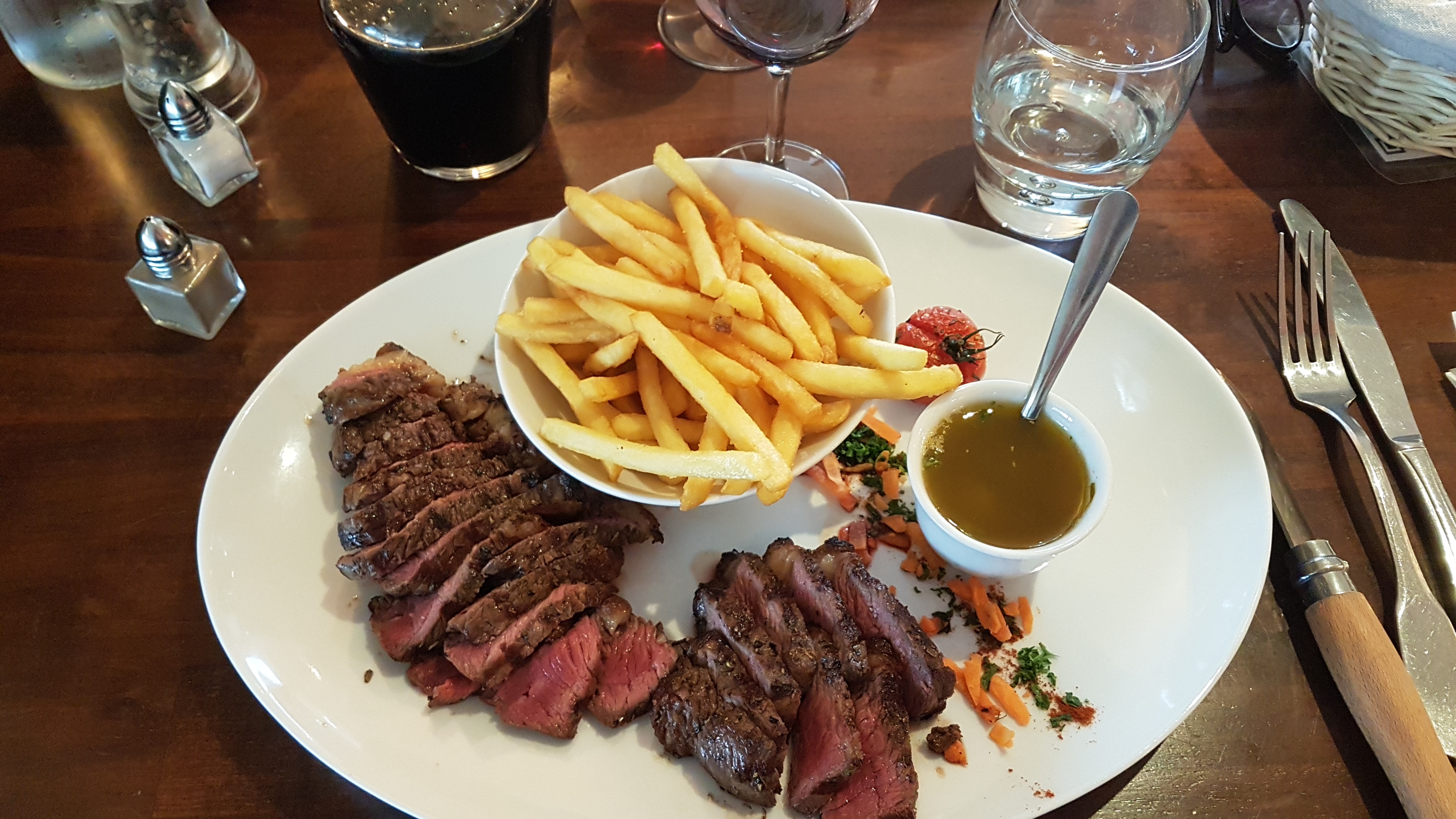 Bonne viande, mais trois euros la très petite timbale de salade verte, ça me reste en travers, d'autant que la portion de frites n'est pas extravagante !