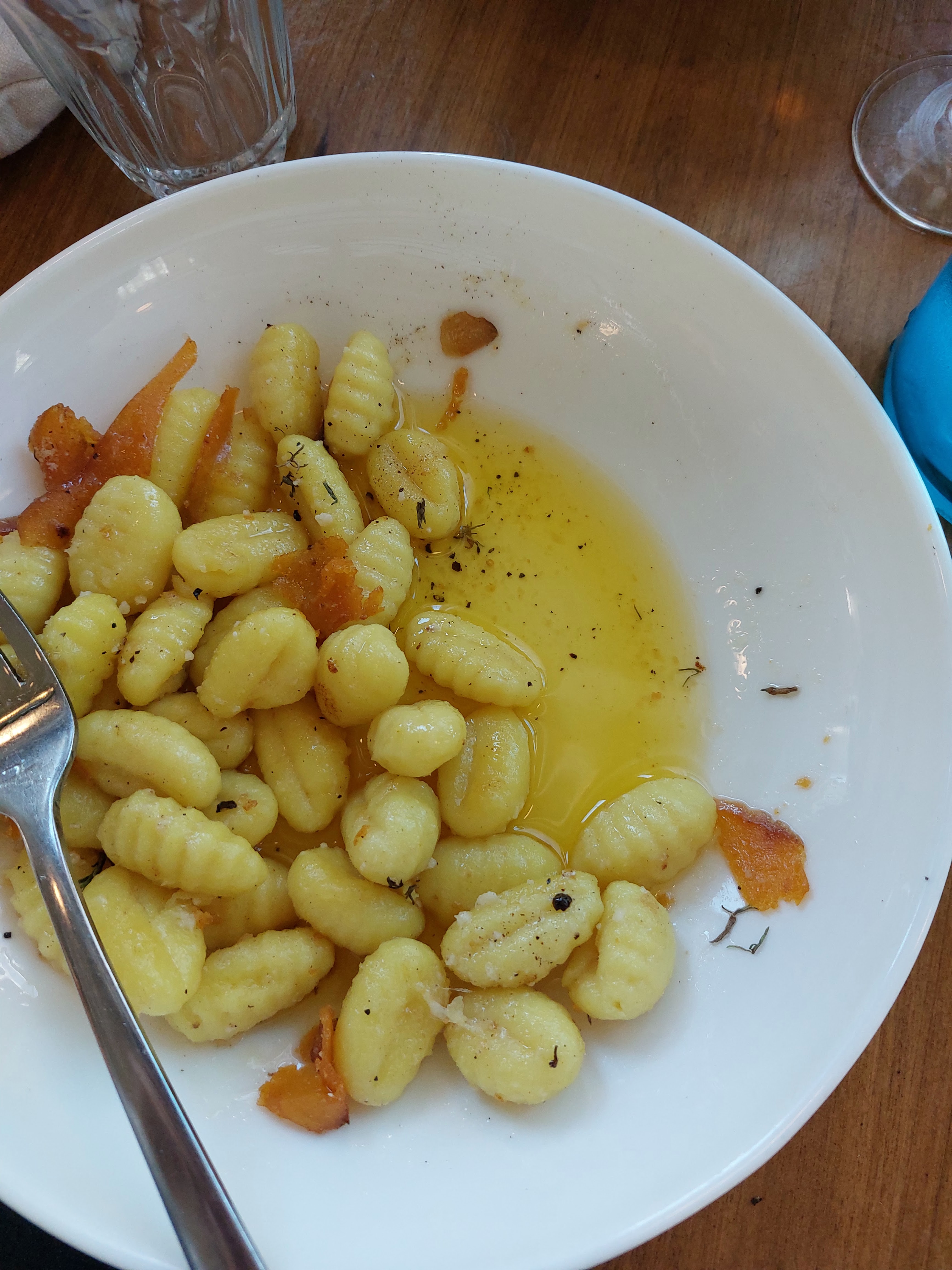 J'ai était choqué par l'attitude du serveur, ya pas à être autant agressif enfaite, seulement après 3 mois d'ouverture même pas, vous donnez franchement une mauvaise image, et agressif envers ses collègues en publiques ya rien de plus destable. Je signale au serveur que le plat de gnocchi était trop huileux et immangeable, il me dit que j'aurai du demander plus tôt pour avoir un autre plat. Je voulais juste signaler que le plat était mauvais c'est tout, pour que les cuisiniers puissent s'améliorer. Vraiment je suis choqué j'ai était traité comme un chien, ce travail n'est pas fait pour tout le monde, et mon plat infecte pour 16 euro c'est une honte.