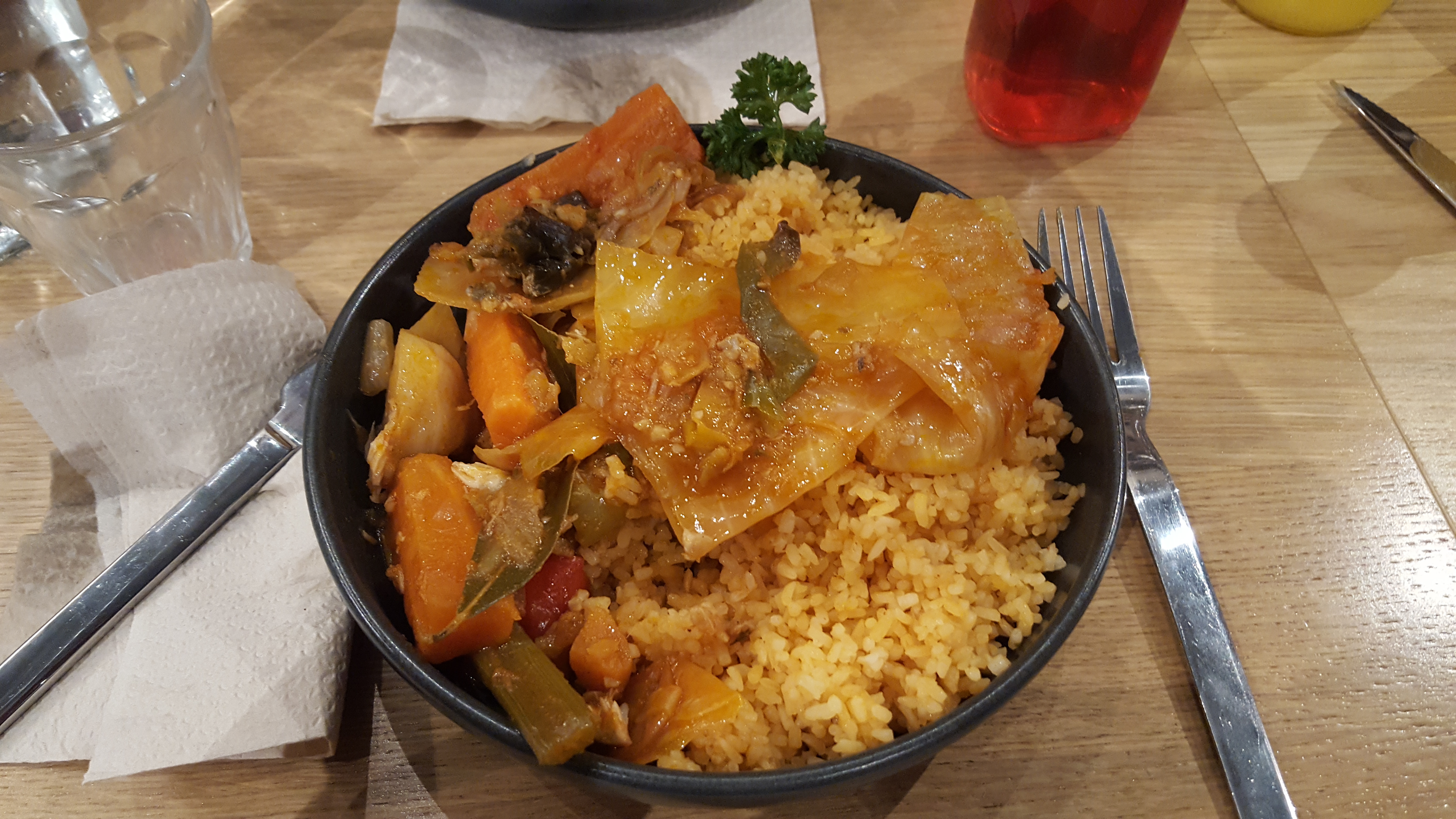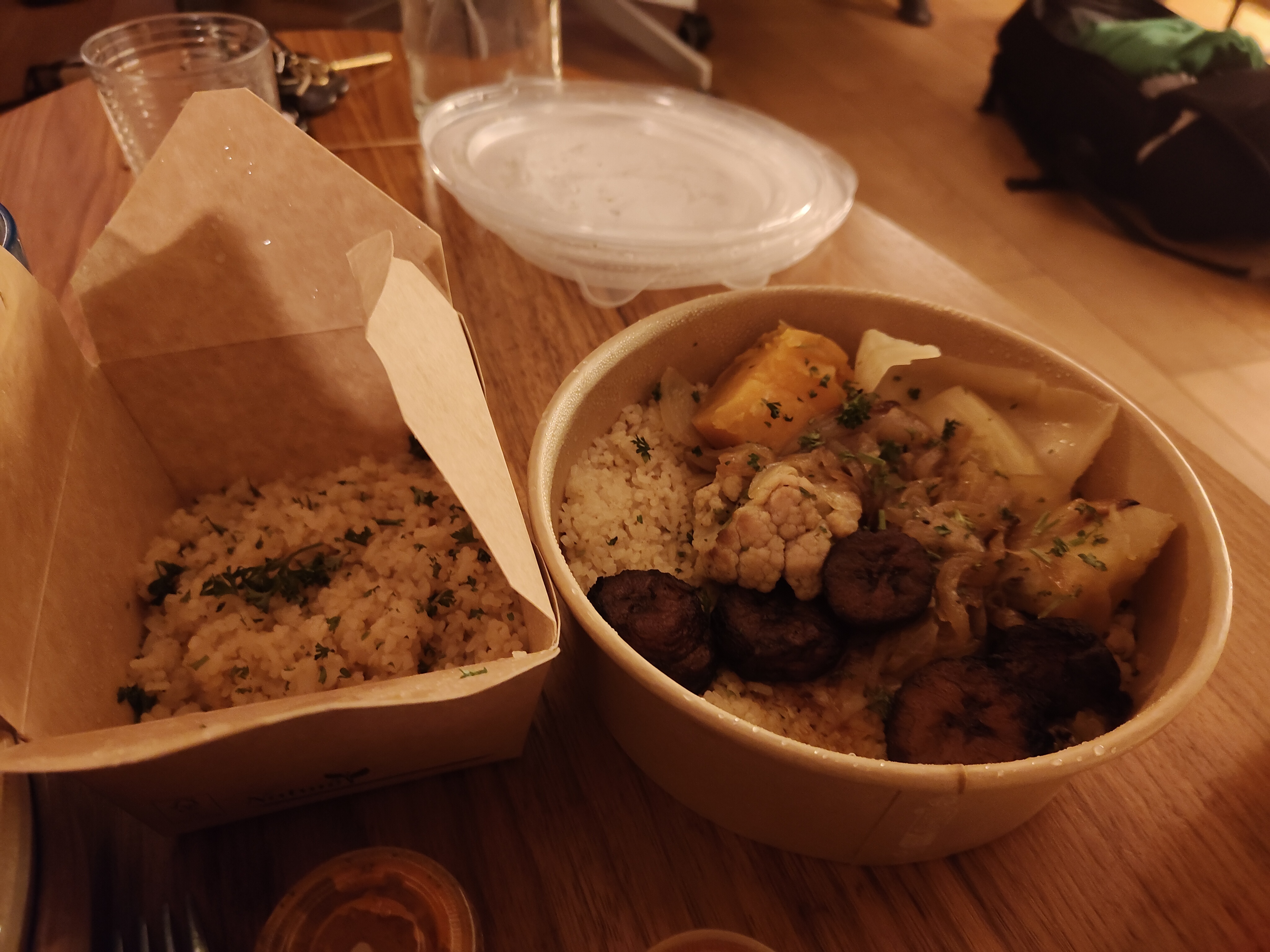 On s'est fait livrer à la maison, pour découvrir la cuisine africaine, on a pris que des plats 100% végétales. Une découverte sympa, même si c'était que la marinade du céréale qui changé, les légumes toujours les mêmes. C'était sympa