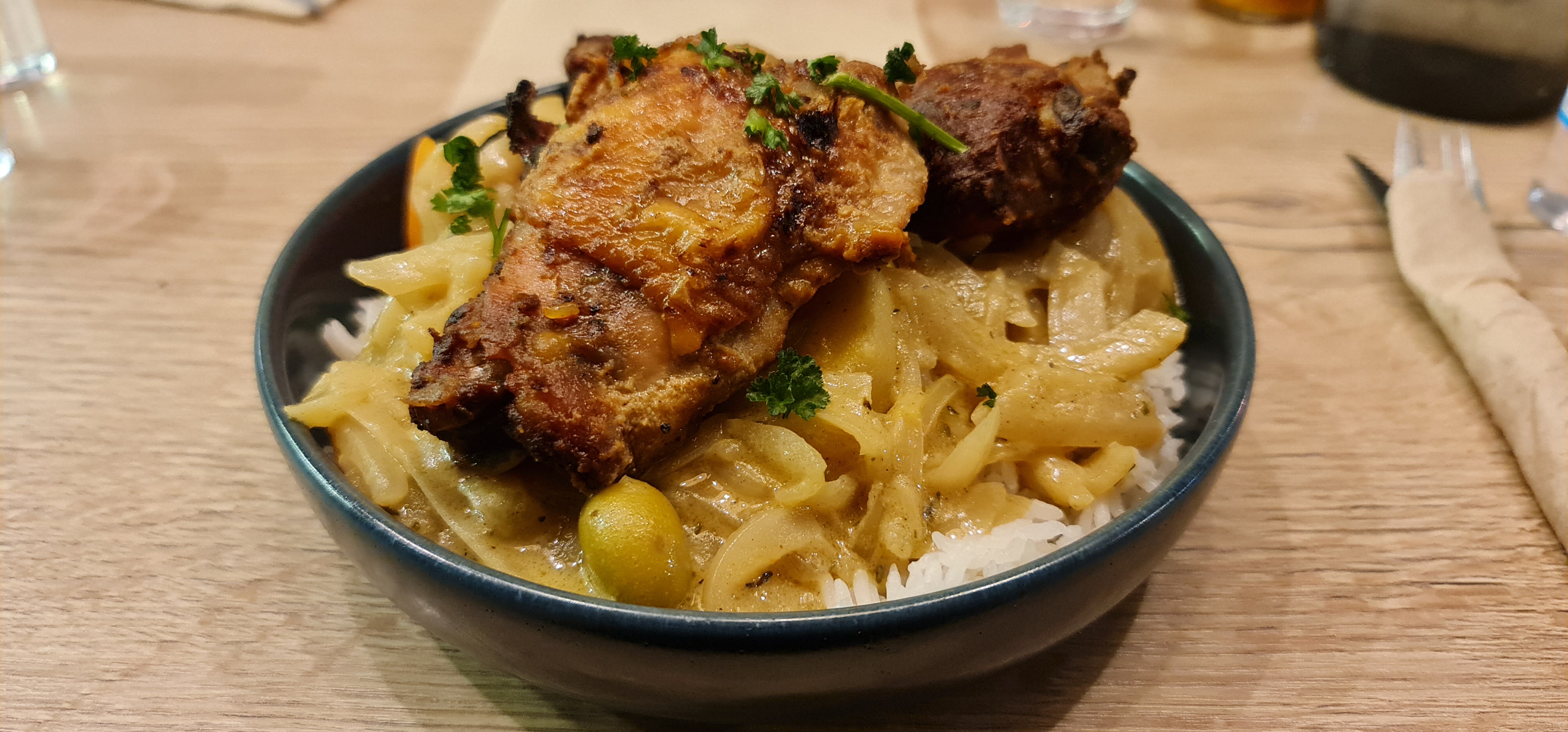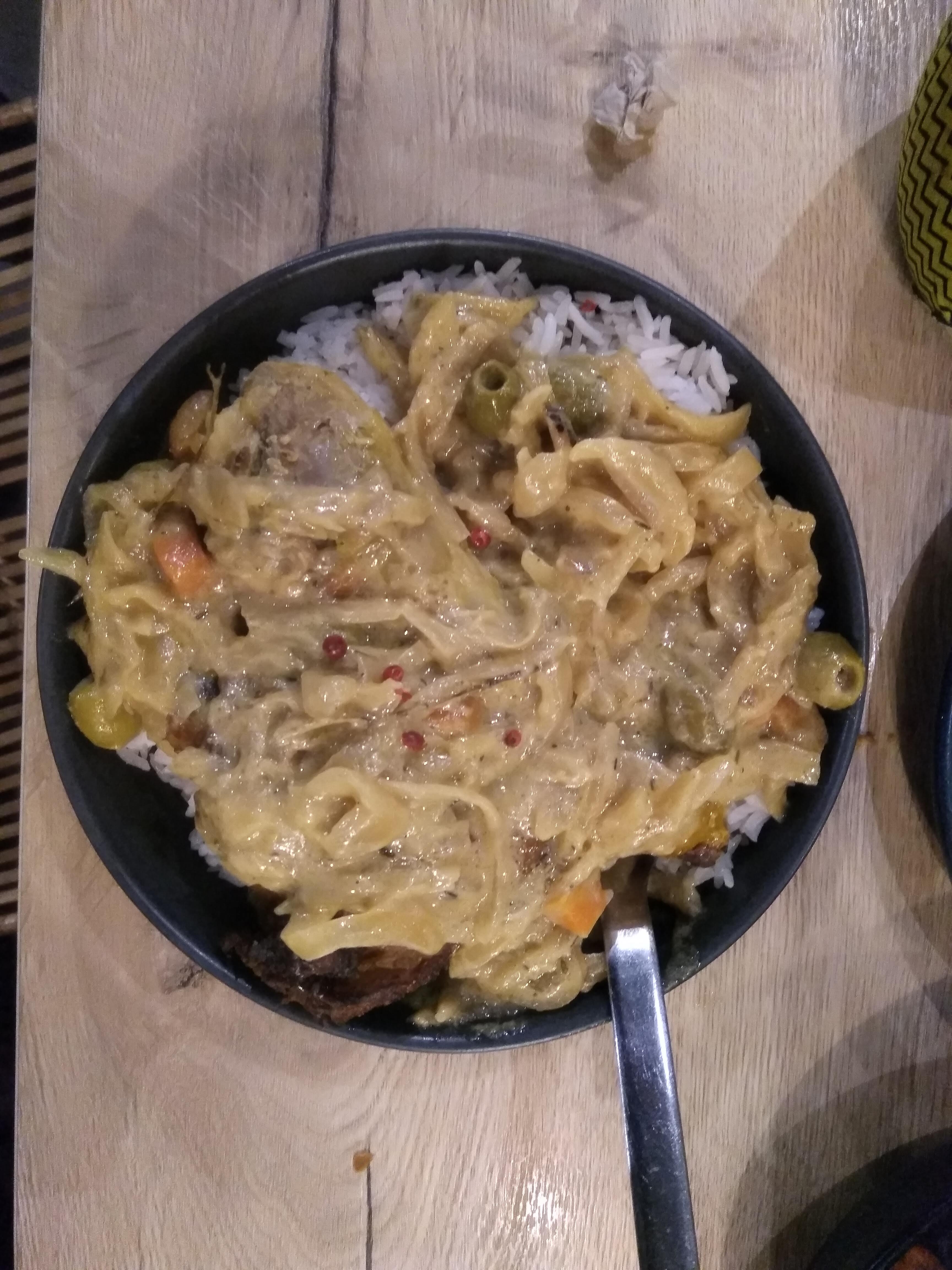 Un Poulet Yassa savoureux et généreux ! Pour un rapport qualité prix bon (15€ le poulet yassa)
