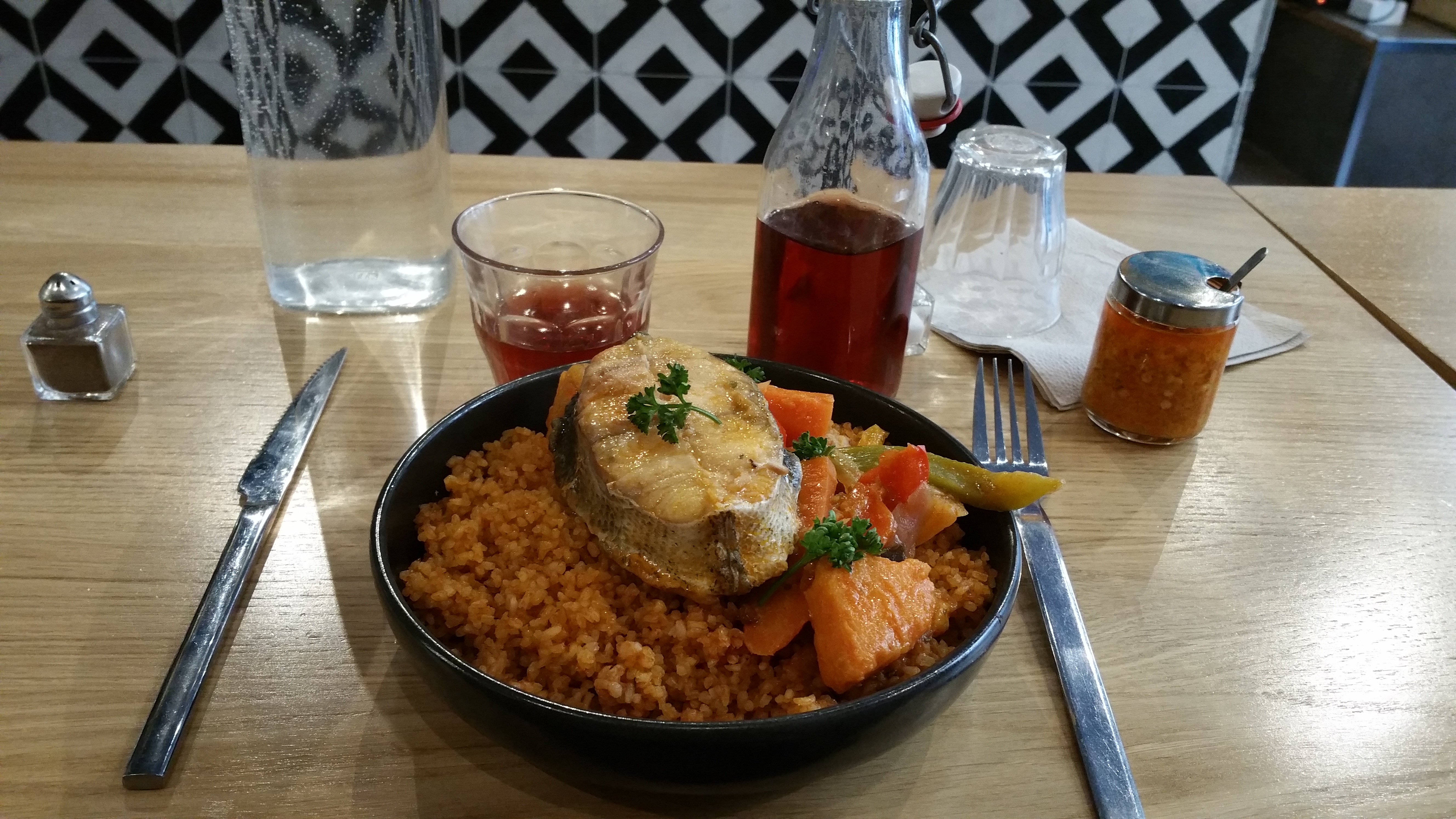 Le bon goût de la cuisine africaine. Le jus gingembre/orange est très bon même si je préfère le bissap.