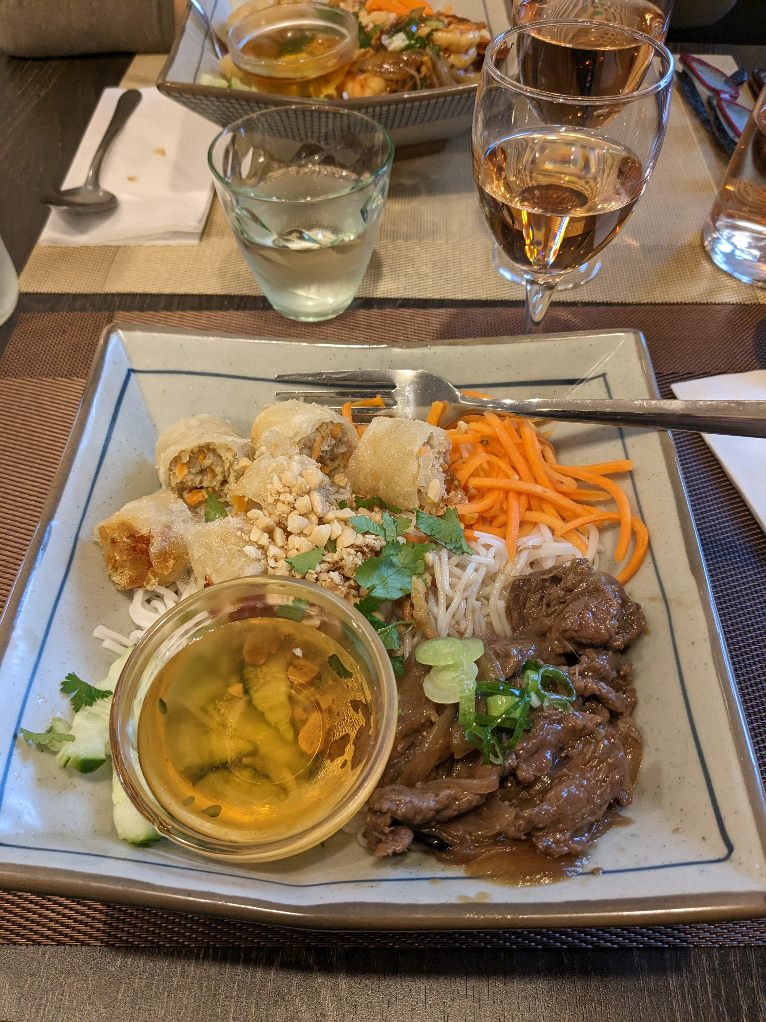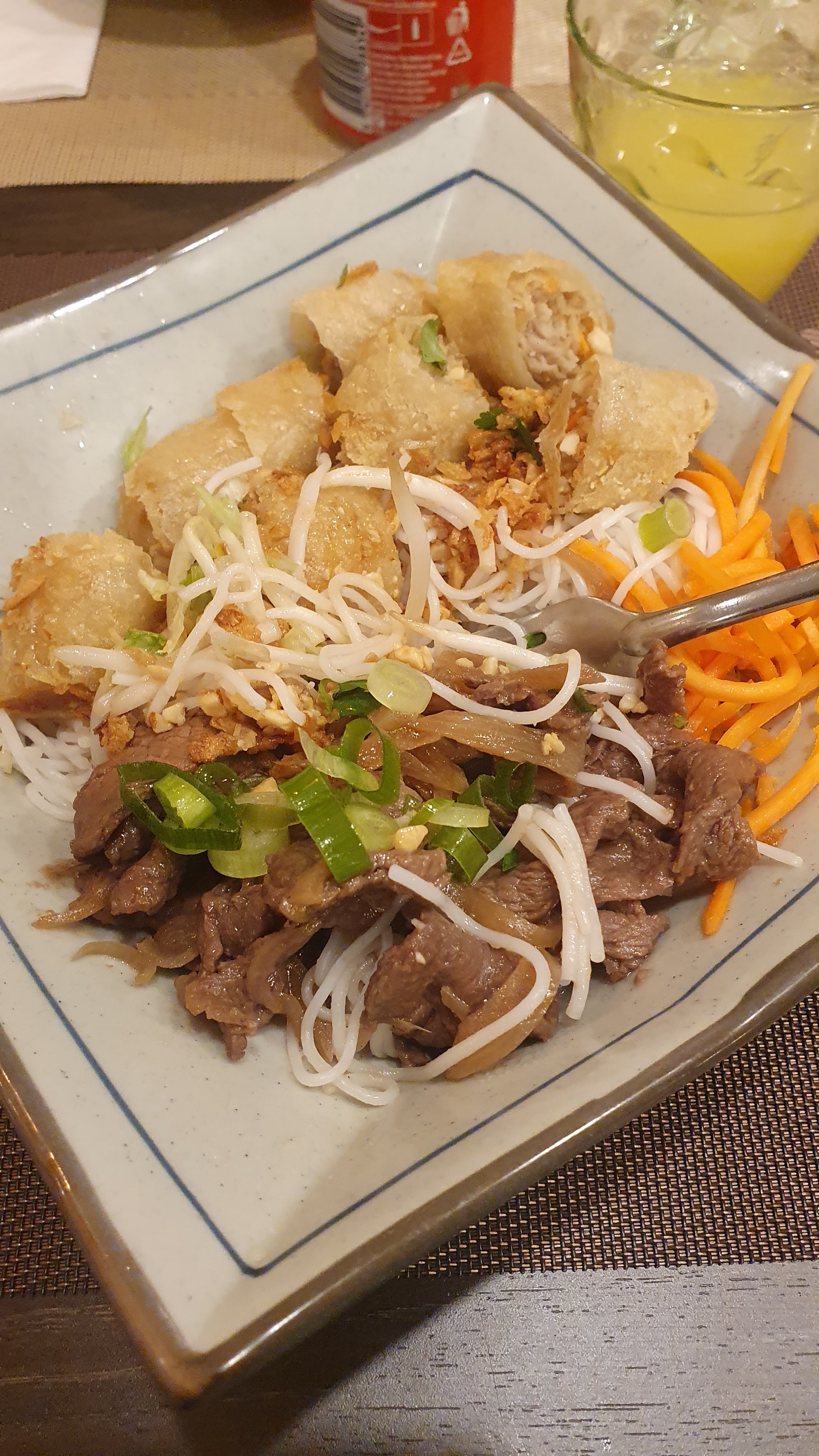 Excellent bo bun boeuf un des meilleurs que j’ai pus mangé un plat très léger mais qui rassasie bien a la fois je recommande fortement.
