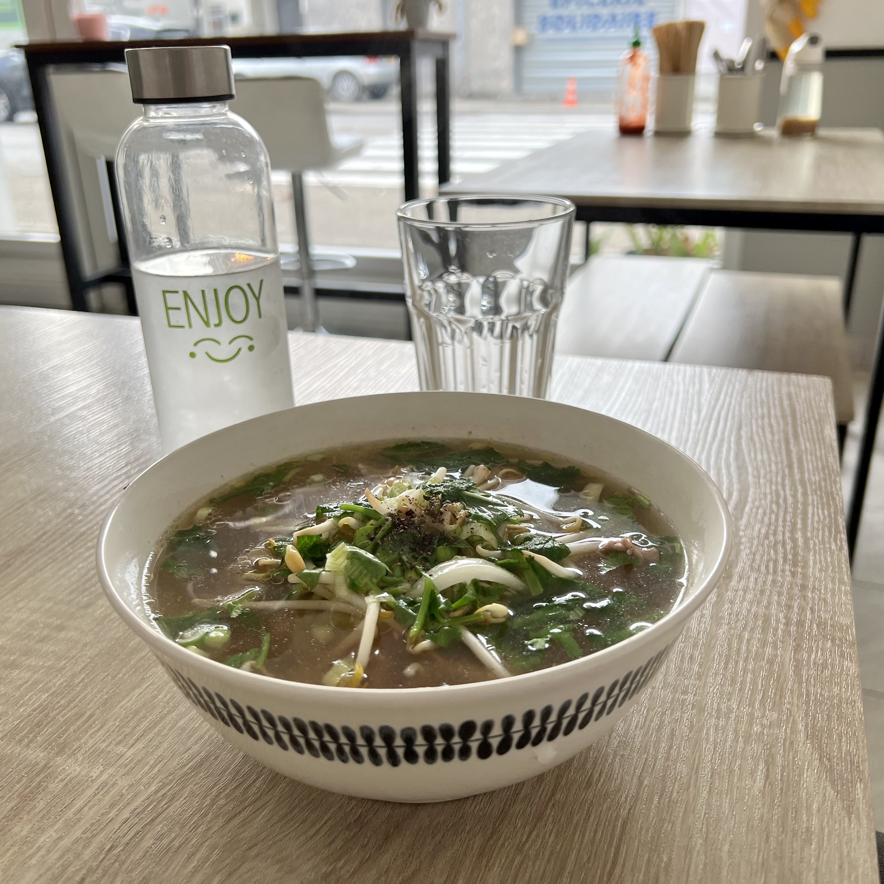 Restaurant sympathique mais il vaut mieux prendre à emporter car il n'y a que trois tables dans le restaurant.. concernant la cuisine, c'était plutôt bon, j'ai pris des raviolis en entrée et une soupe pho en plat ! Plutôt bonne! La portion était correcte. Seul petit bémol je trouve un peu cher la petite bouteille d'eau à 2 € 50