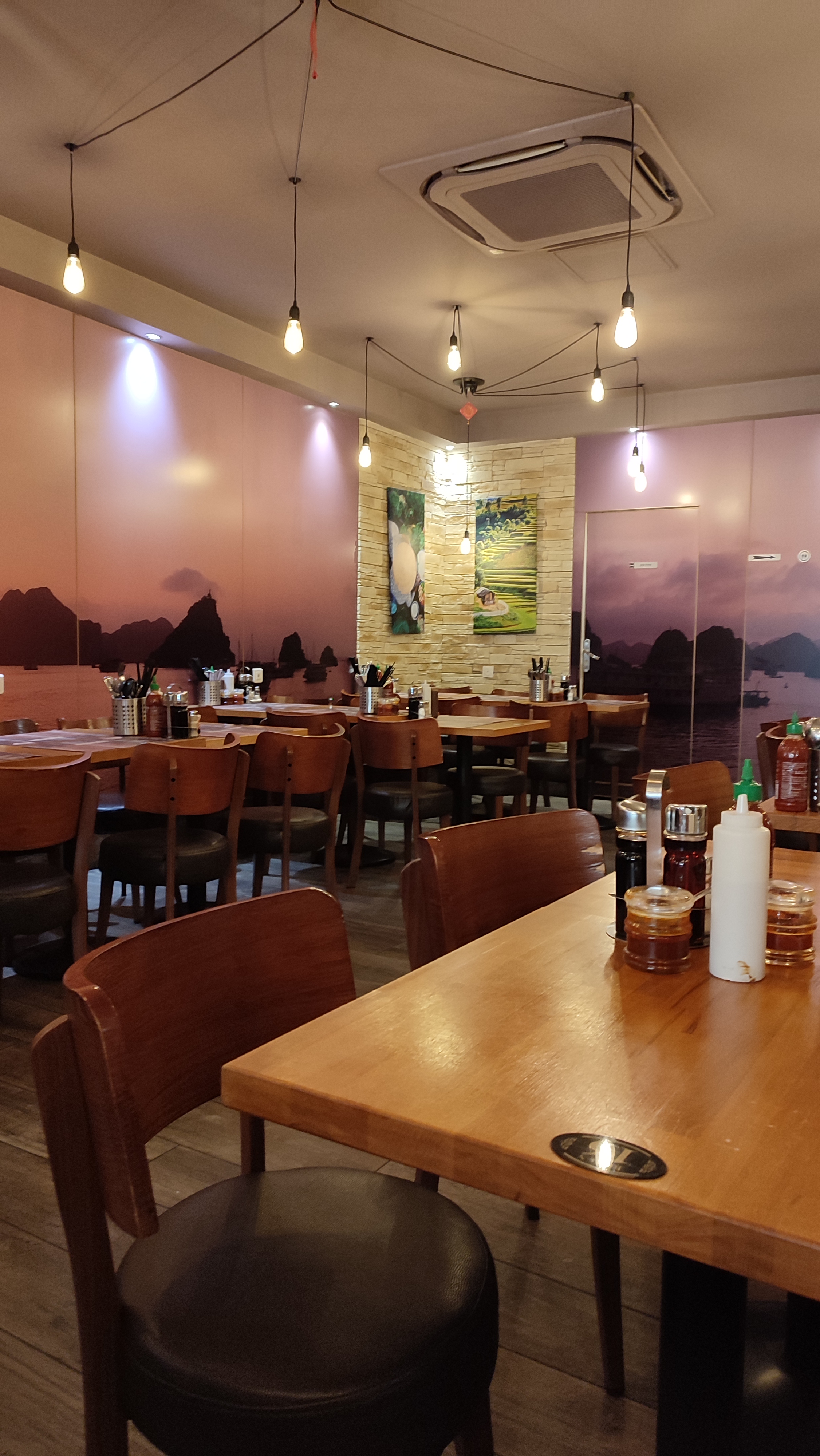 L'ambiance mise par le décor est conviviale. Un petit bout d'exotisme pour égayer le repas. La cuisine typique du Vietnam est délicieuse. Le service client met l'accent sur le bien-être : un moment calme et serein.