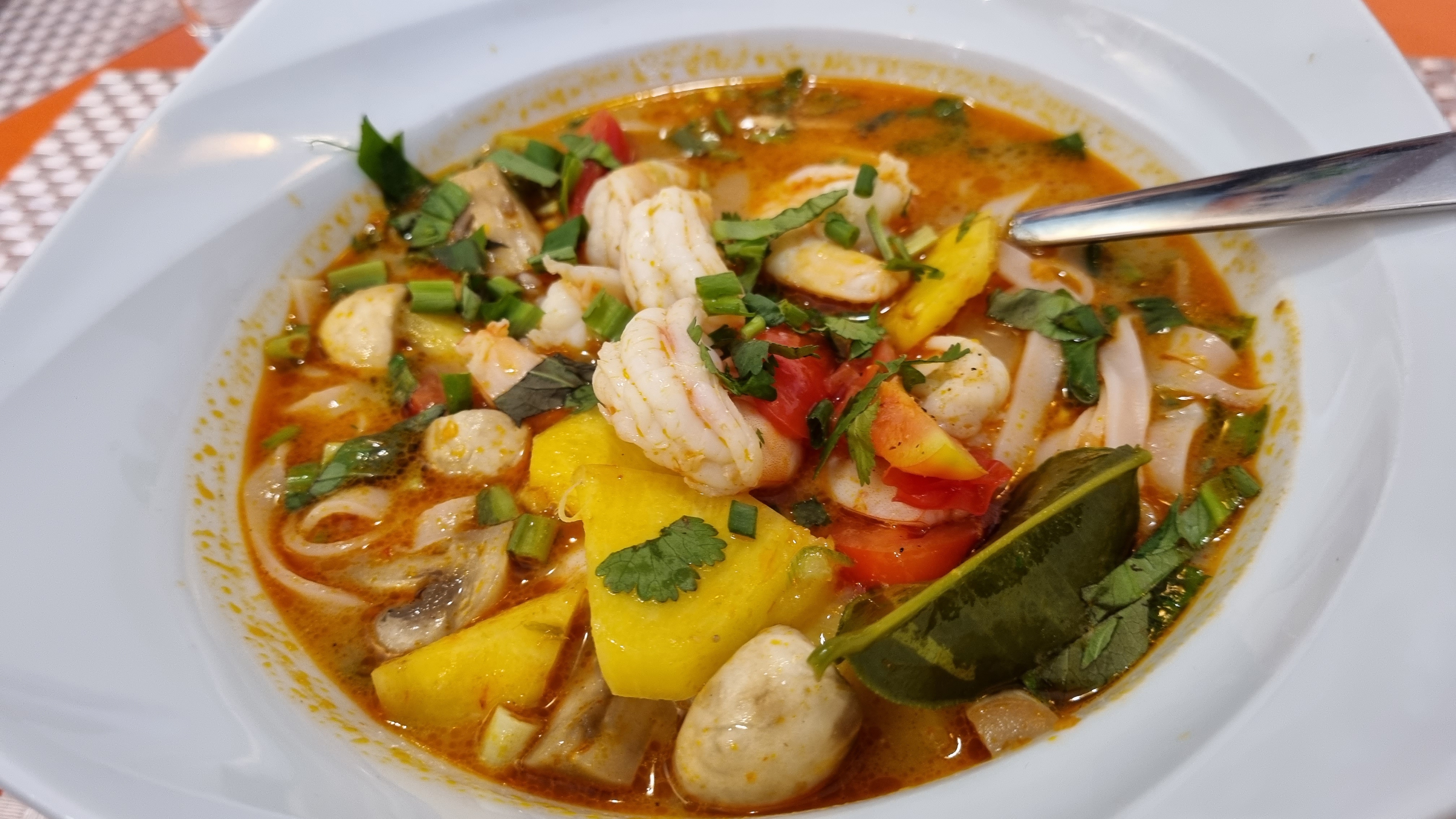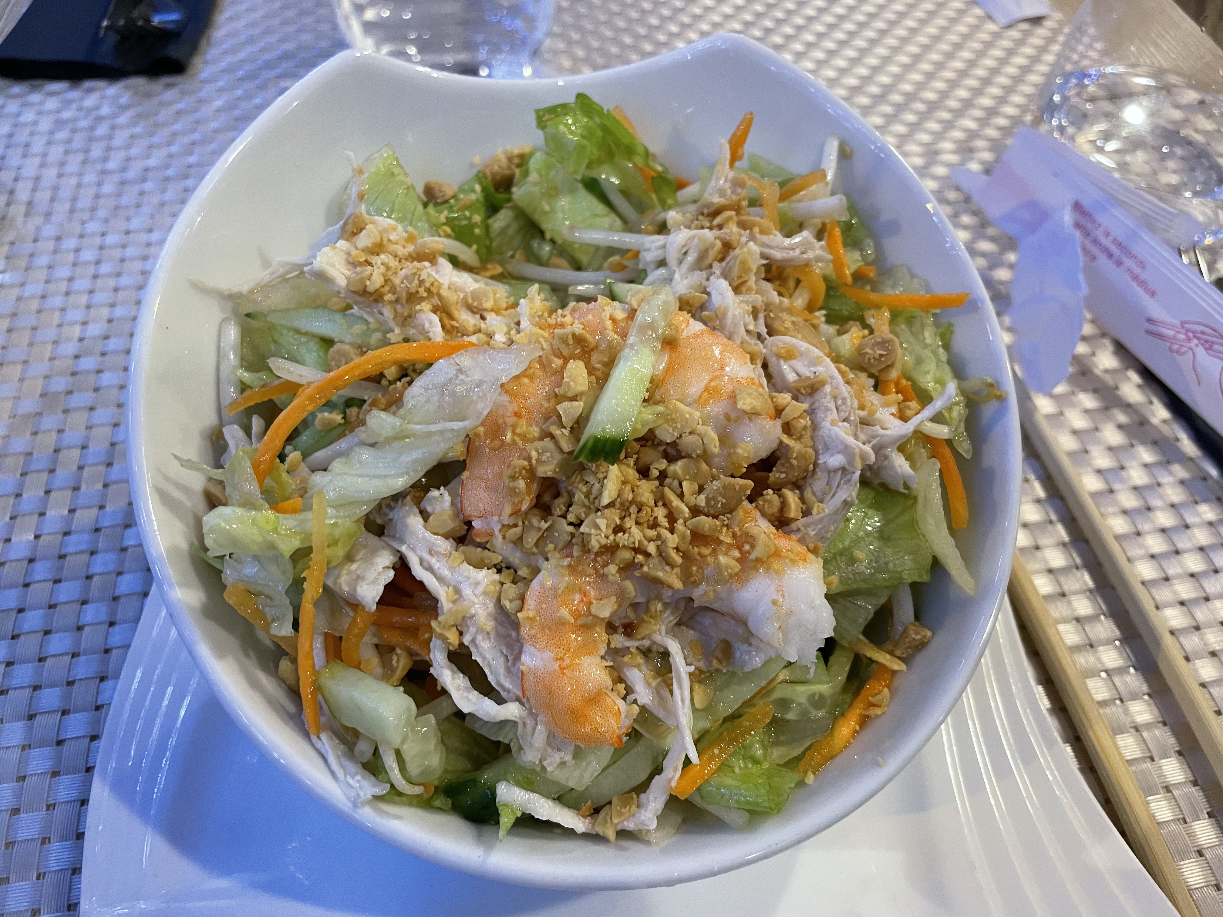 C'était bon! Saveur originale ( crevettes sauce passion et salade de mangue verte) Moment sympa