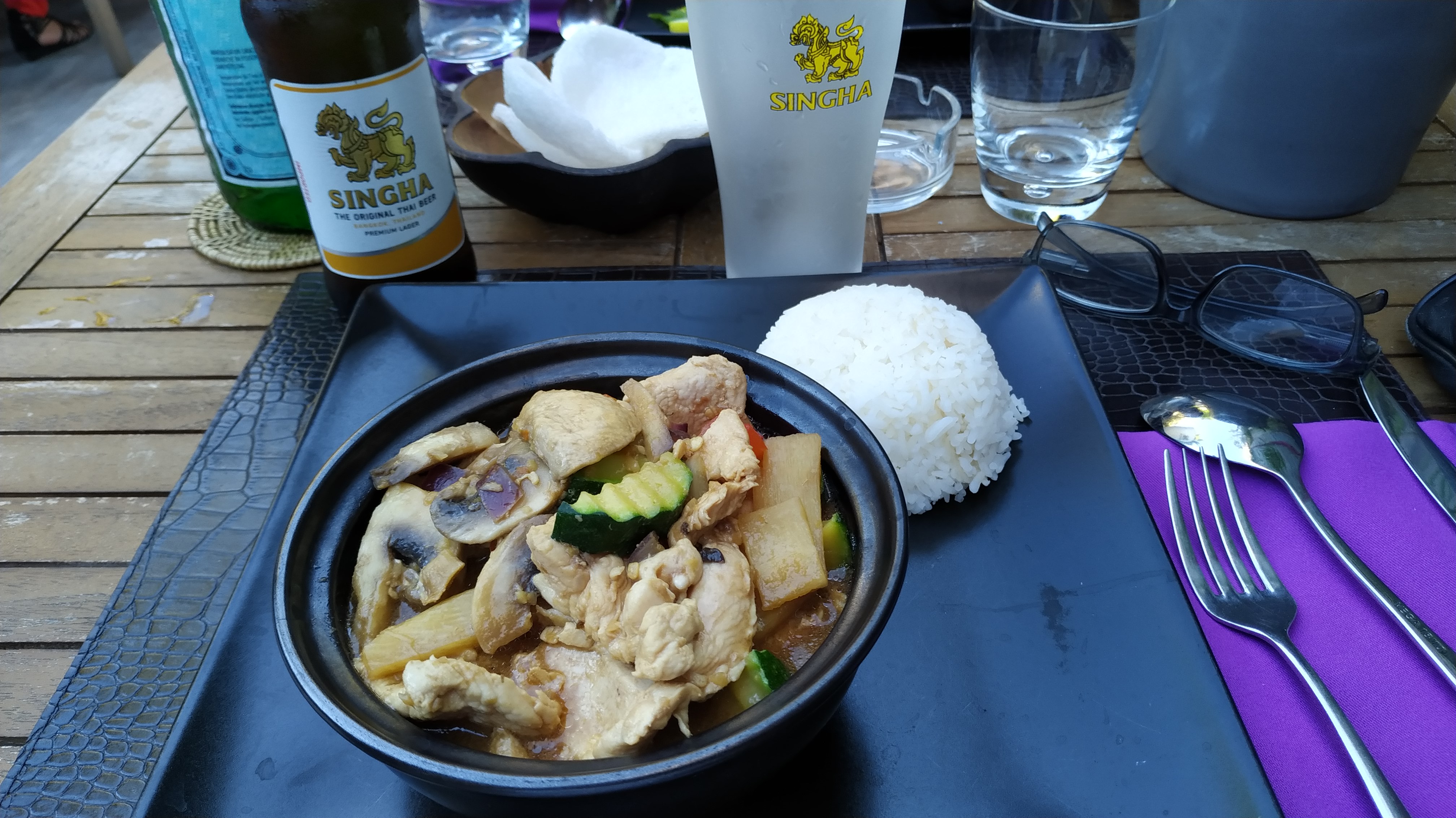 Exceptionnel, je vous conseille les crevette cury annanas, on ne sent que très peu cette différence sucré salé, les bananes au lait de coco.... Je ne crois pas avoir déjà connu une cuisine thaï aussi fine, équilibré juste ce qu'il faut d'épices et des sourires de partout !!
