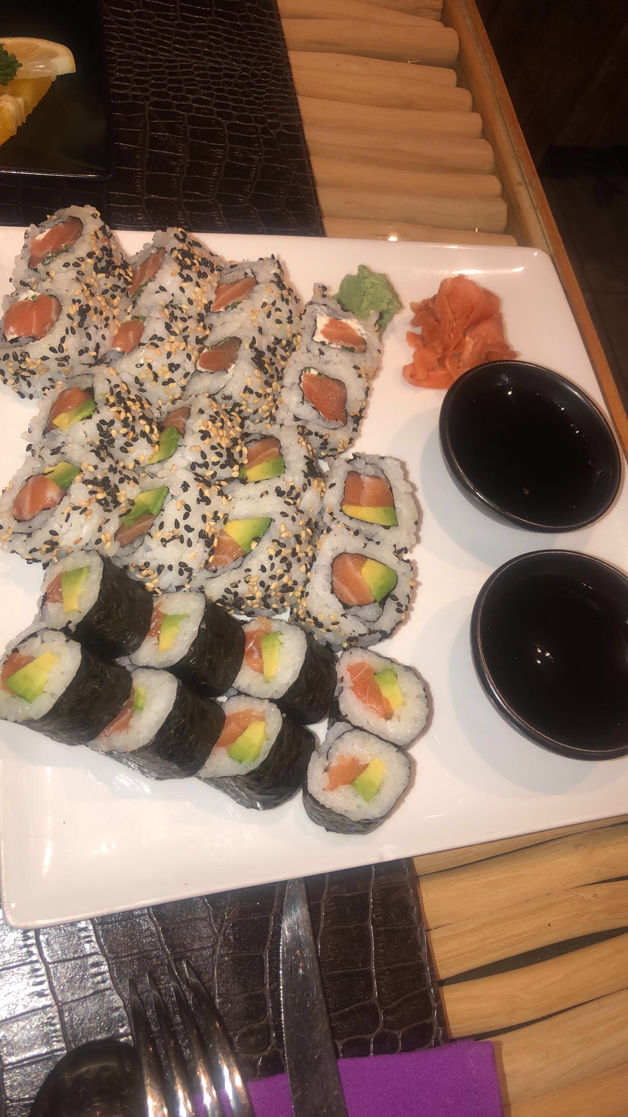 Les sushis sont Fades , manque d assaisonnement (vinaigre de riz) .Les plats hormis les sushis sont chers et les tarifs sur le net et sur place ne sont pas les mêmes , les tarifs ont augmentés entre temps. De plus, la serveuse s est trompé de plats et voulait me le faire payer alors que l erreur venait d elle .